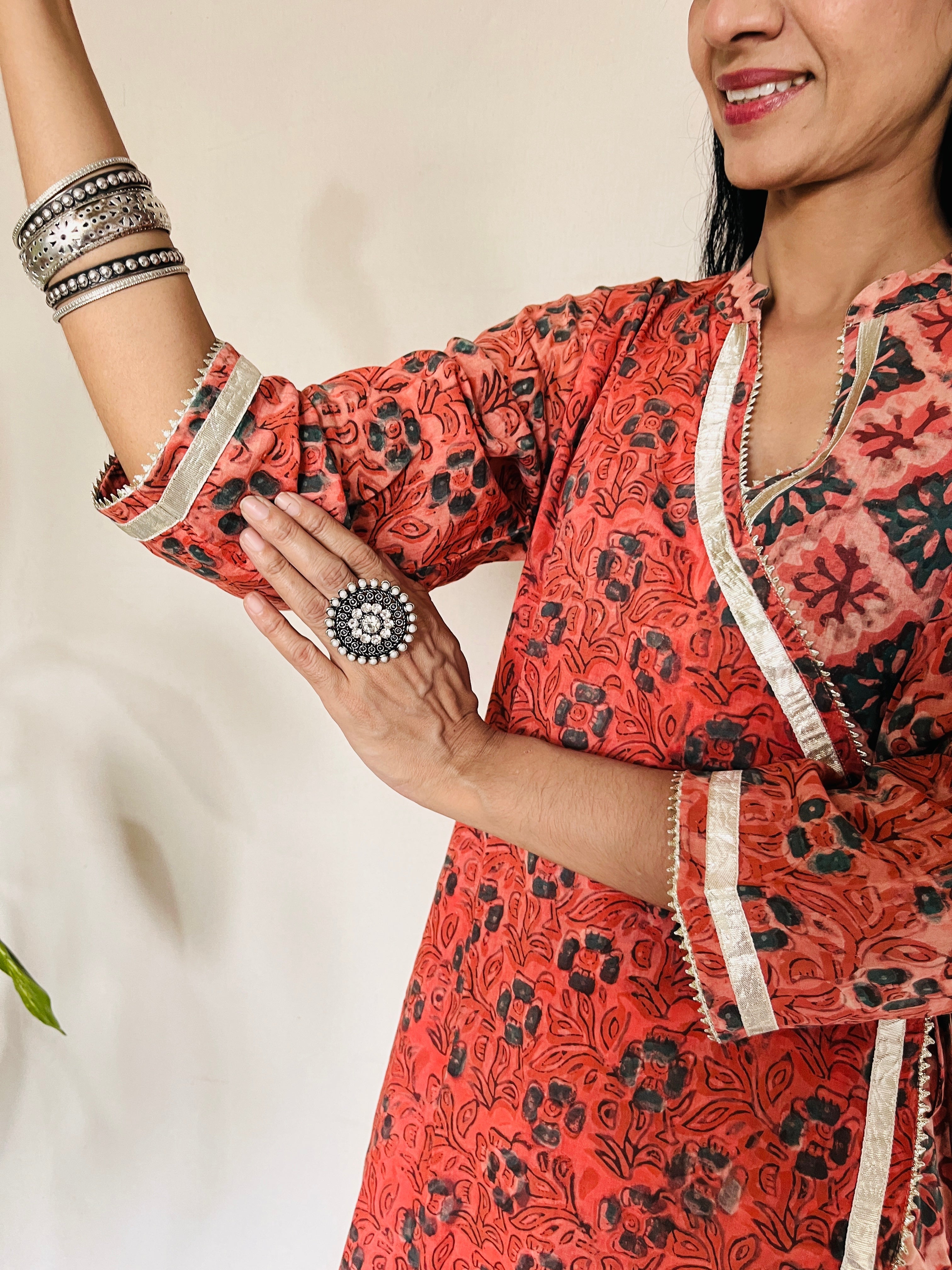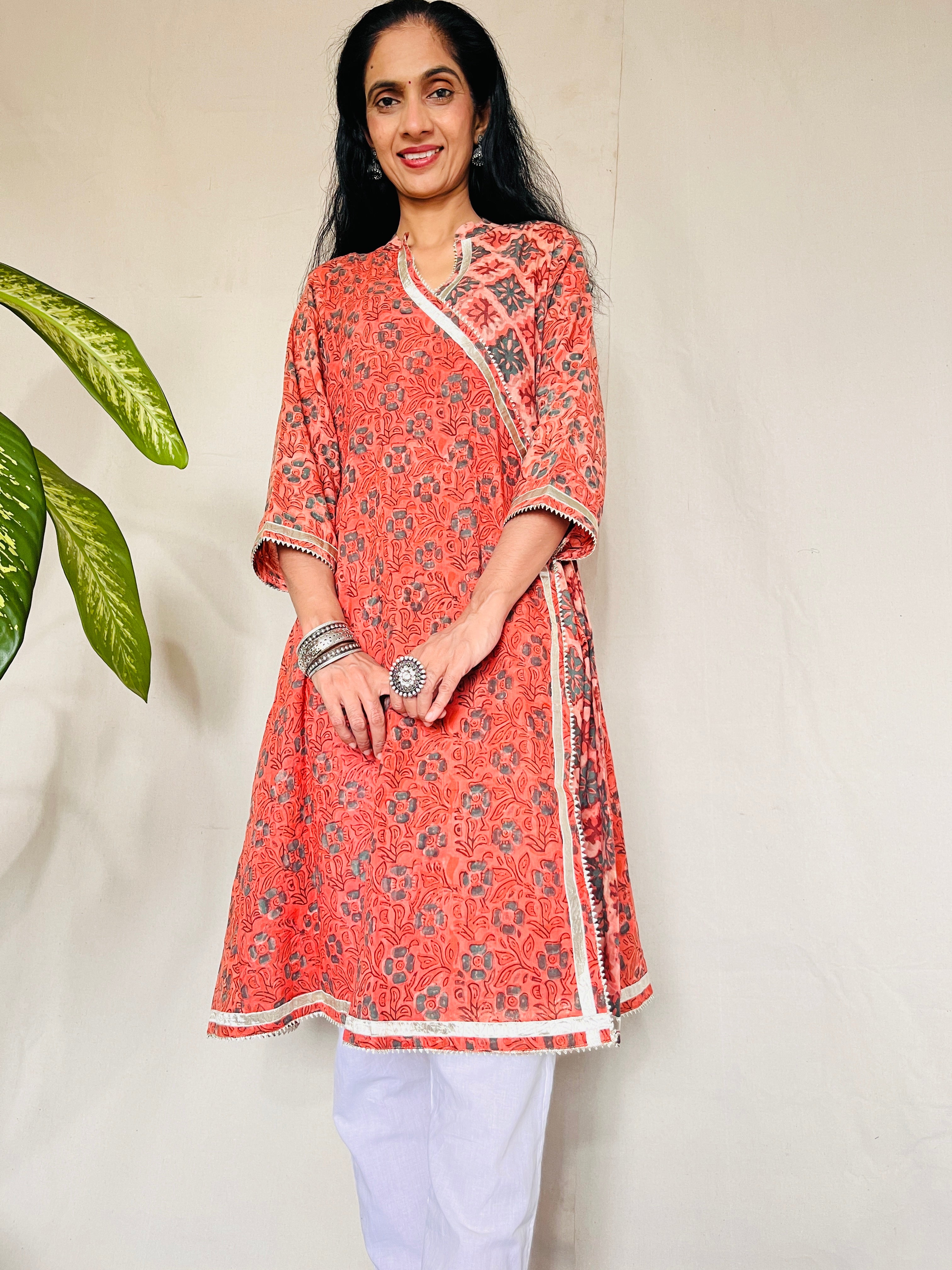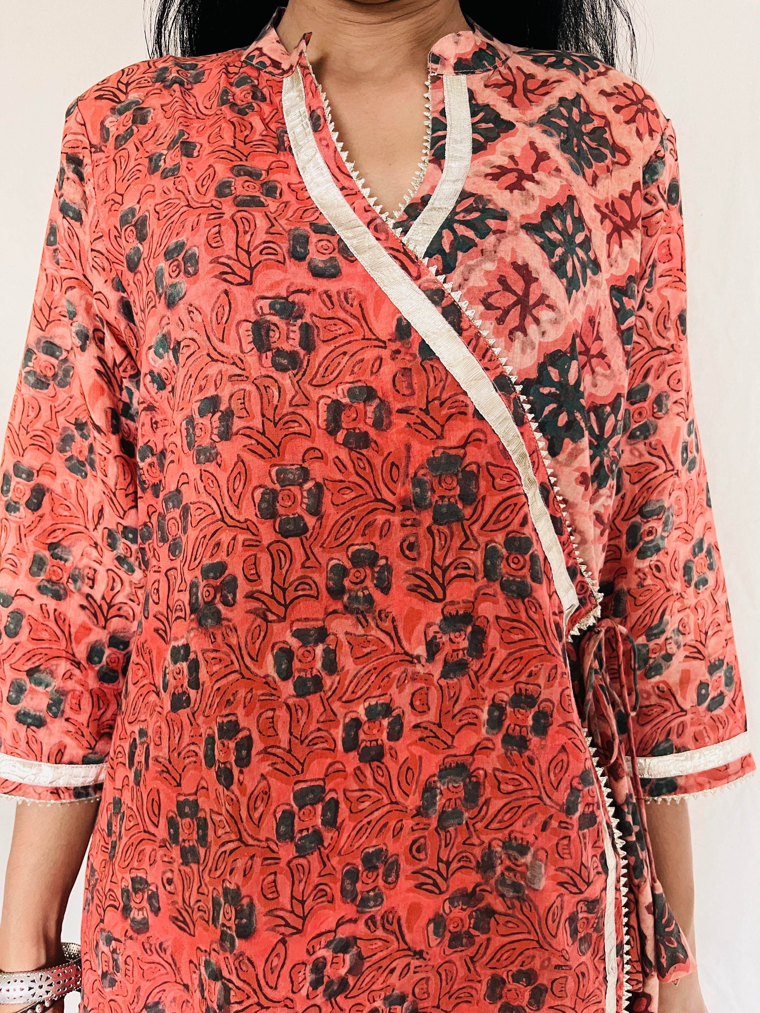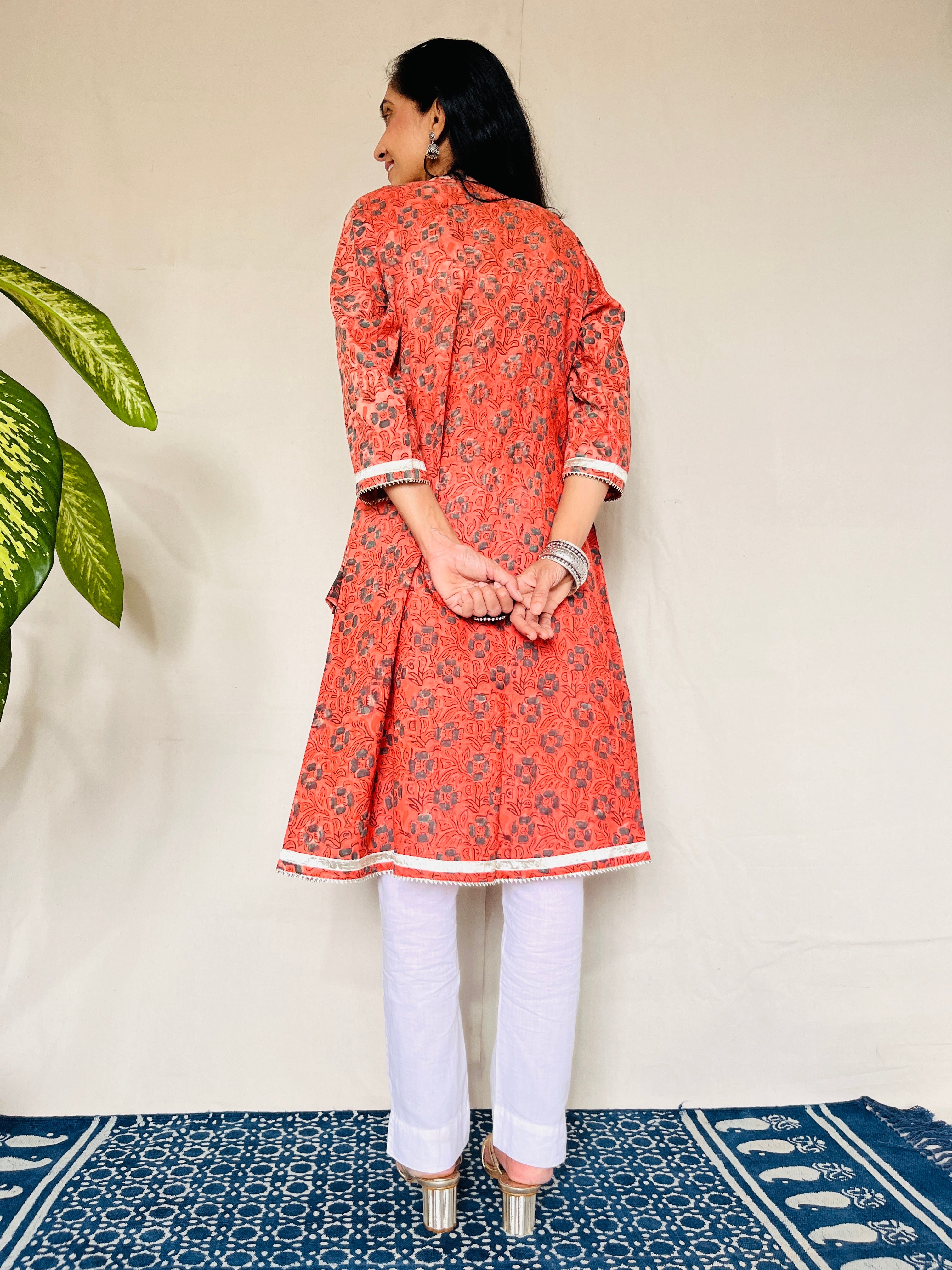 AJRAKH DABO Angrakha Mul Cotton Kurti with Gota Lace