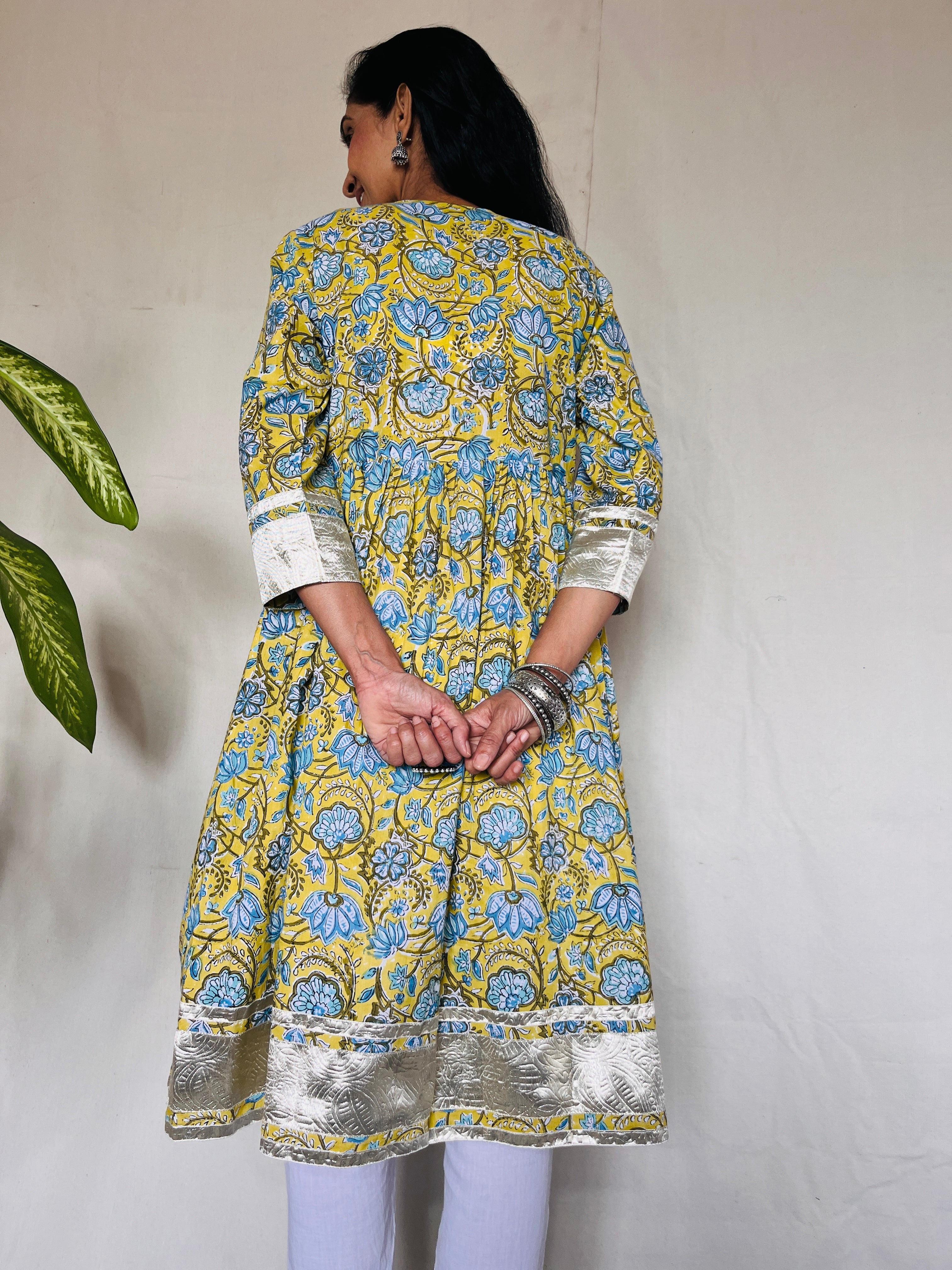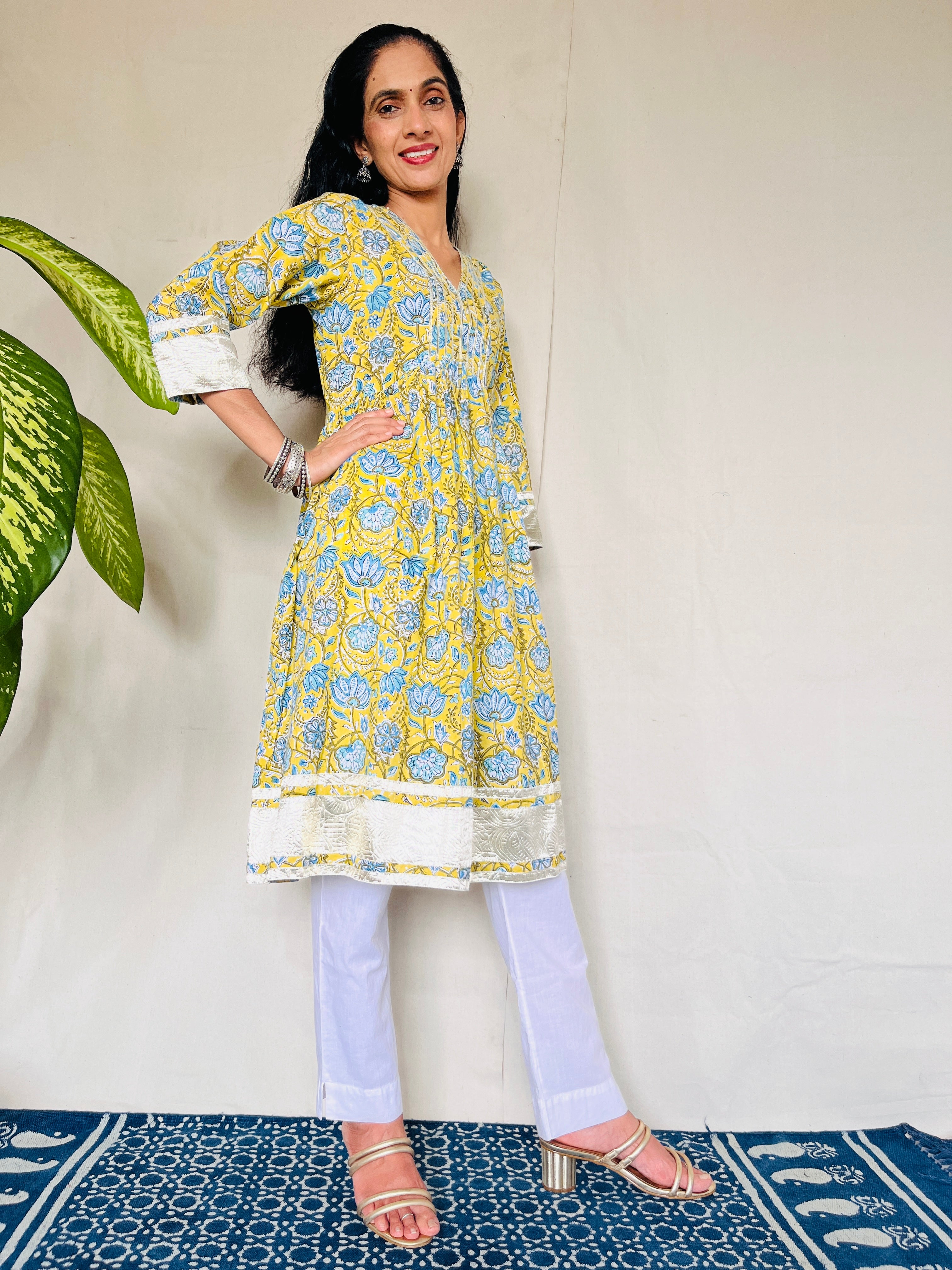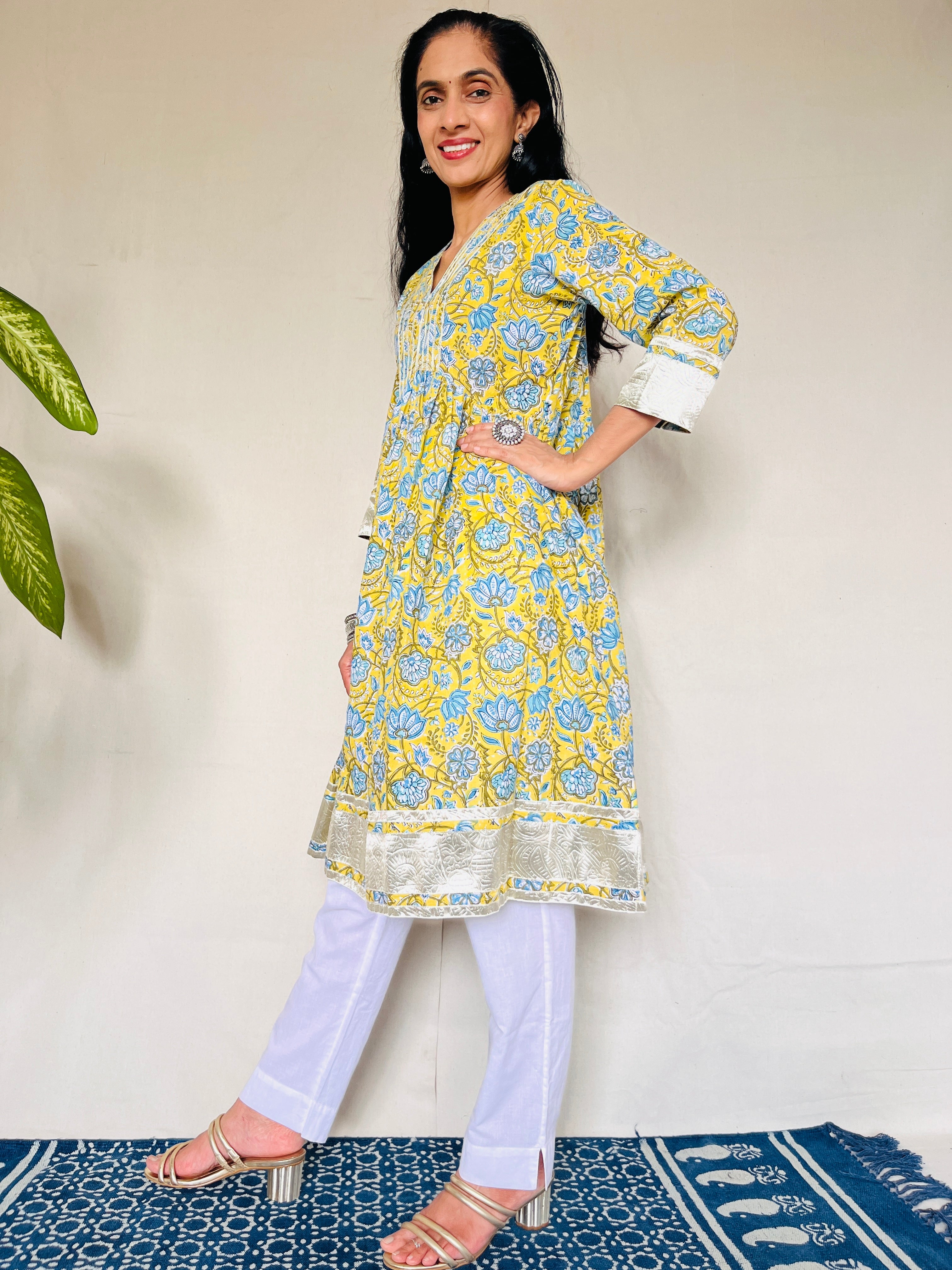 A Line AJRAKH DABO Printed Kurti in Original Hand Block Print.