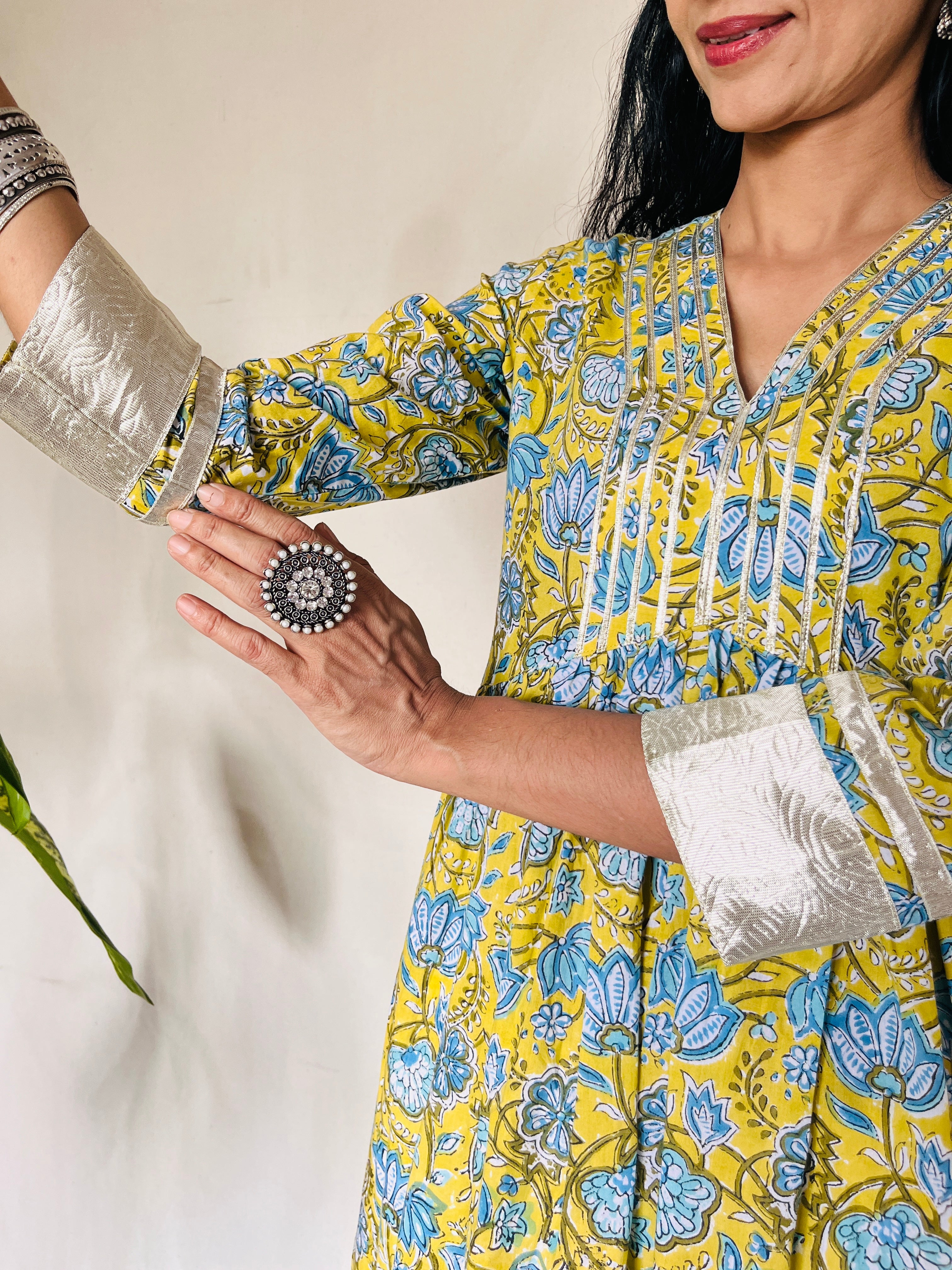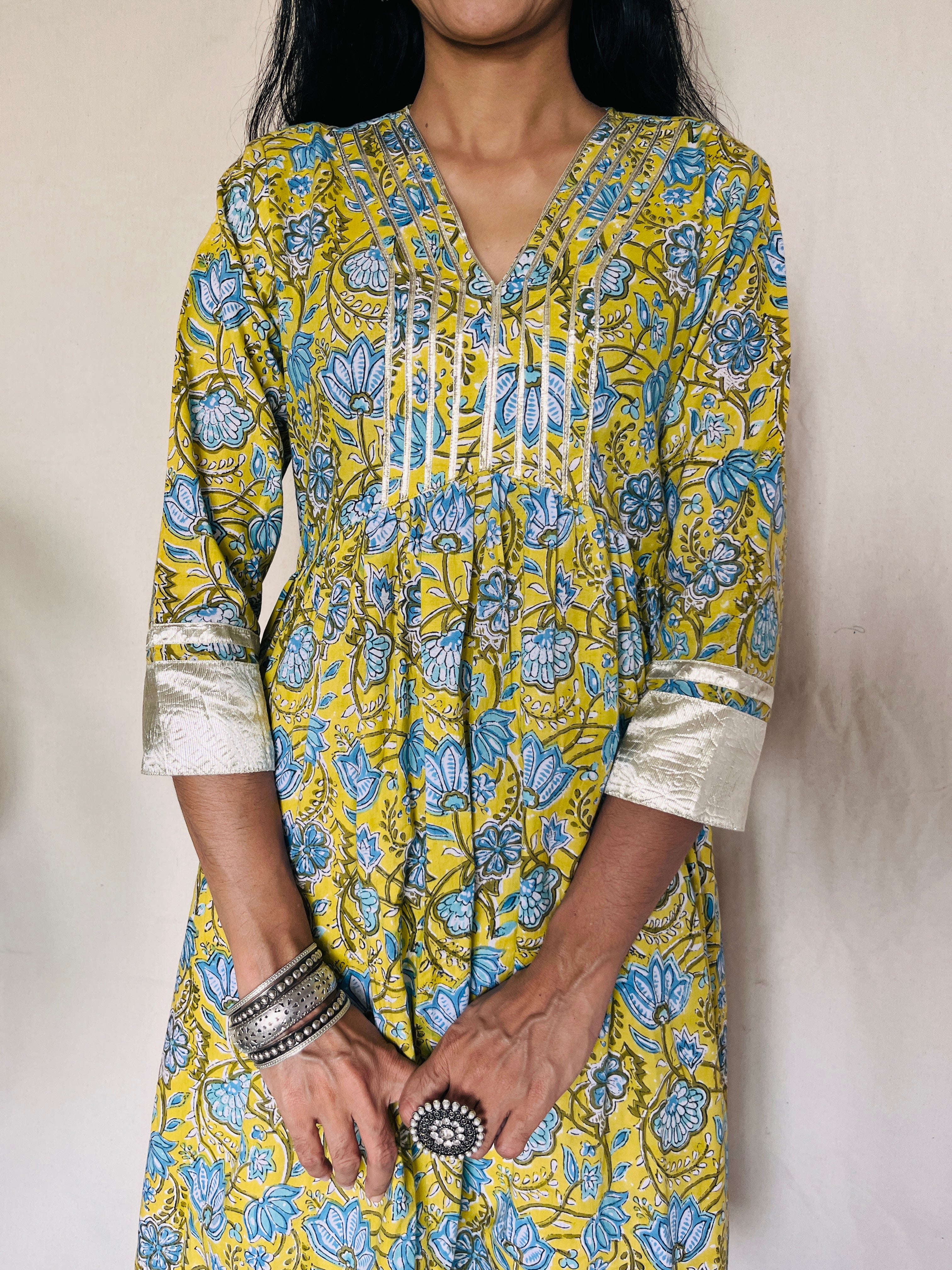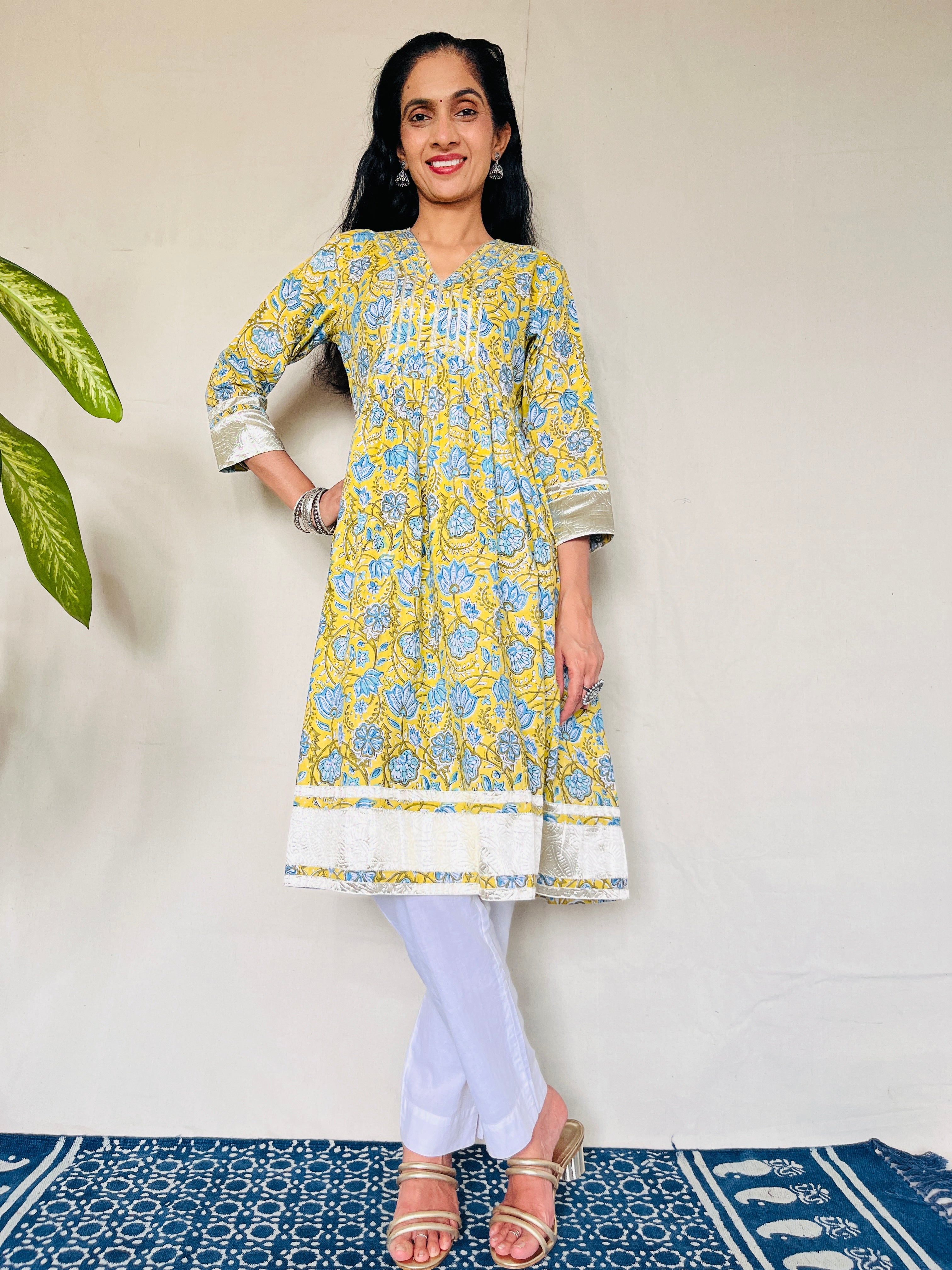 A Line AJRAKH DABO Printed Kurti in Original Hand Block Print.