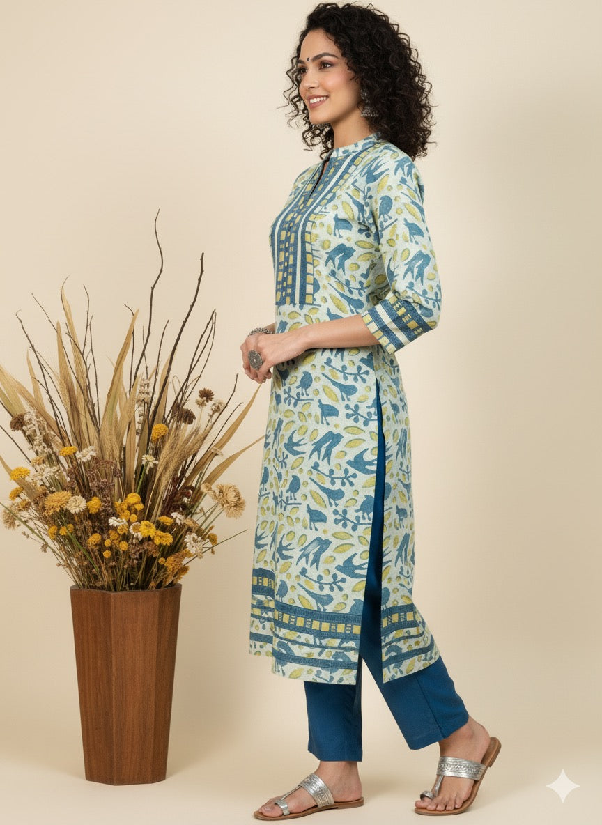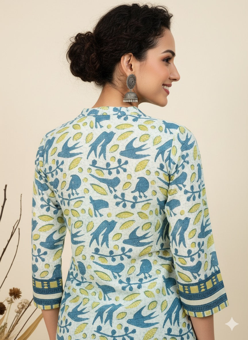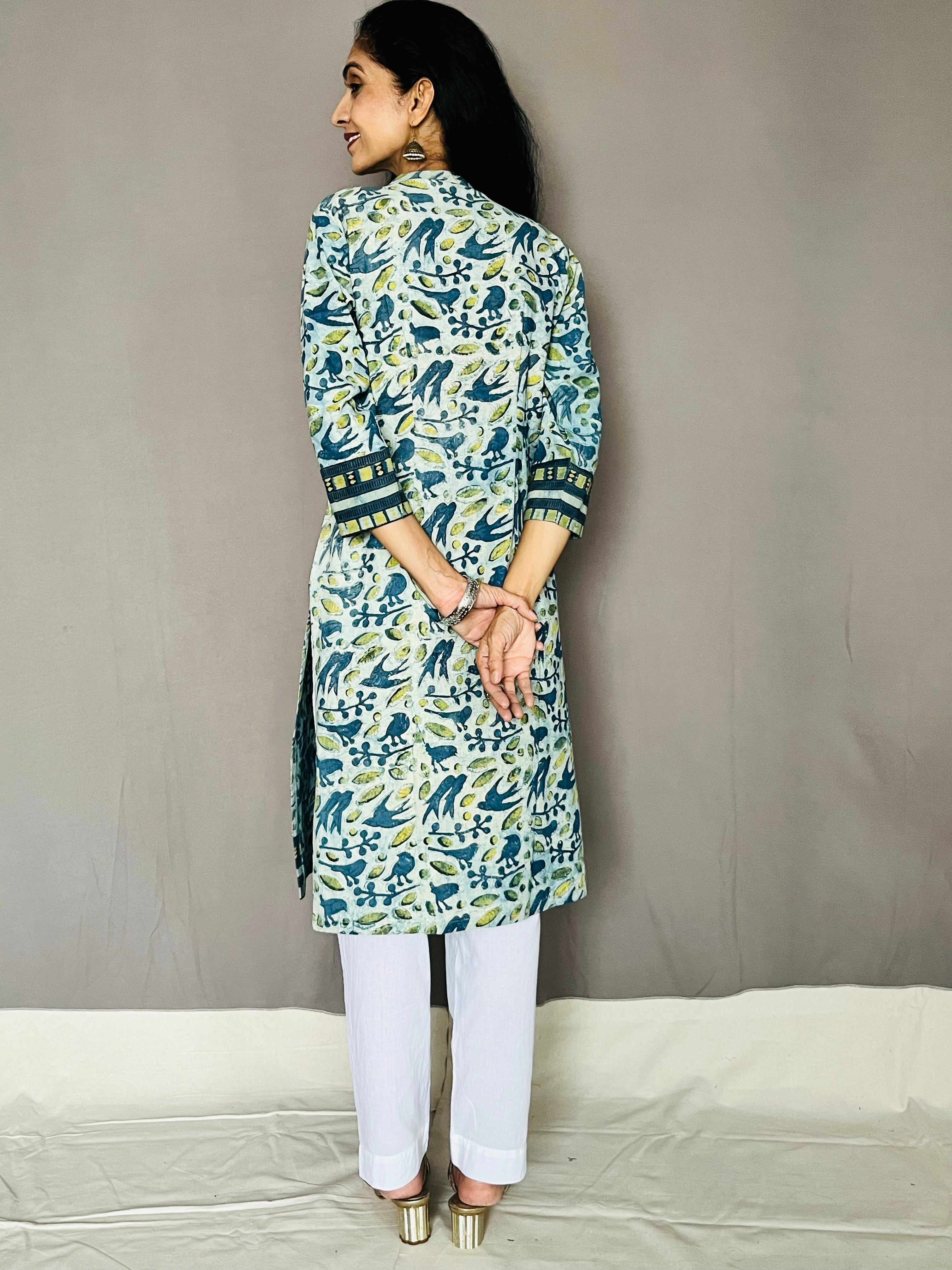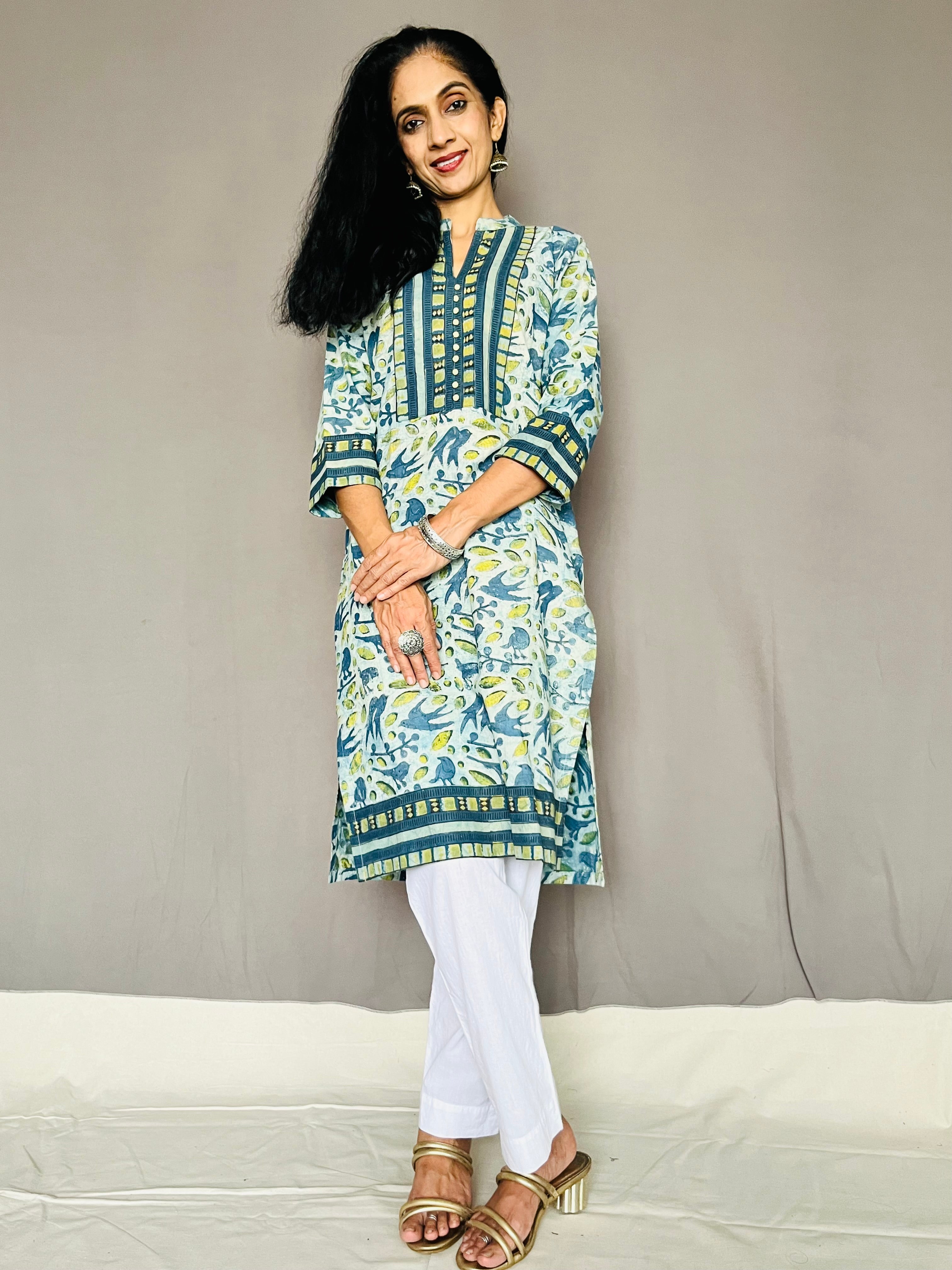 In the artful process of hand block-printing and stitching, variations are likely to come into existence. These irregularities are the hallmark of all handmade products and give each style a unique identity.Colours tend to be perceived differently depending on factors such as shot angles, lighting, background tones and colour temperatures. As a result, prints and colours may vary. Nevertheless, we strive to match the tones as close to the original product colours as possible.