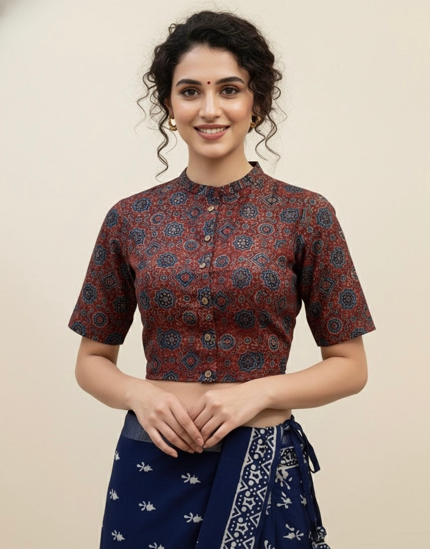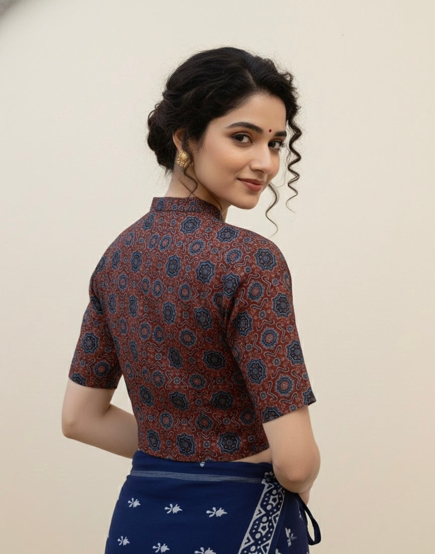 AJRAKH Hand Block Printed Cotton Blouse