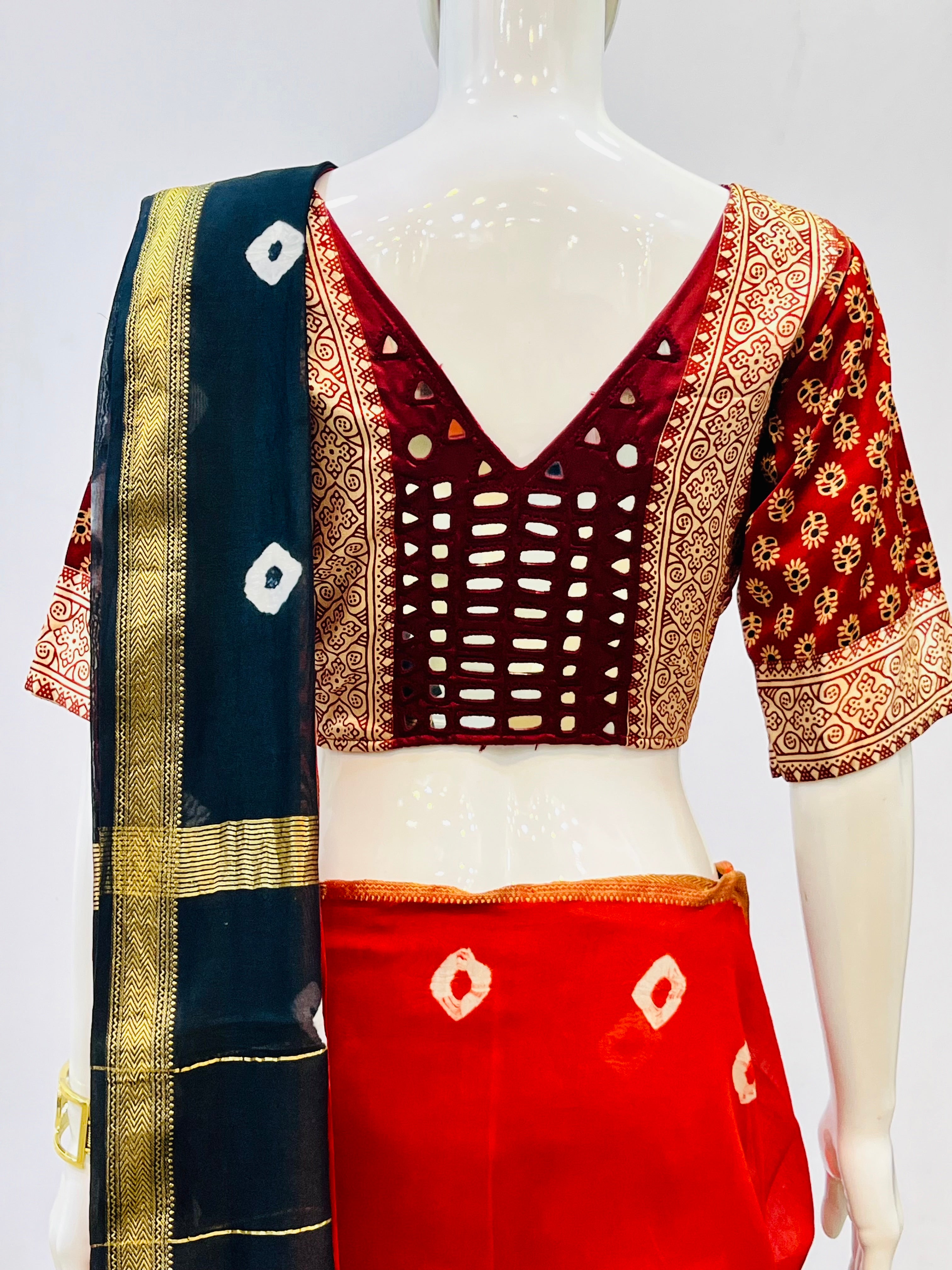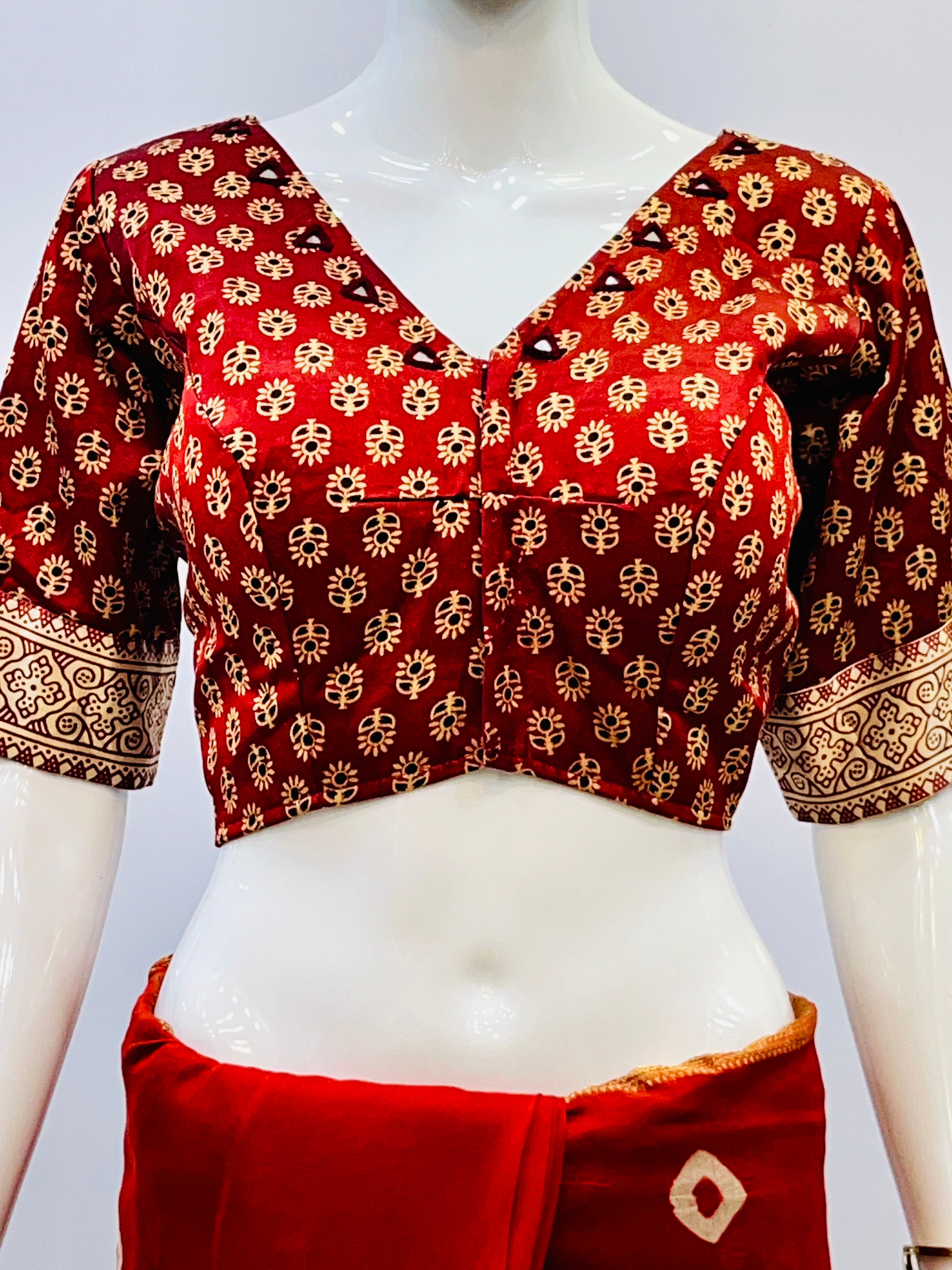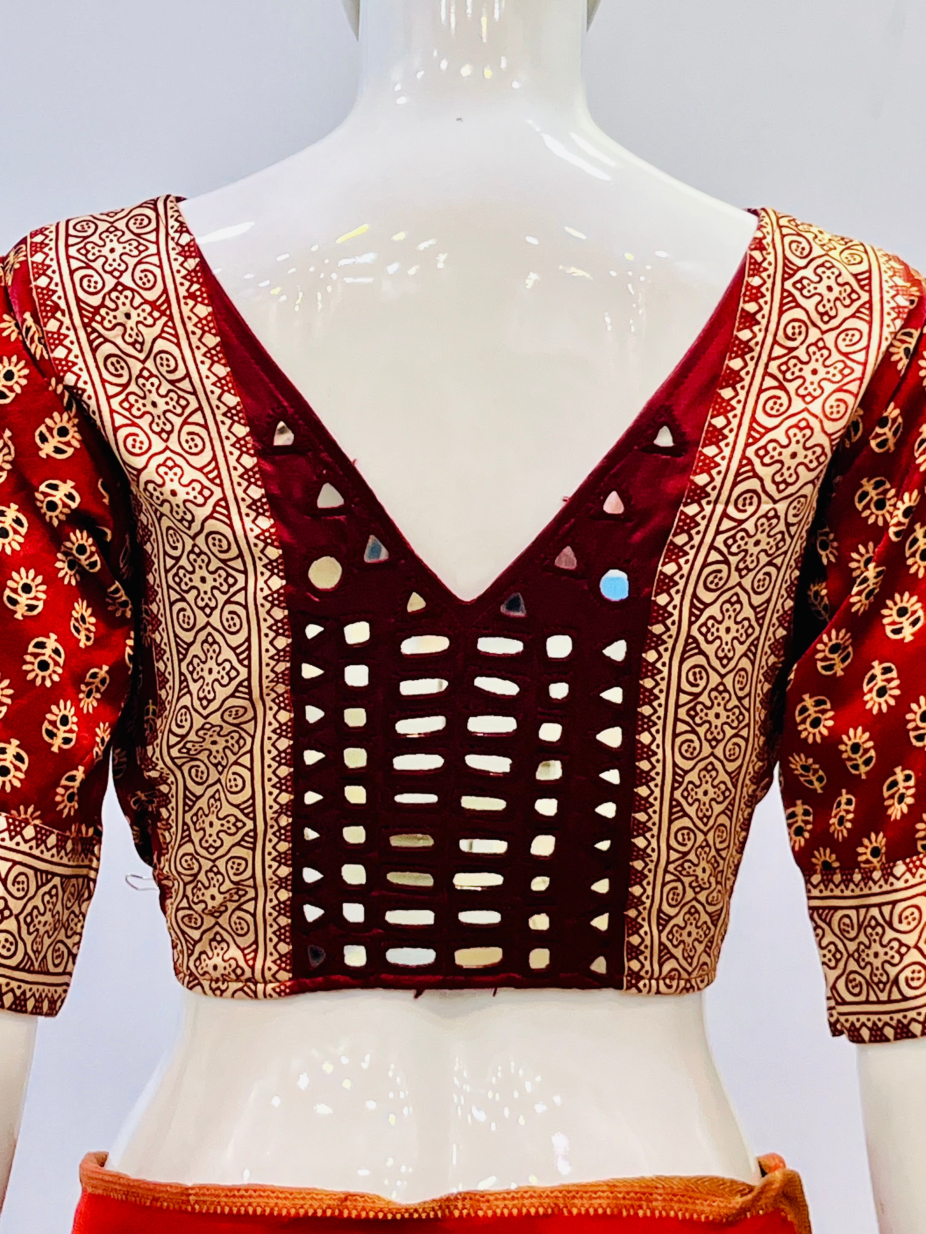 Ajrakh Mashru Silk Mirror Work Padded/Non-Padded Blouse