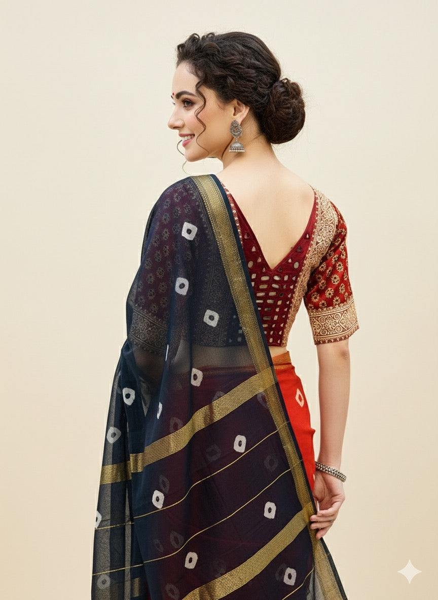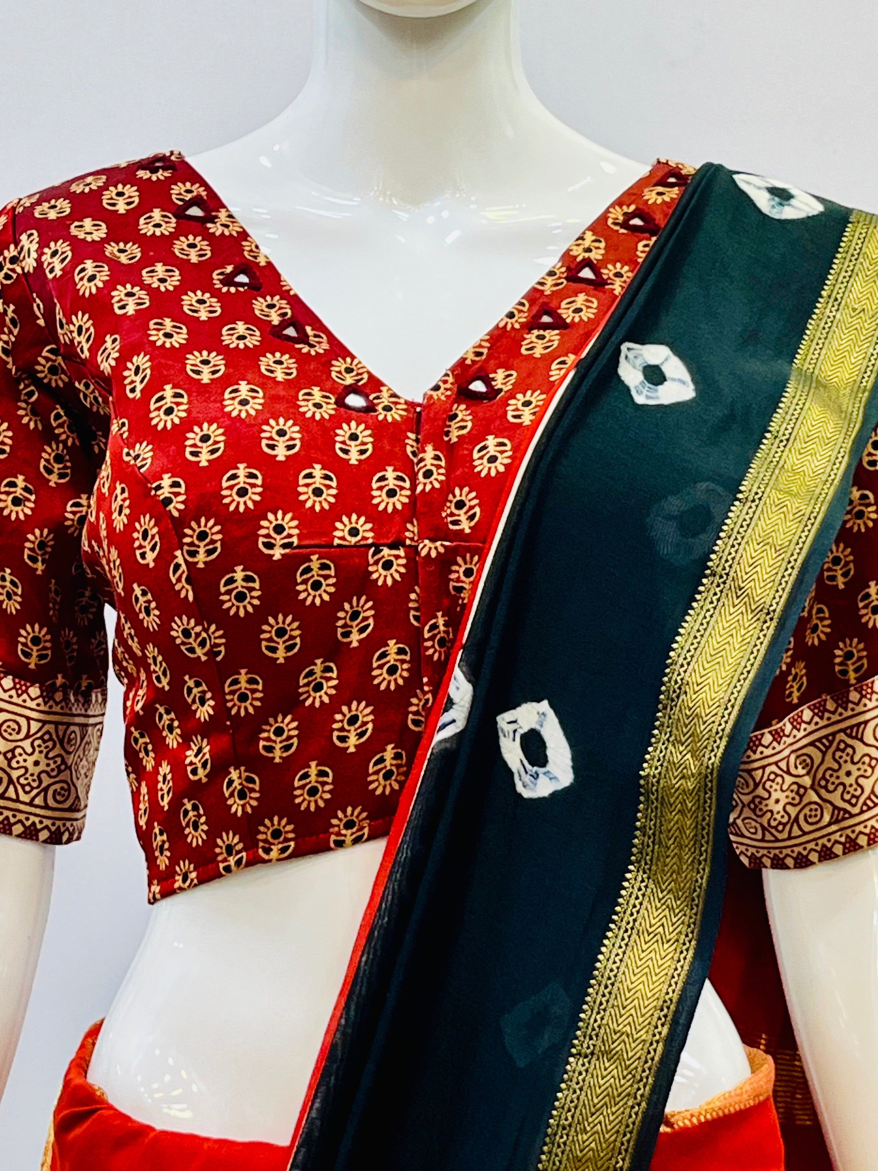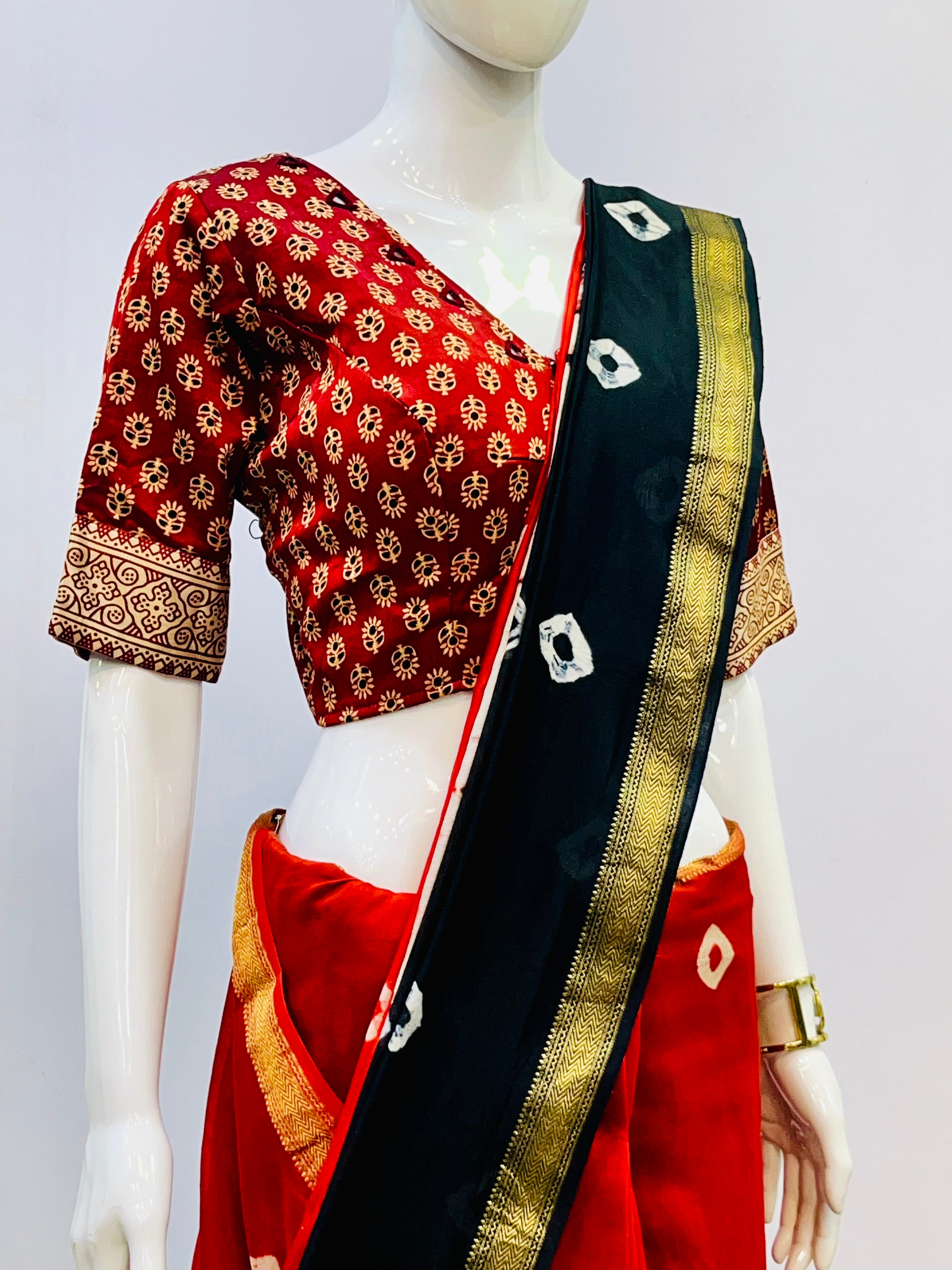 Ajrakh Mashru Silk Mirror Work Padded/Non-Padded Blouse