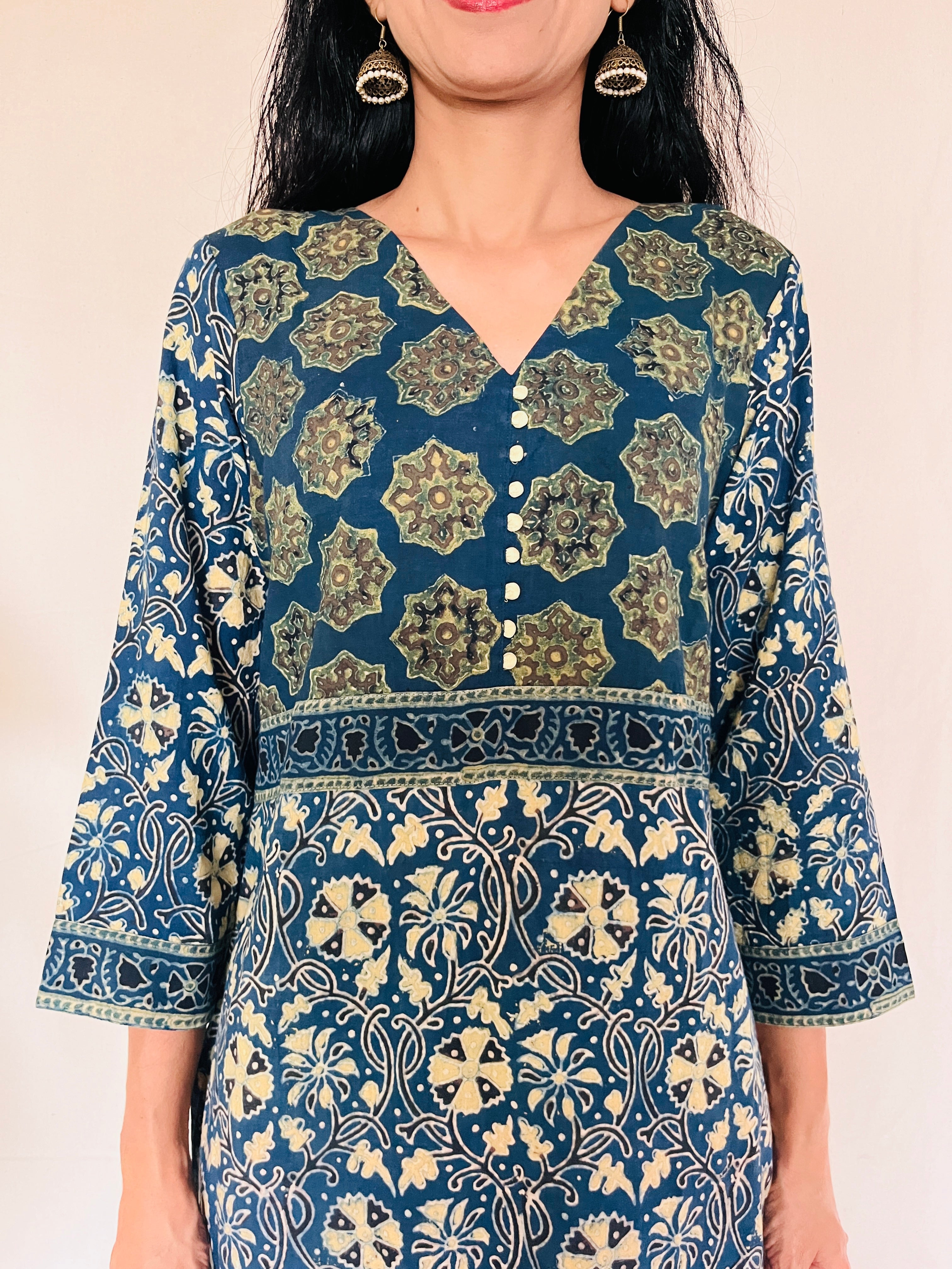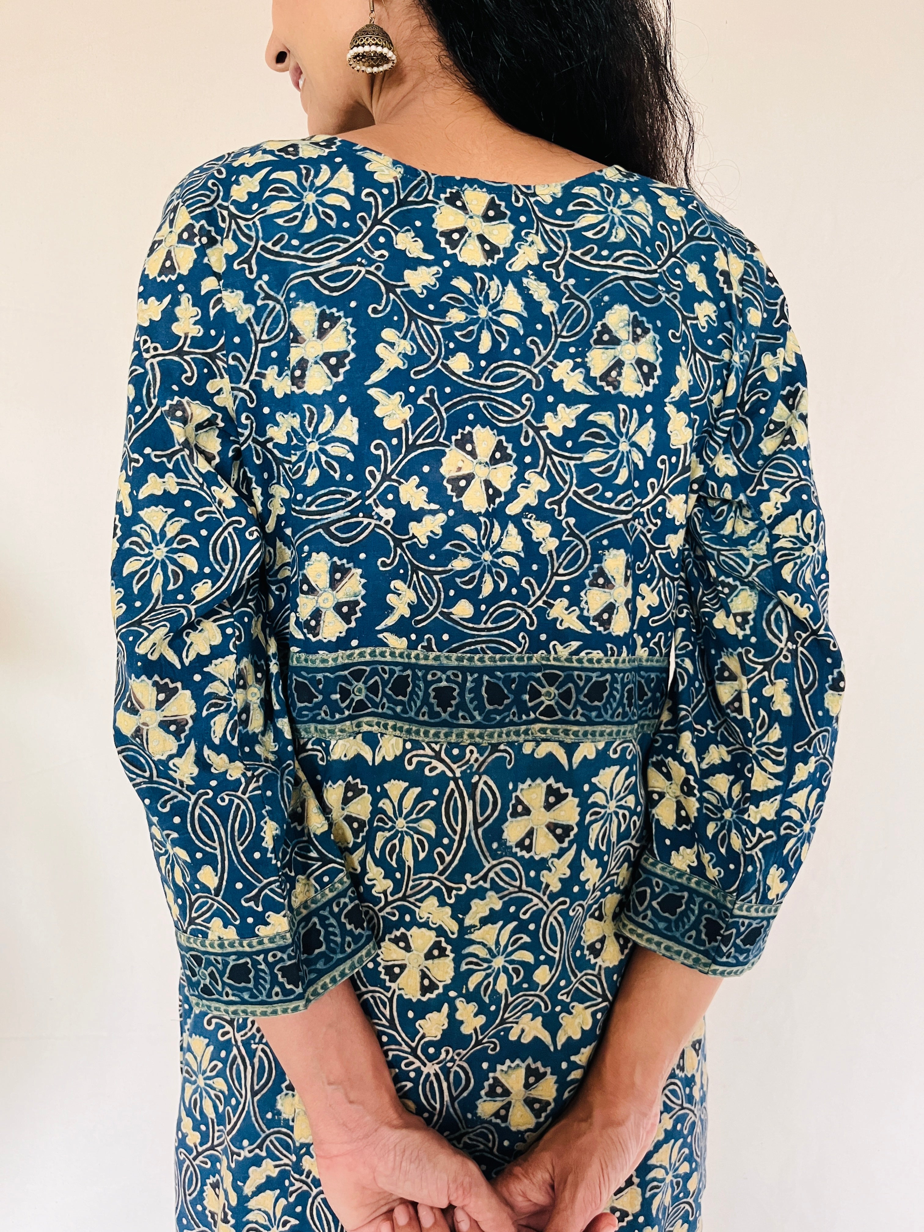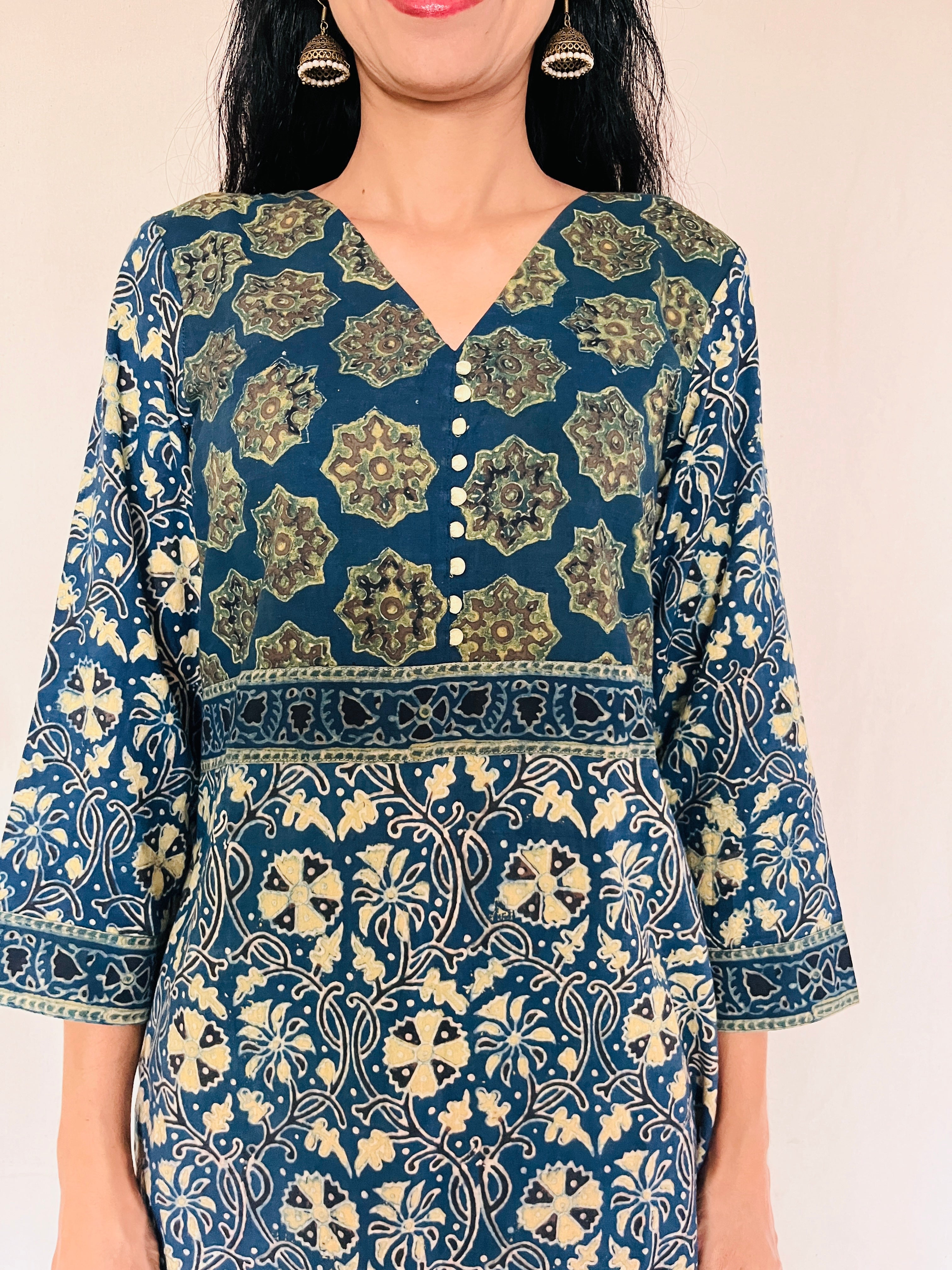 Strait Cut AJRAKH Printed Kurti in Original Hand Block Print.
