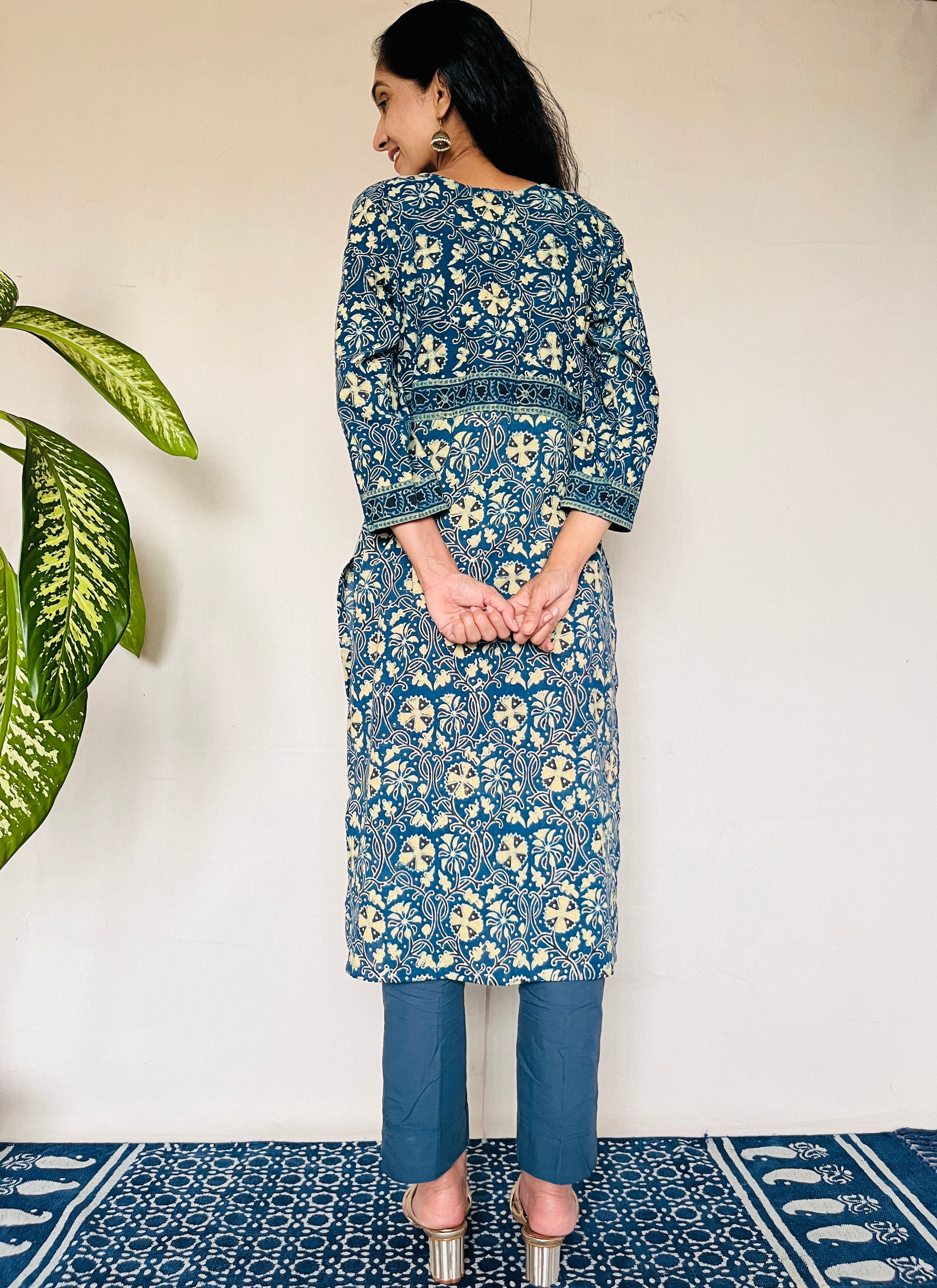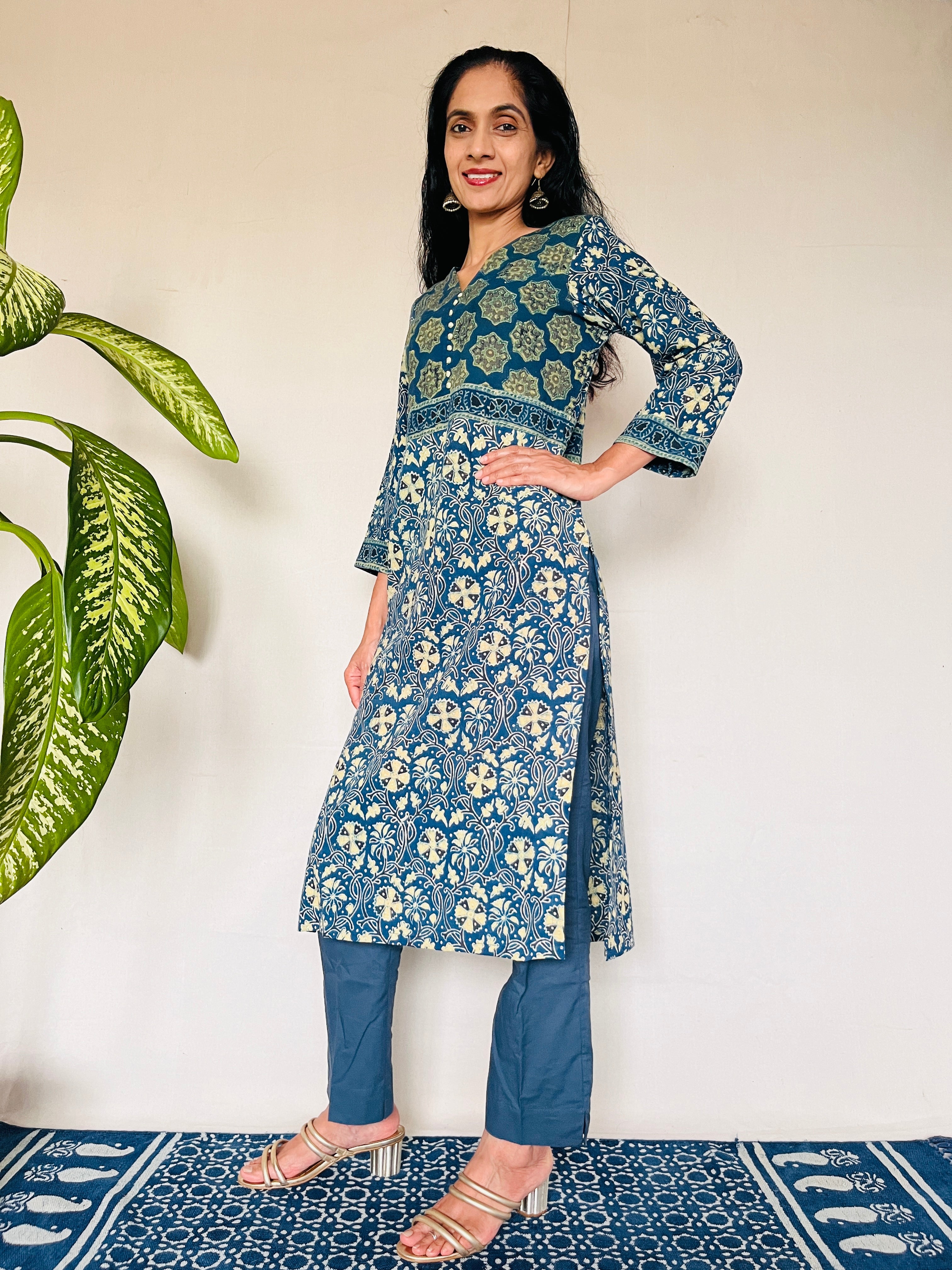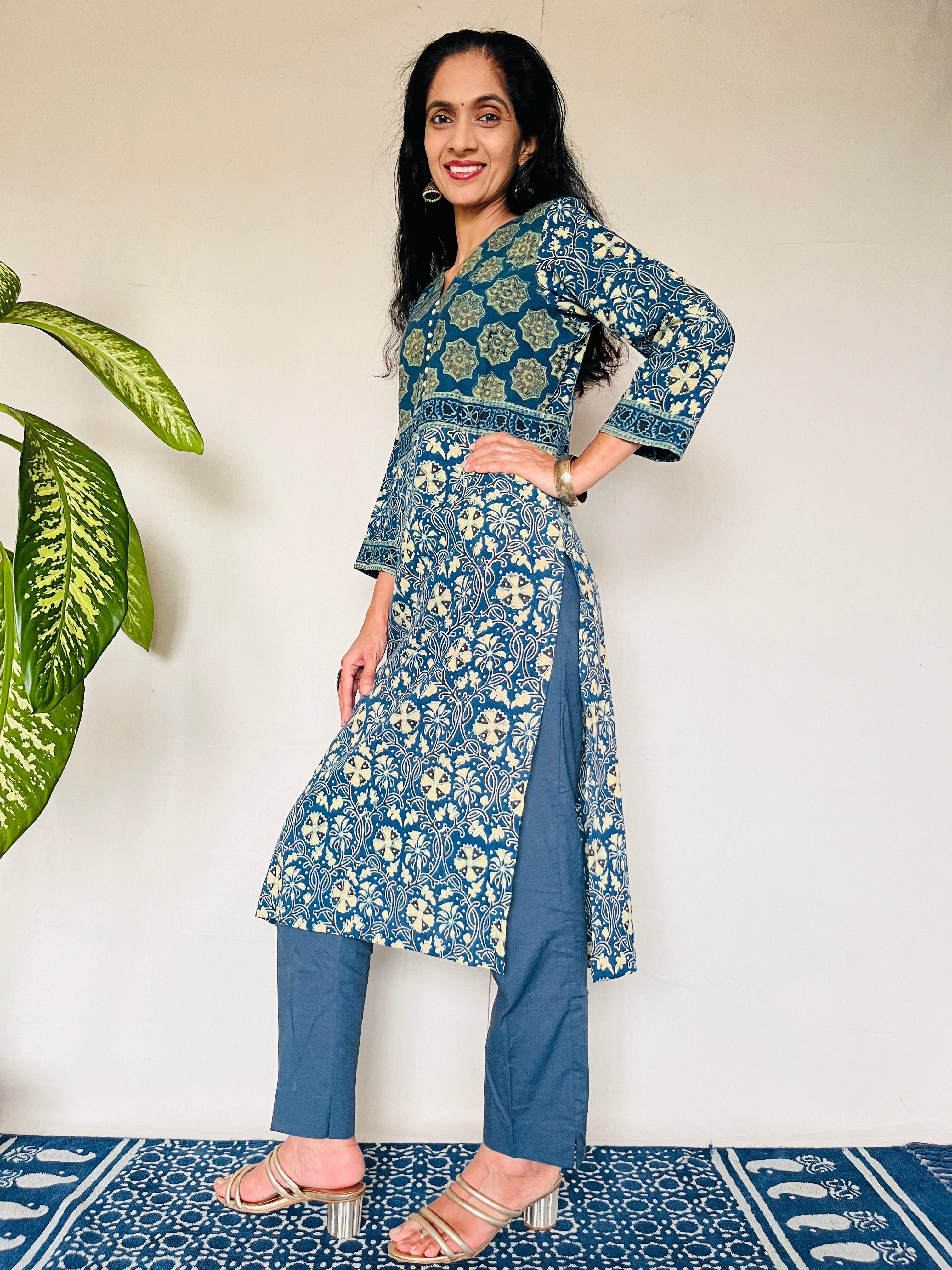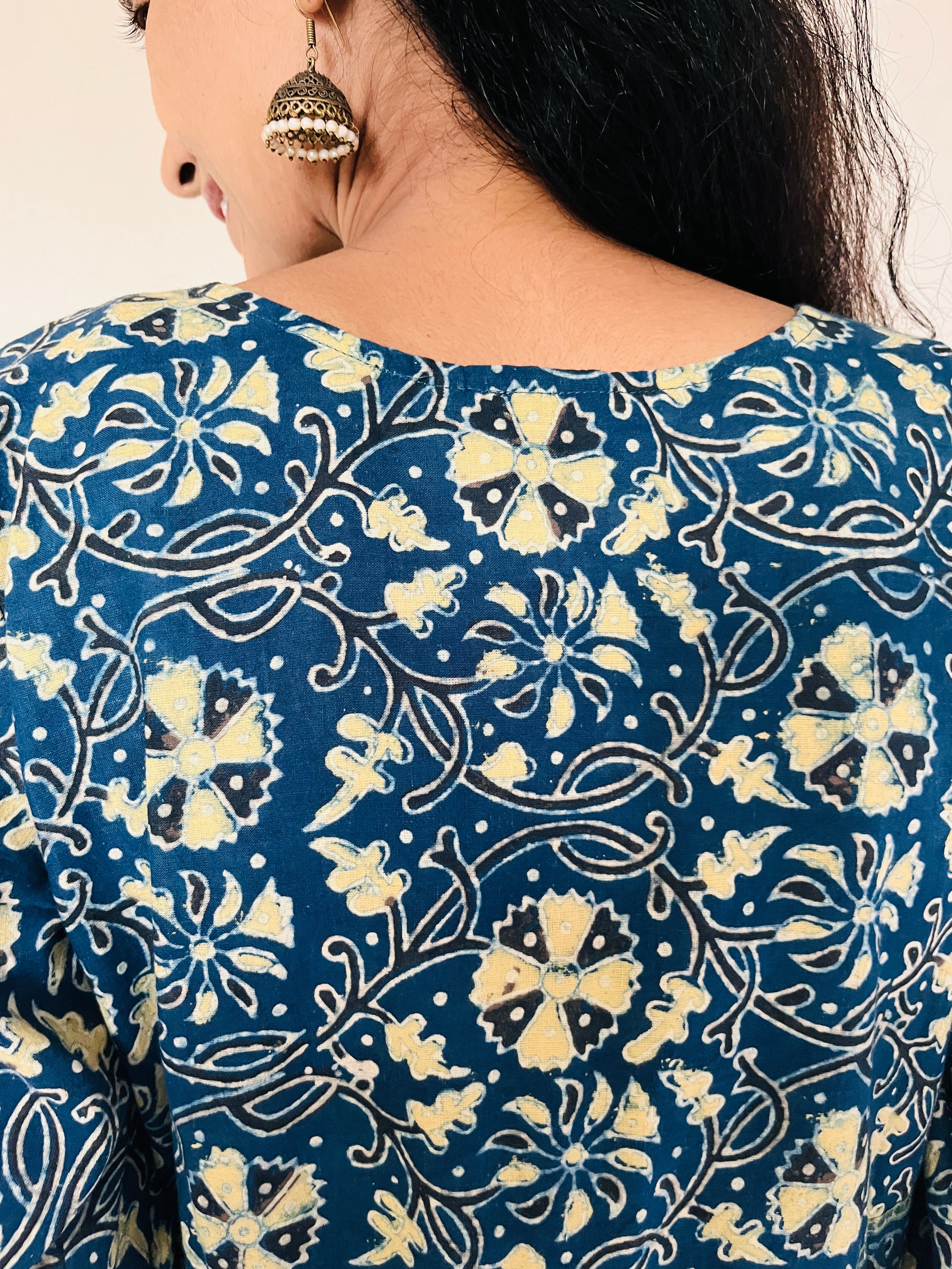 Strait Cut AJRAKH Printed Kurti in Original Hand Block Print.