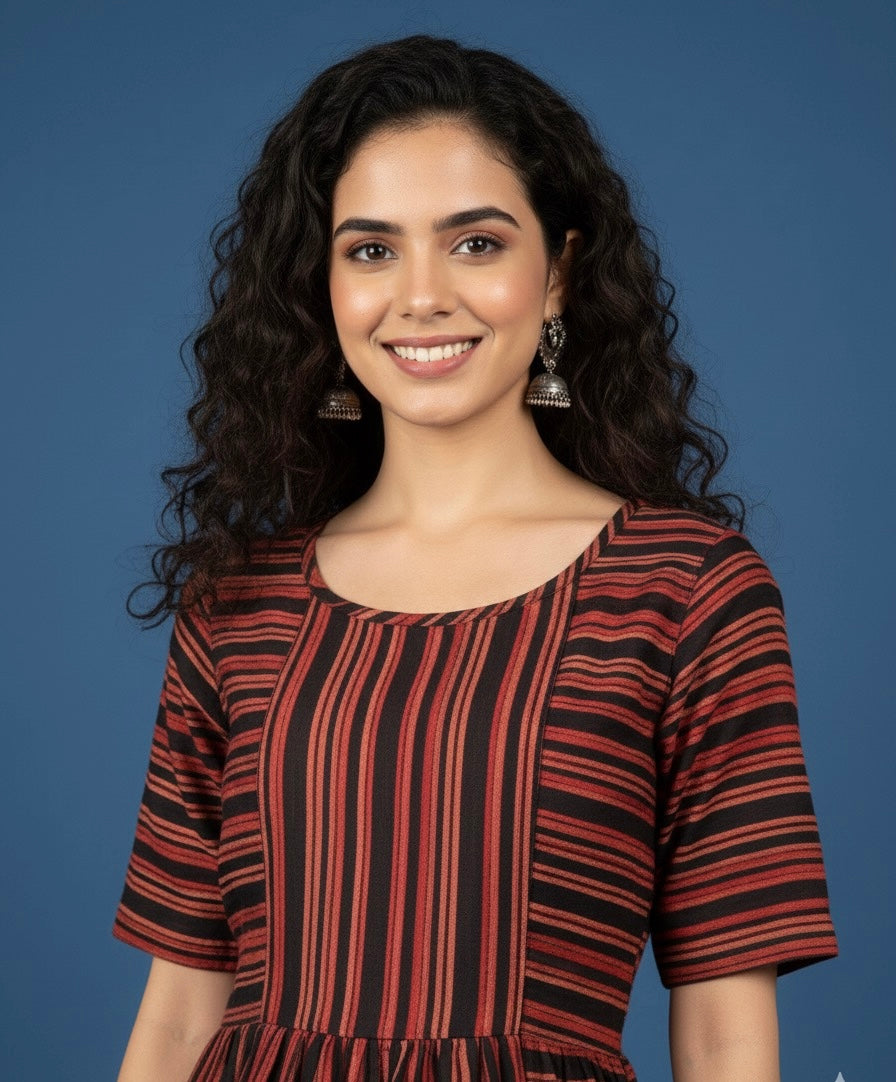 Hand Block Printed AJRAKH Modal Dress