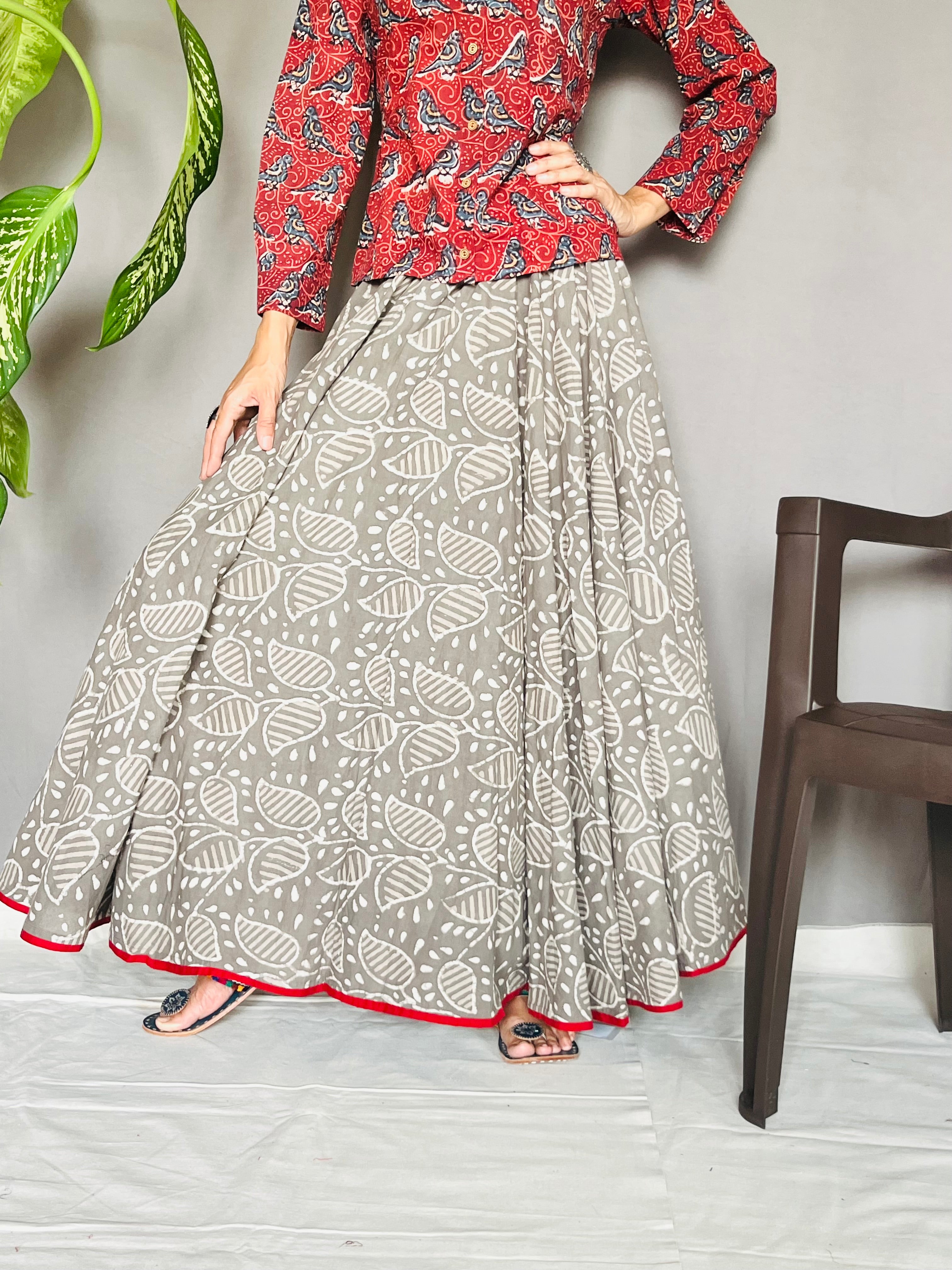 Step into timeless elegance with Somariya’s handcrafted full-flared long skirts, where tradition meets contemporary flair. Each skirt is a work of art, made using premium quality hand block printed fabrics sourced from the heart of India’s textile heritage.