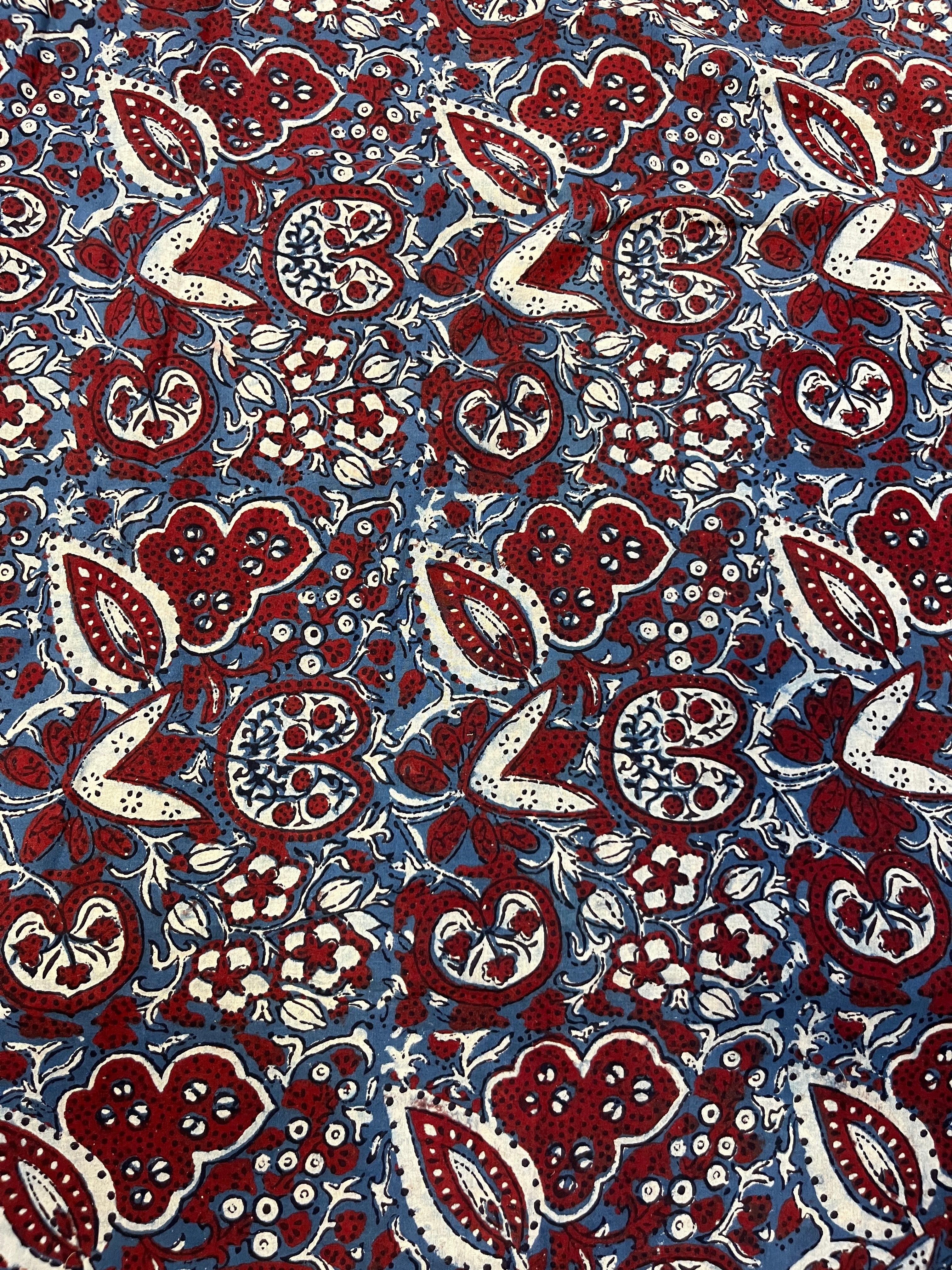 An earthy collection of naturally dyed handblock printed fabrics in Ajrakh ranging from paisleys, florals, diamonds to stripes, buttas , jaal prints, and many more.