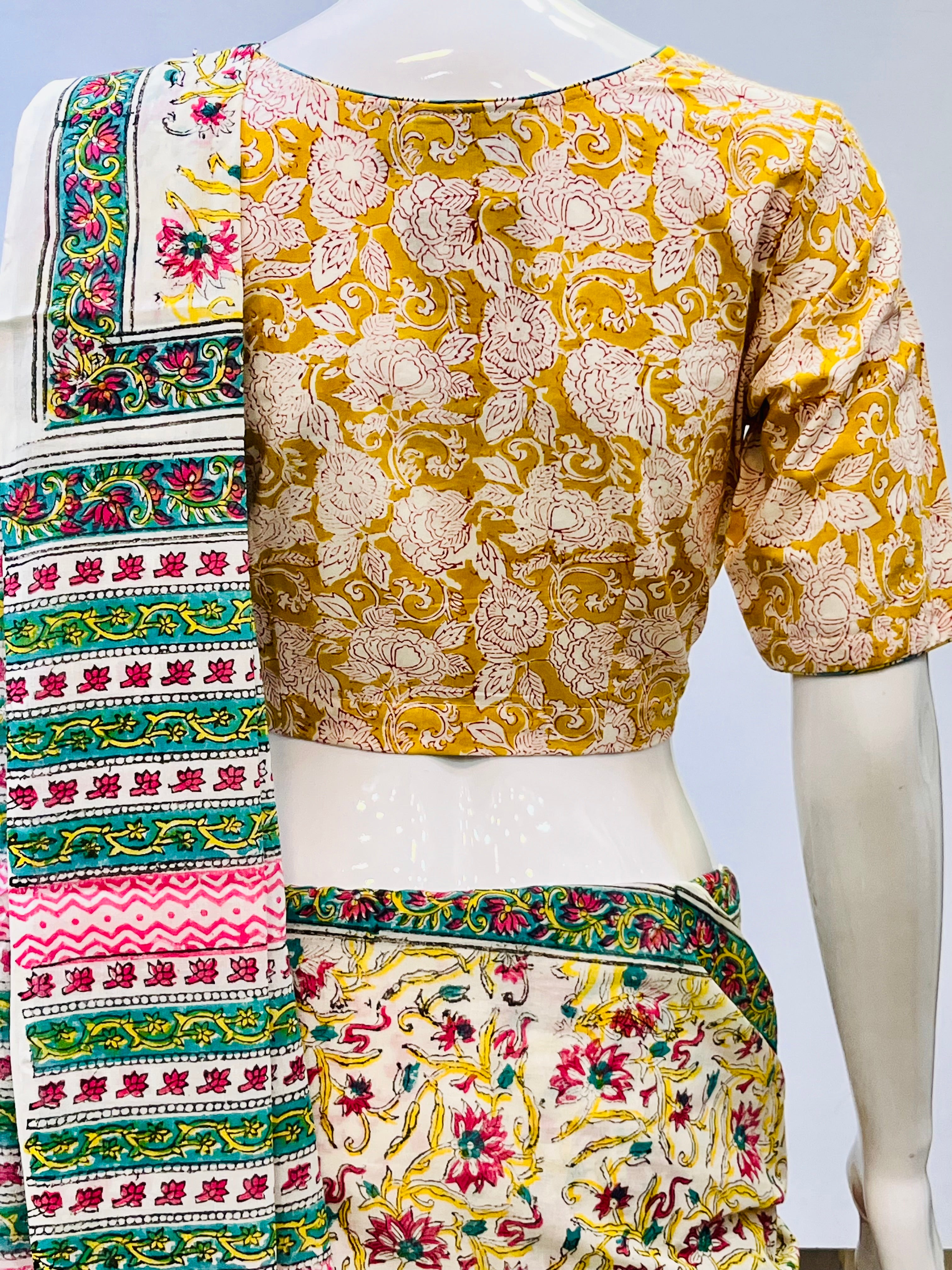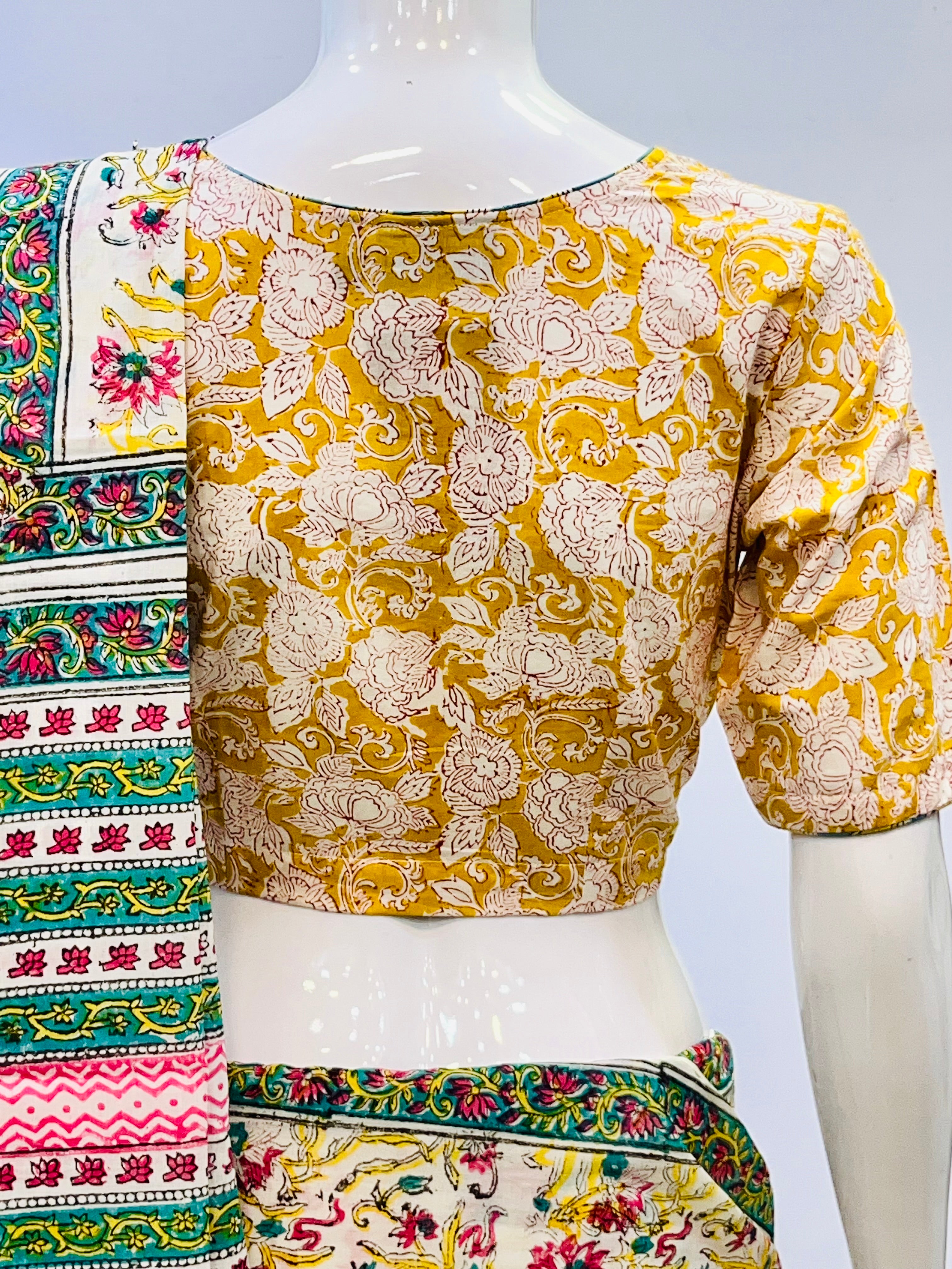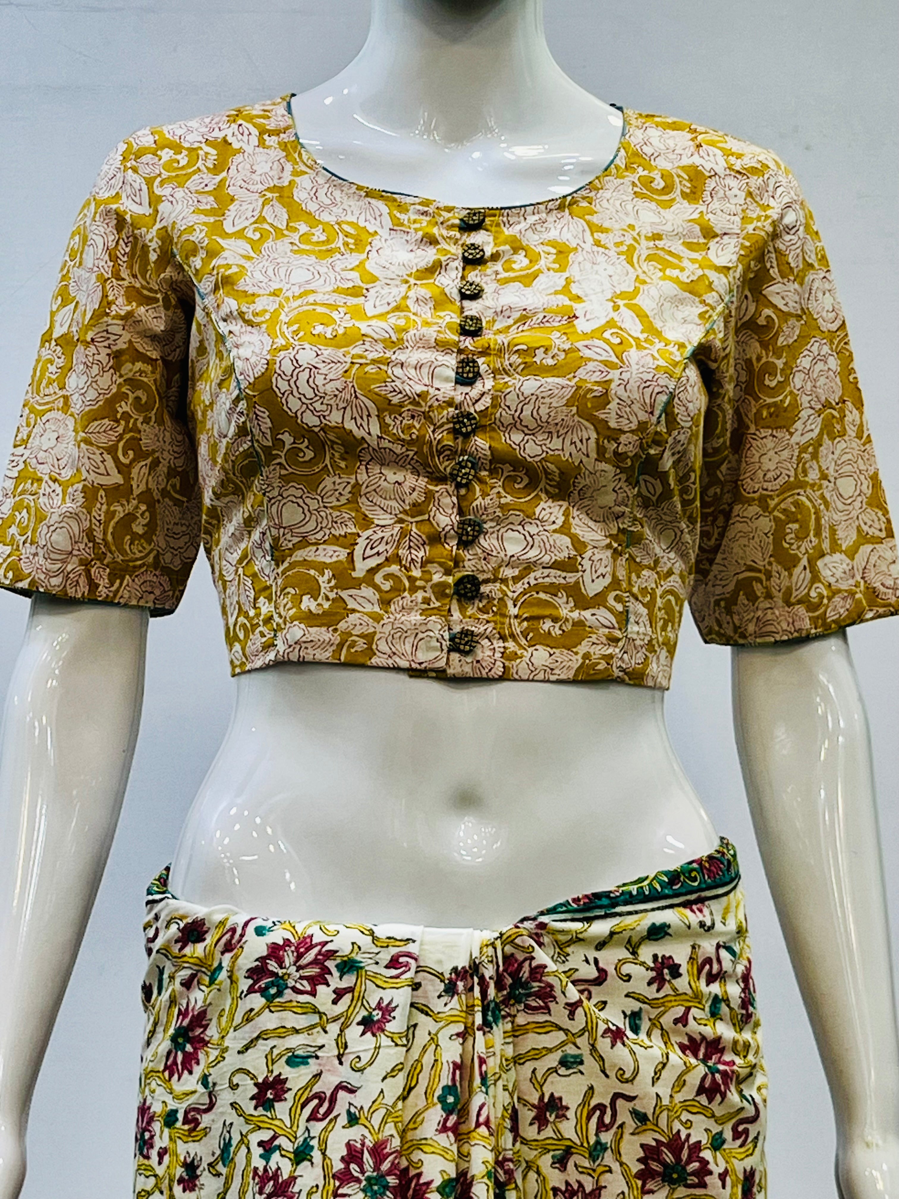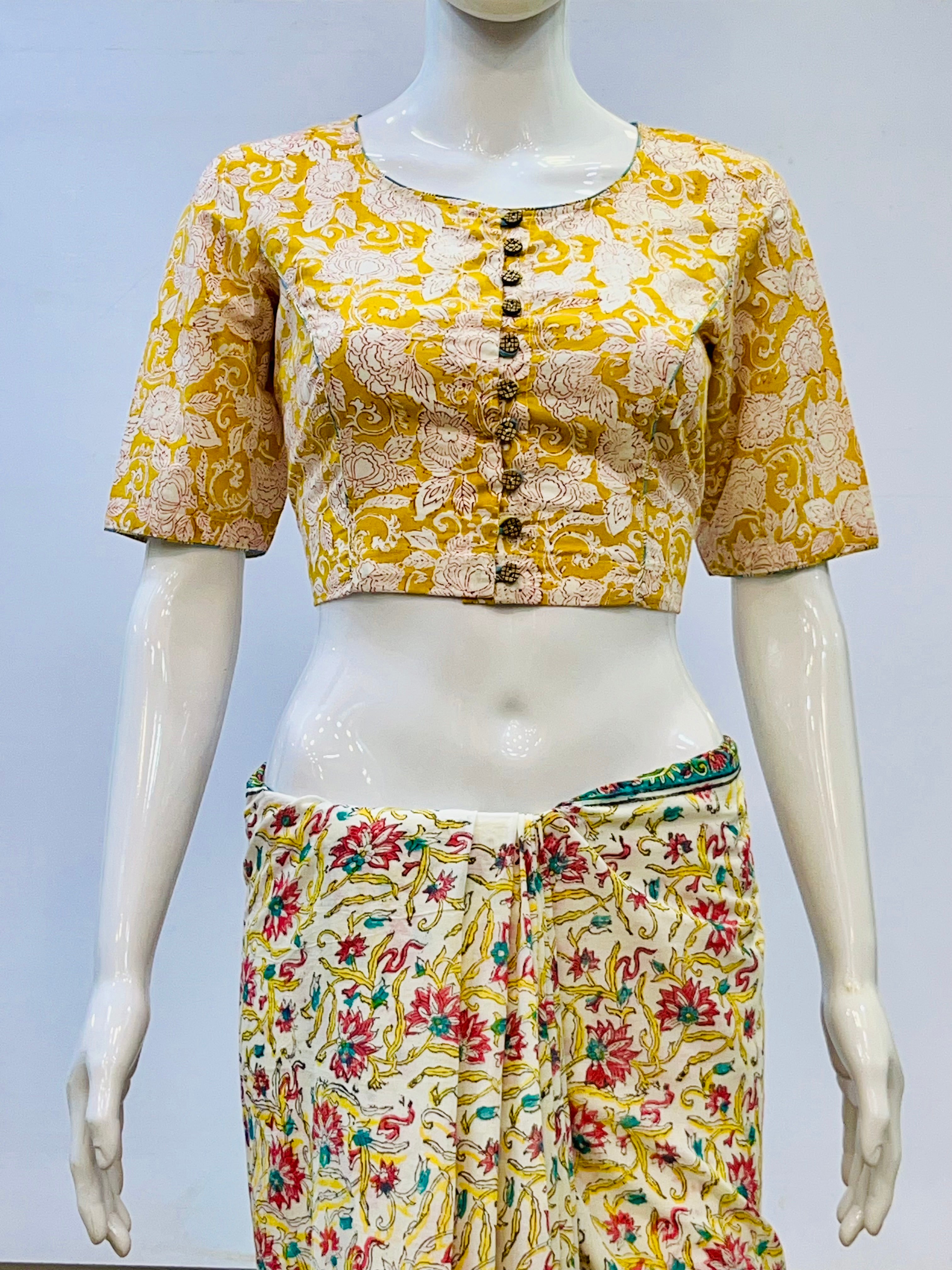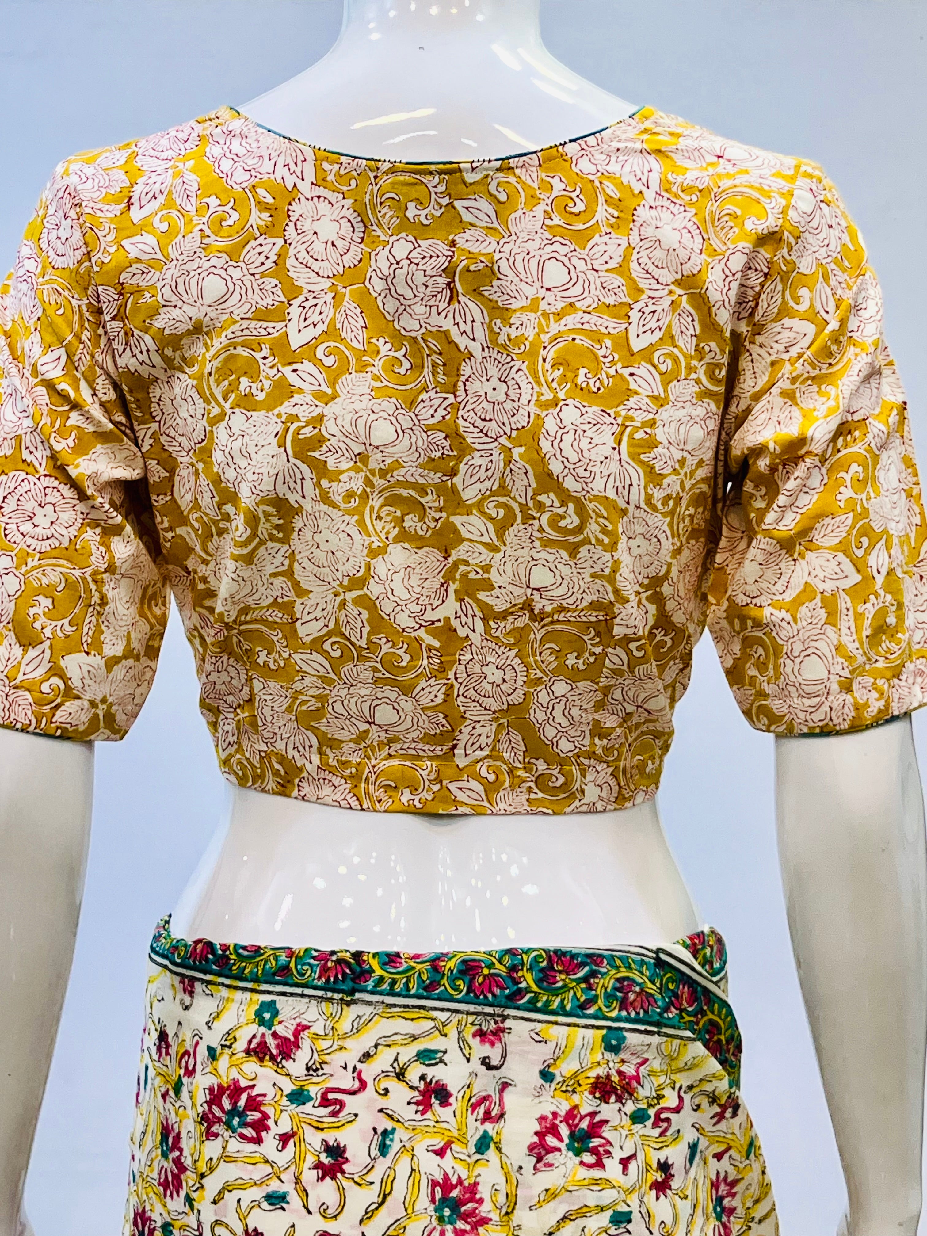 Each piece is adorned with traditional Sanganeri prints, meticulously hand-blocked by skilled artisans, celebrating the heritage of Rajasthan's centuries-old textile art. Whether paired with a saree, skirt, or jeans, these blouses bring a touch of artisanal charm to your everyday wardrobe.
