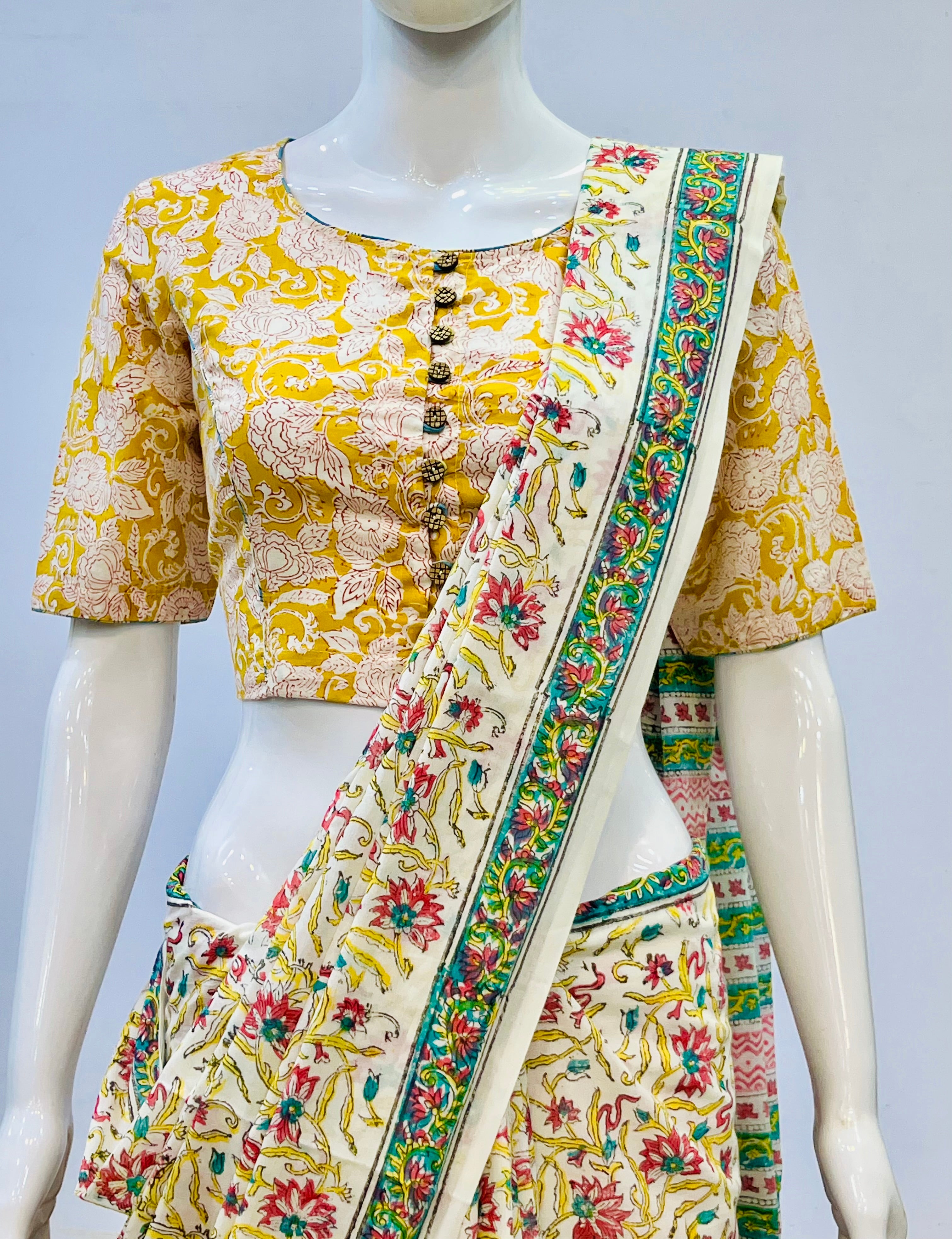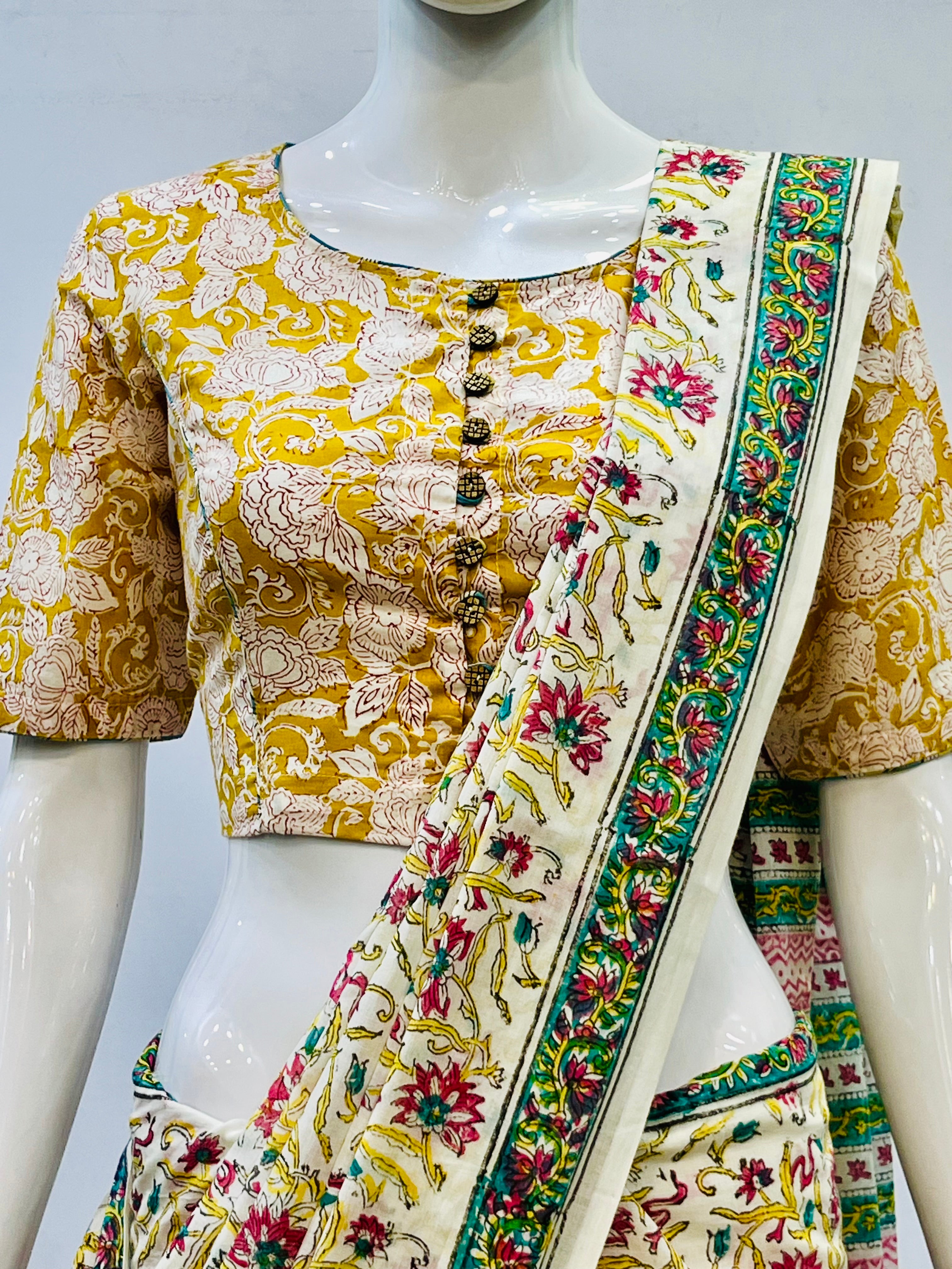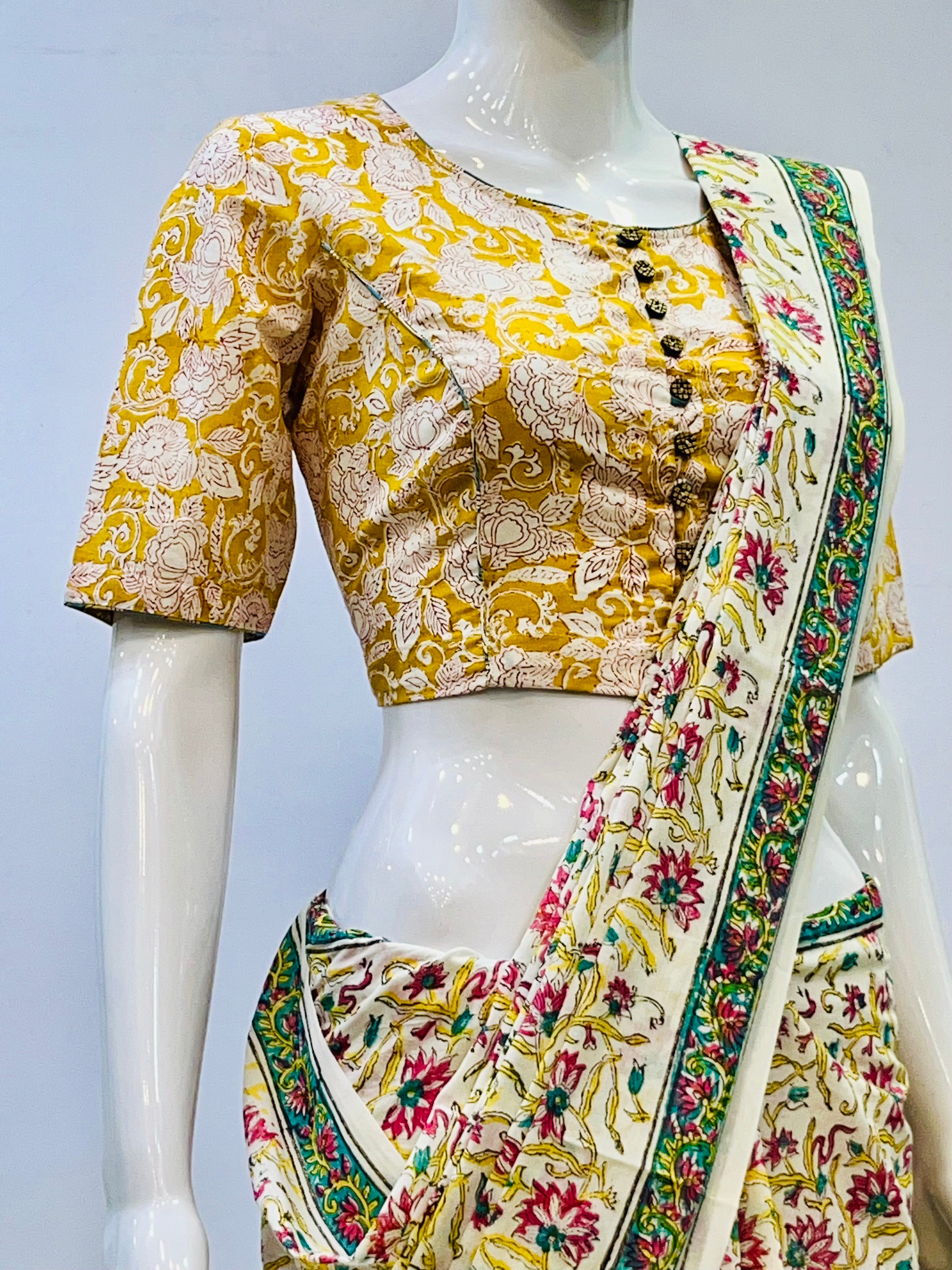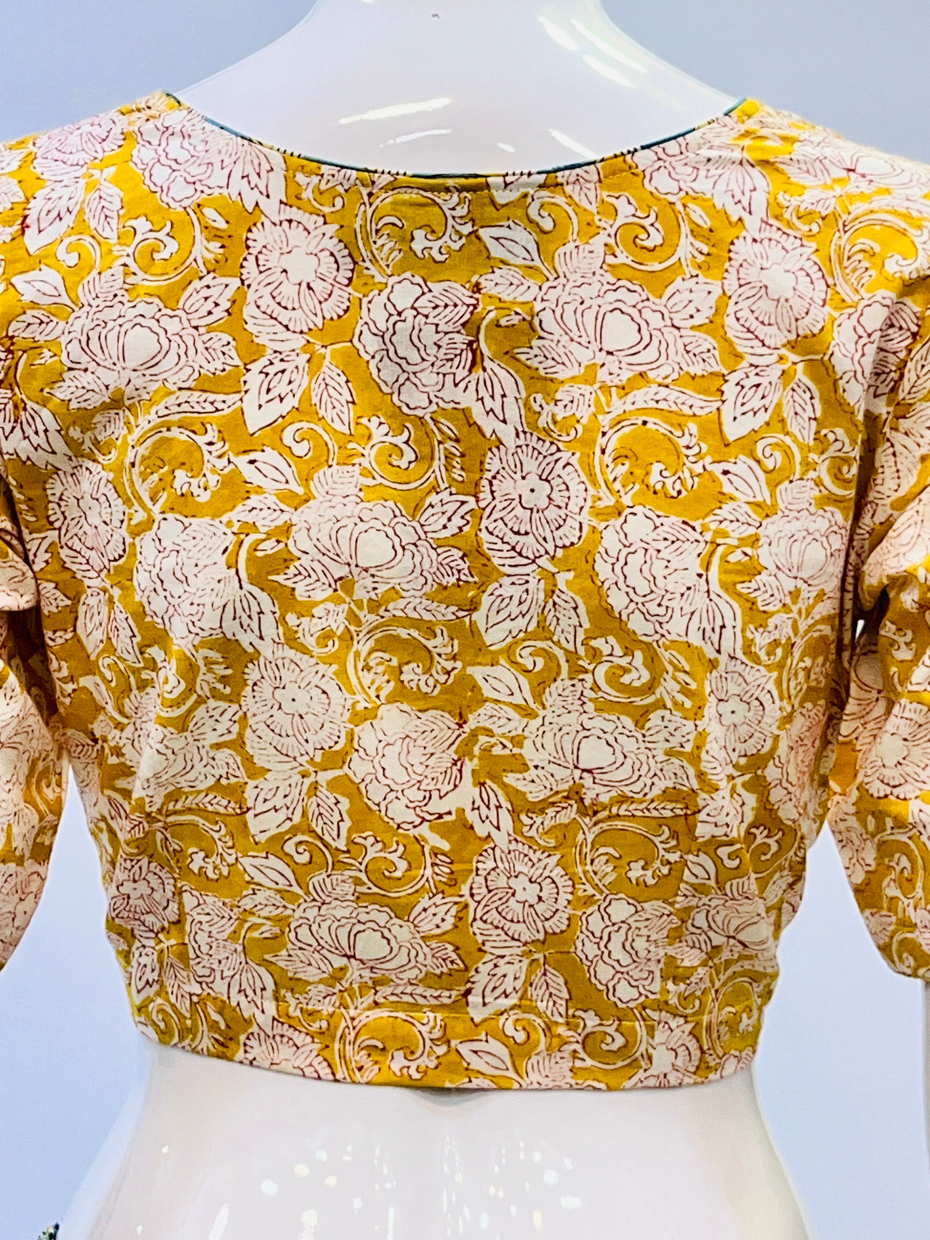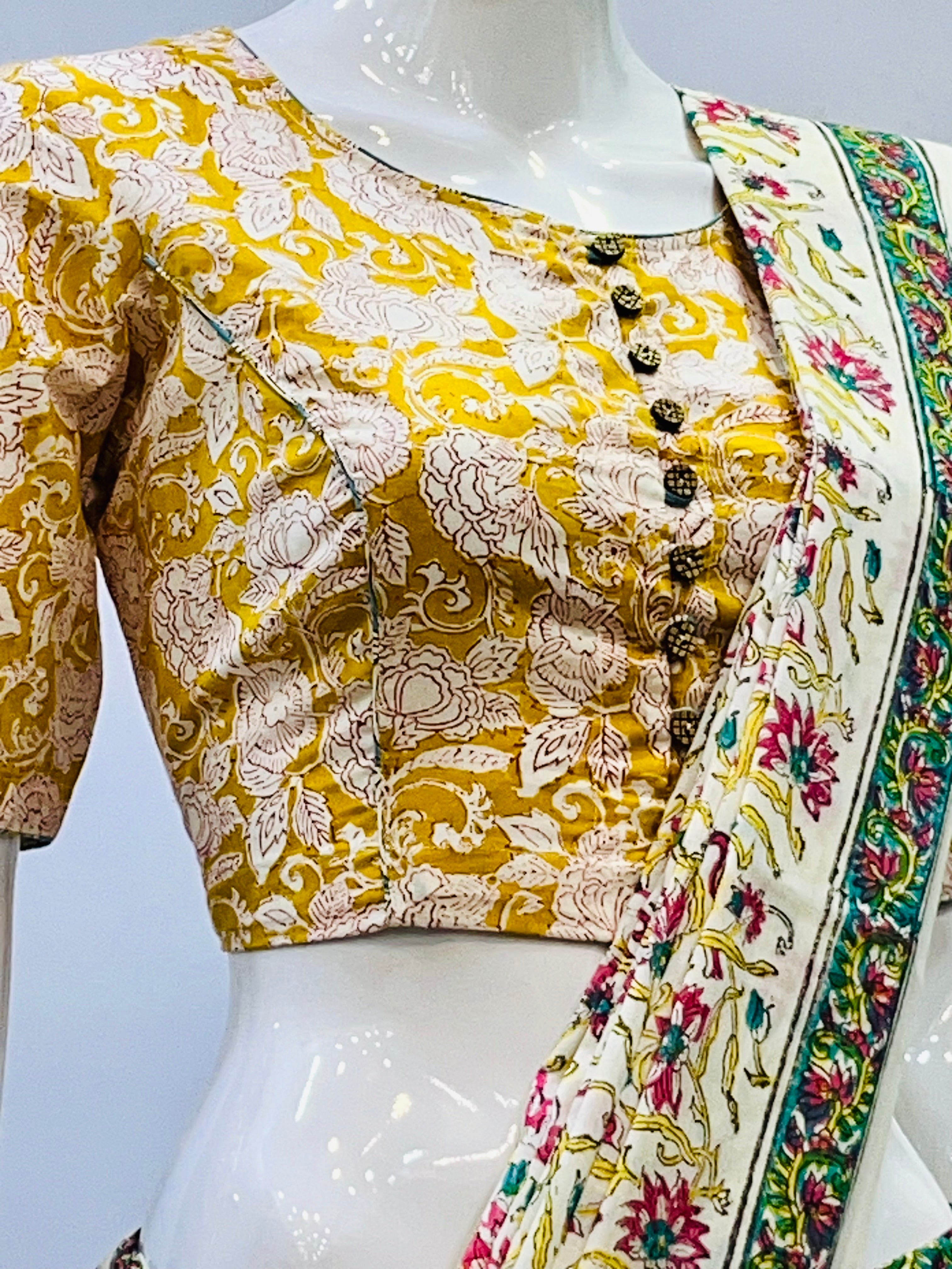 Each piece is adorned with traditional Sanganeri prints, meticulously hand-blocked by skilled artisans, celebrating the heritage of Rajasthan's centuries-old textile art. Whether paired with a saree, skirt, or jeans, these blouses bring a touch of artisanal charm to your everyday wardrobe.