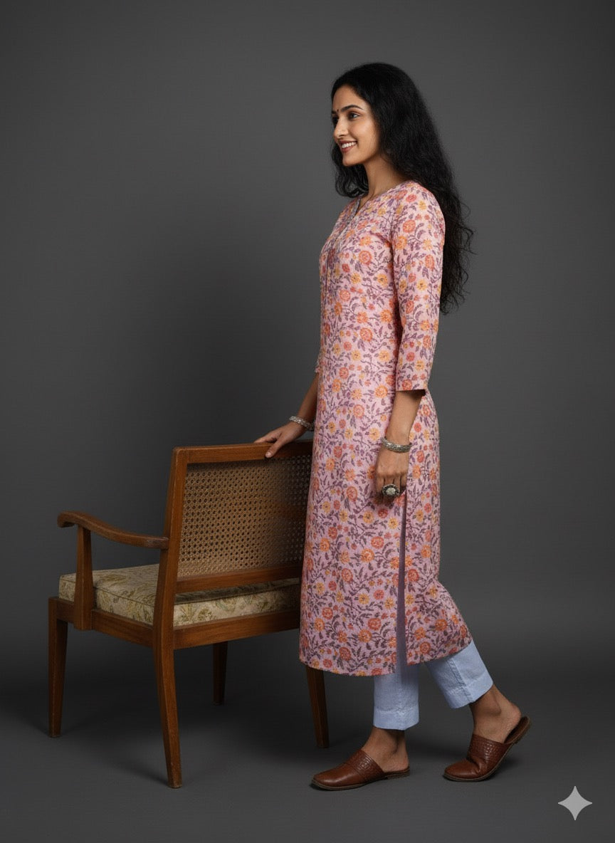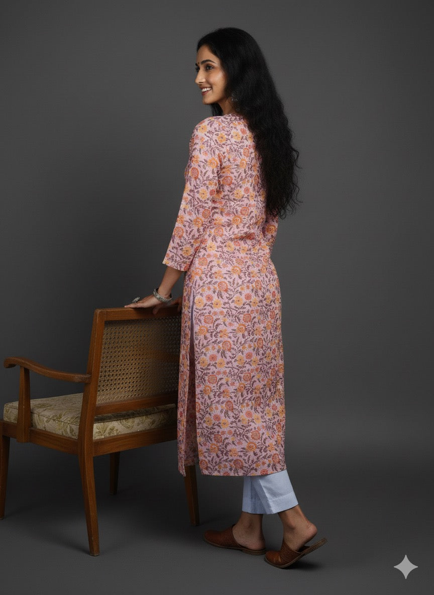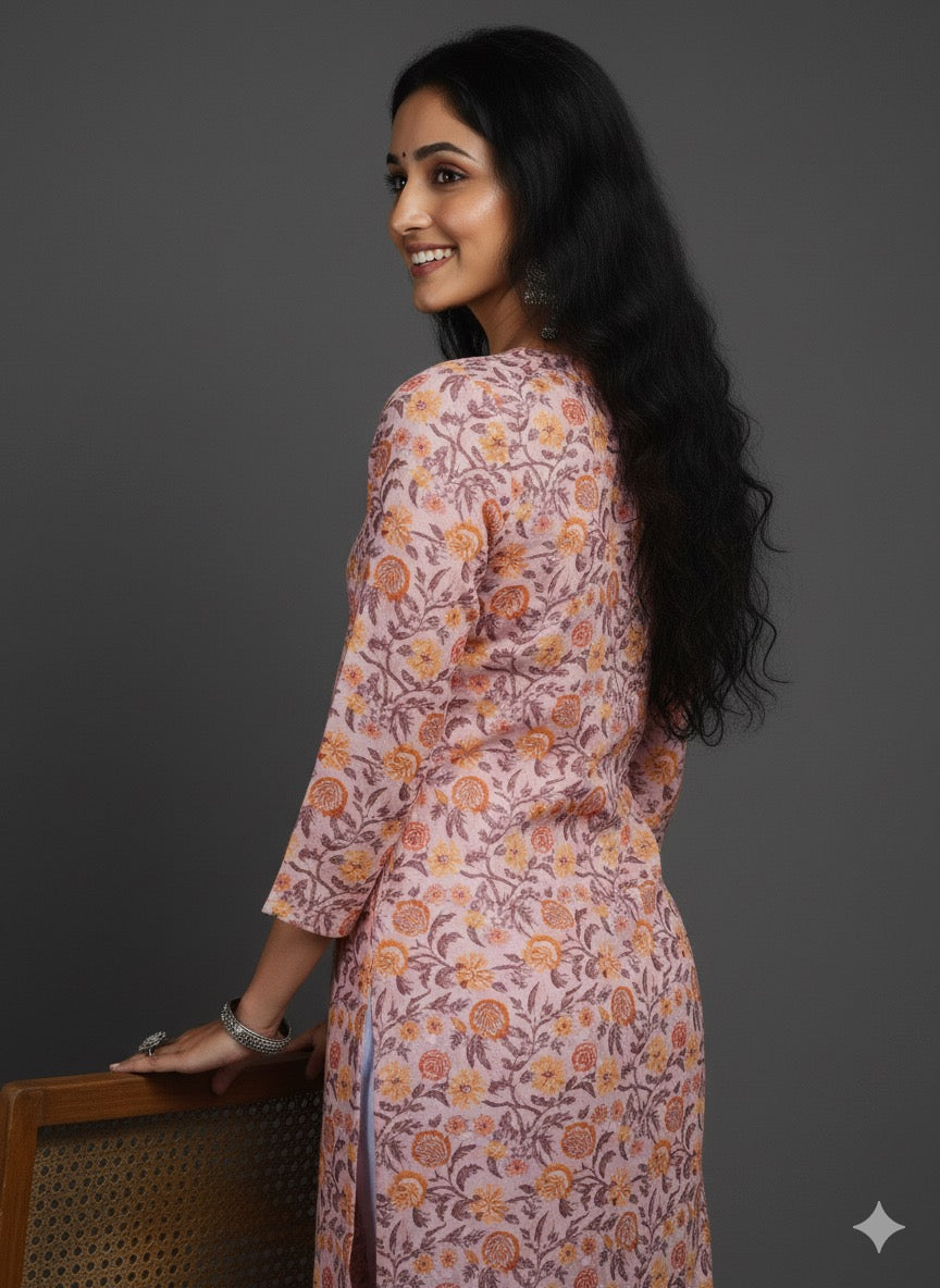 In the artful process of hand block-printing and stitching, variations are likely to come into existence. These irregularities are the hallmark of all handmade products and give each style a unique identity.Colours tend to be perceived differently depending on factors such as shot angles, lighting, background tones and colour temperatures. As a result, prints and colours may vary. Nevertheless, we strive to match the tones as close to the original product colours as possible.
