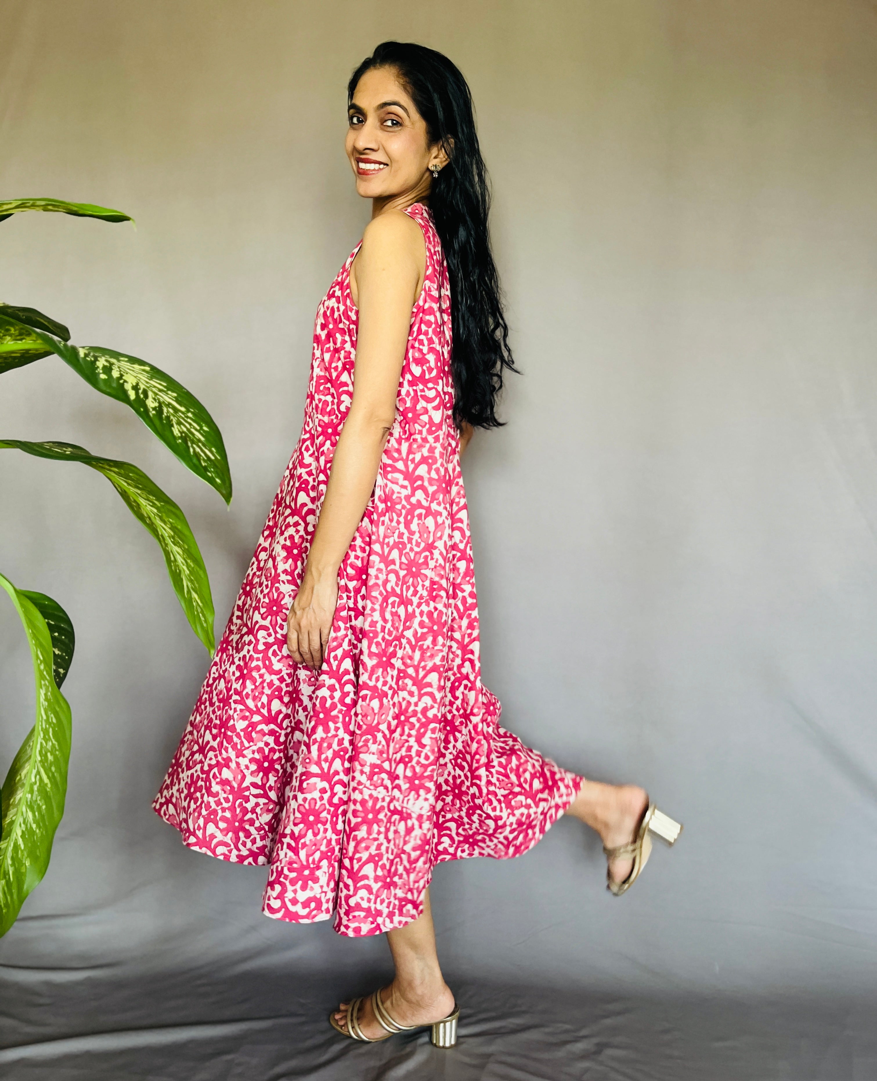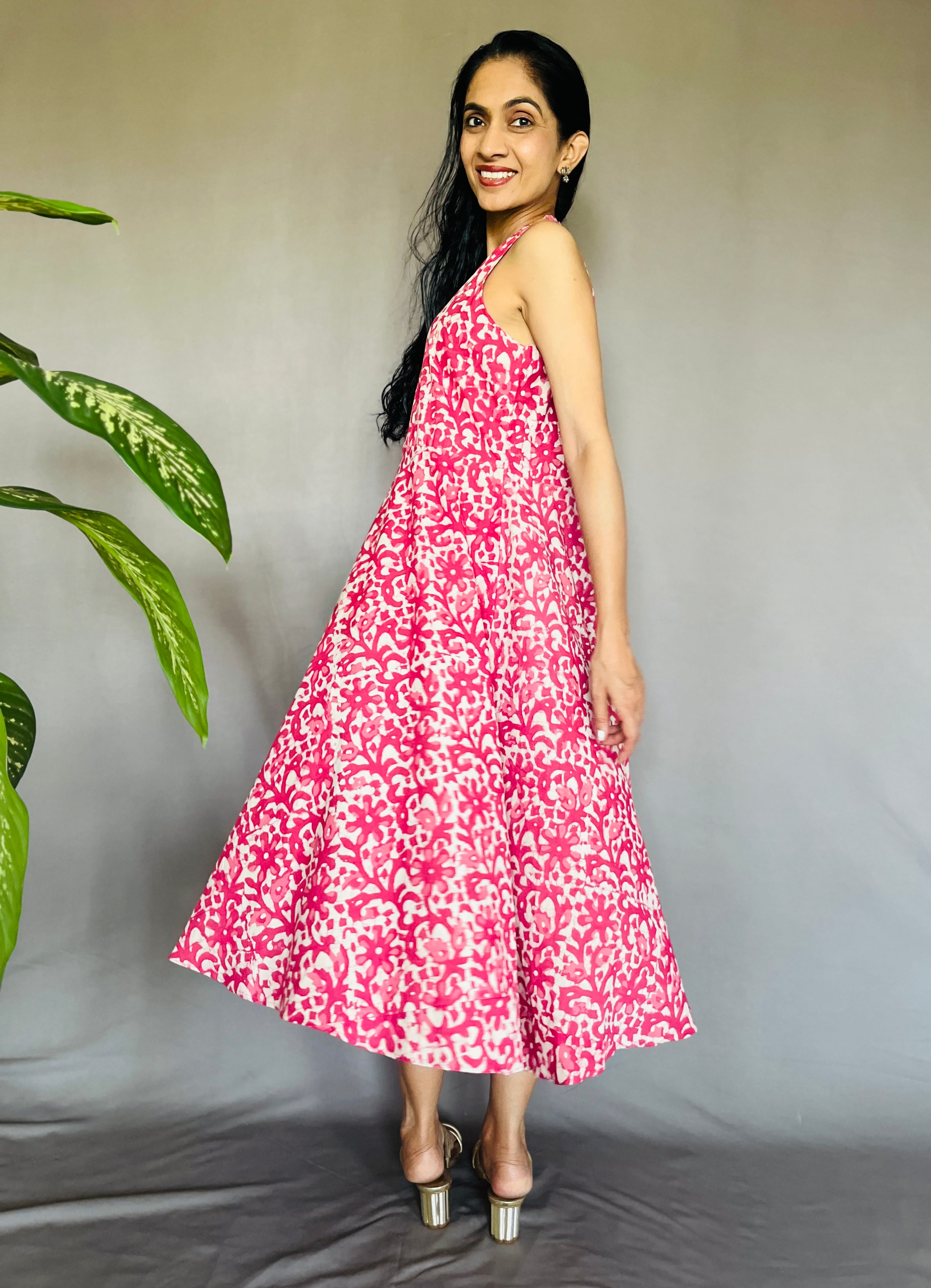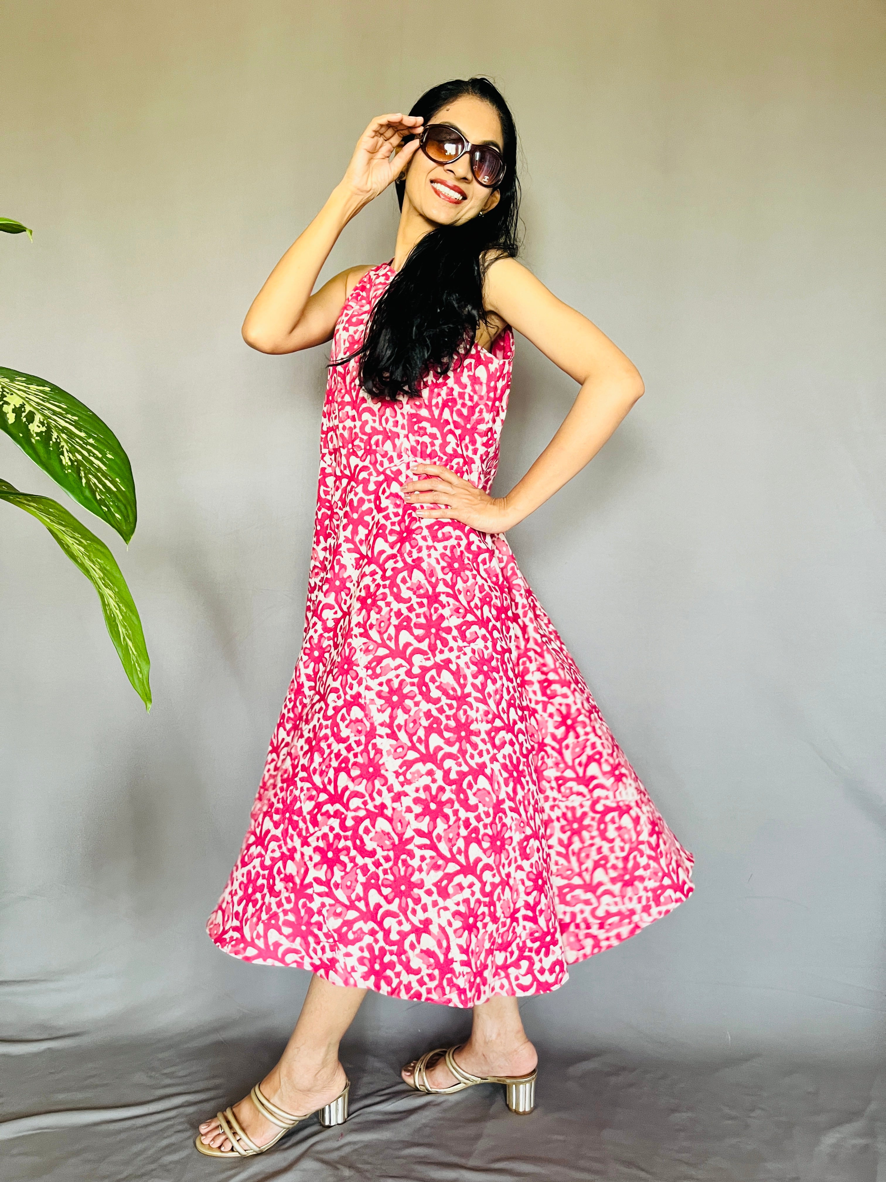 Dabo Printed Halter Neck Cotton Dress
