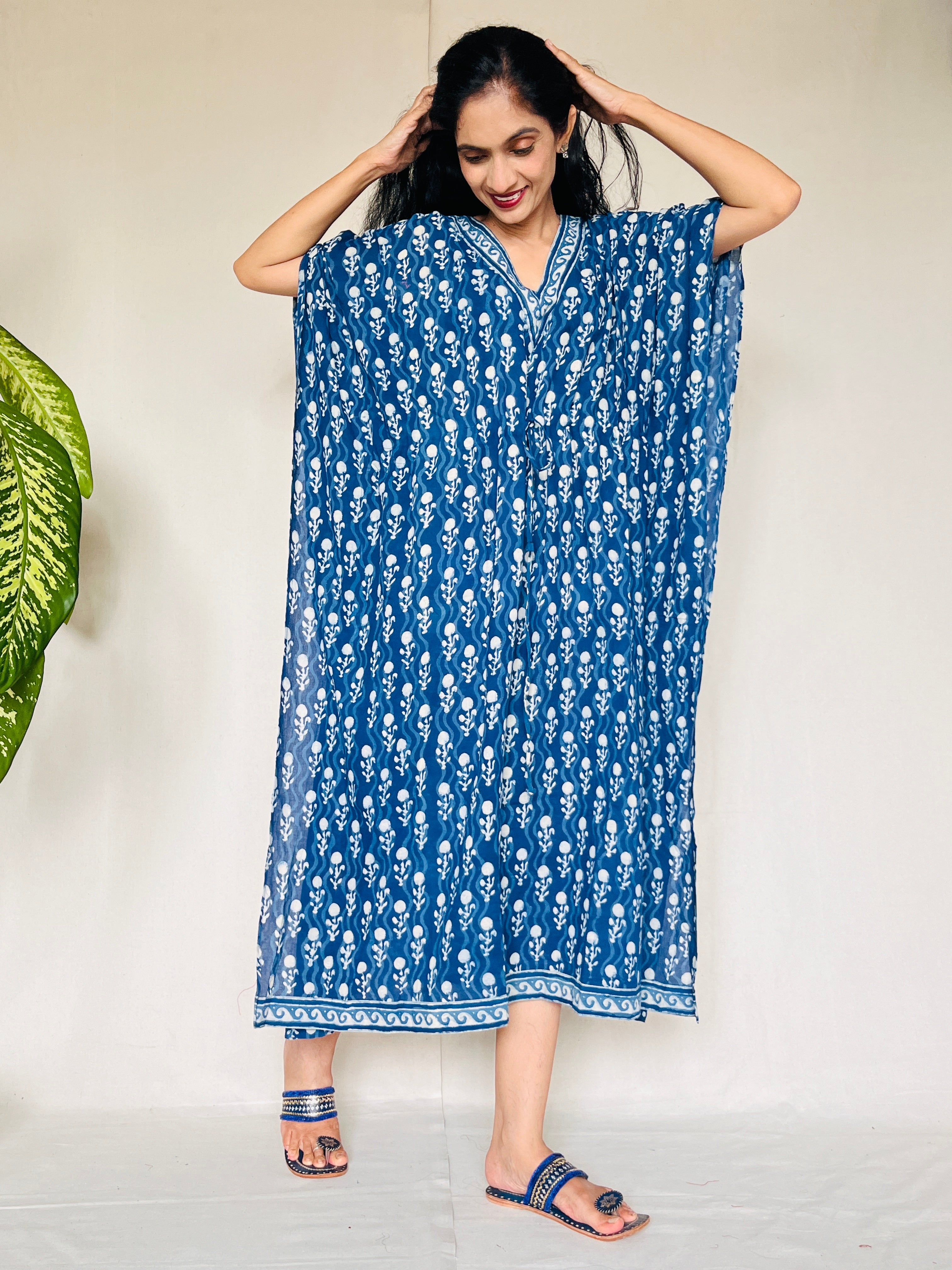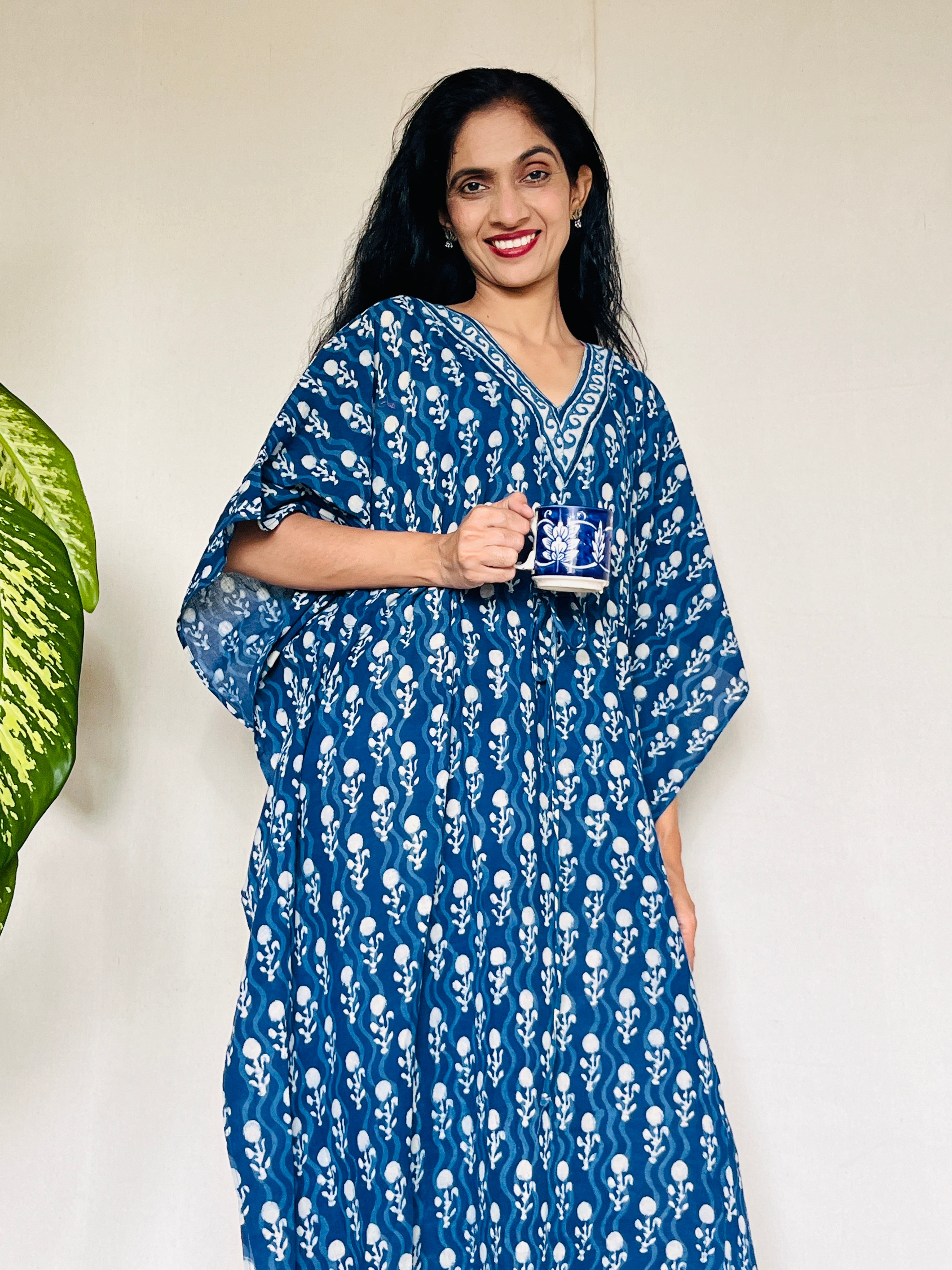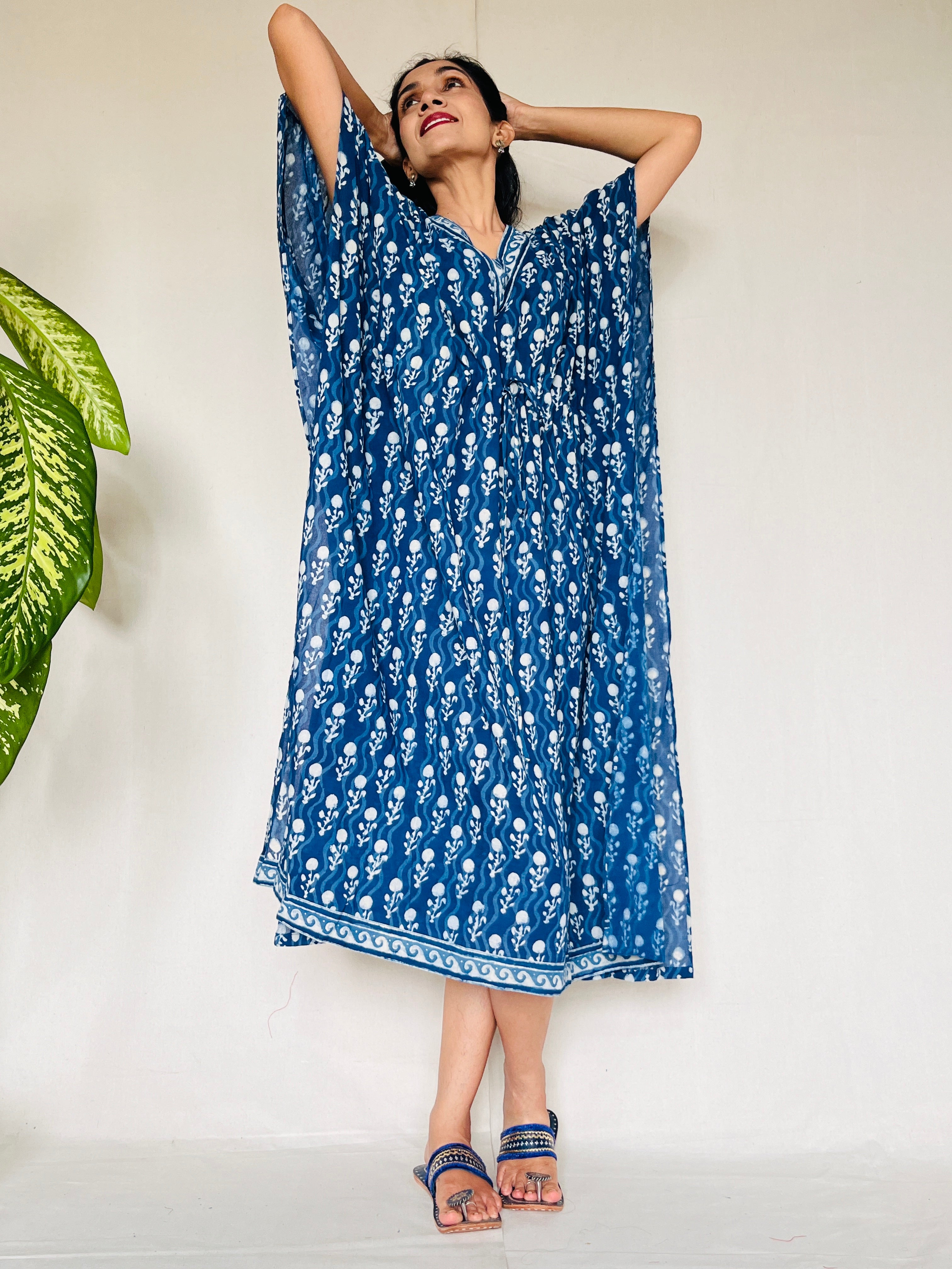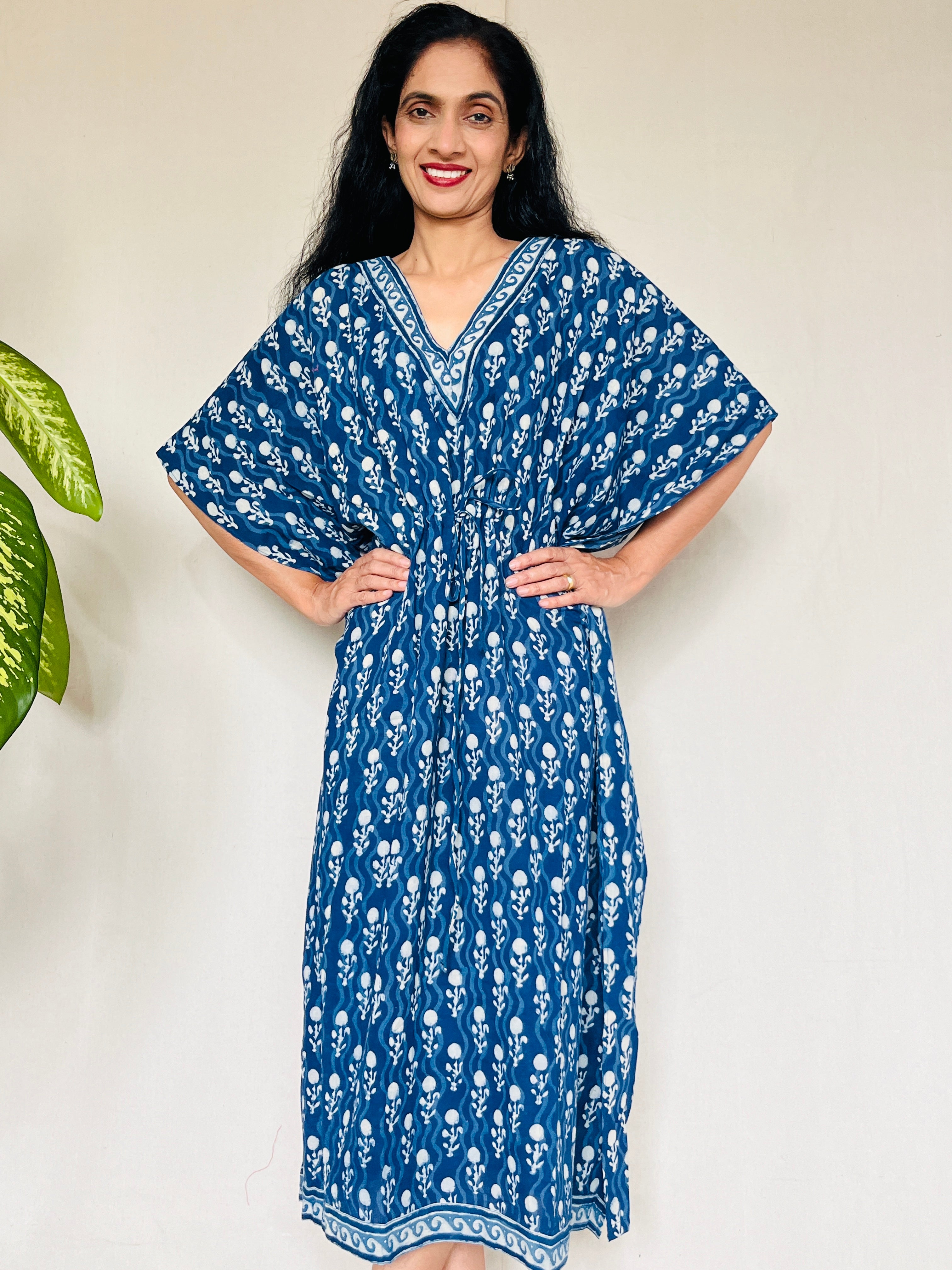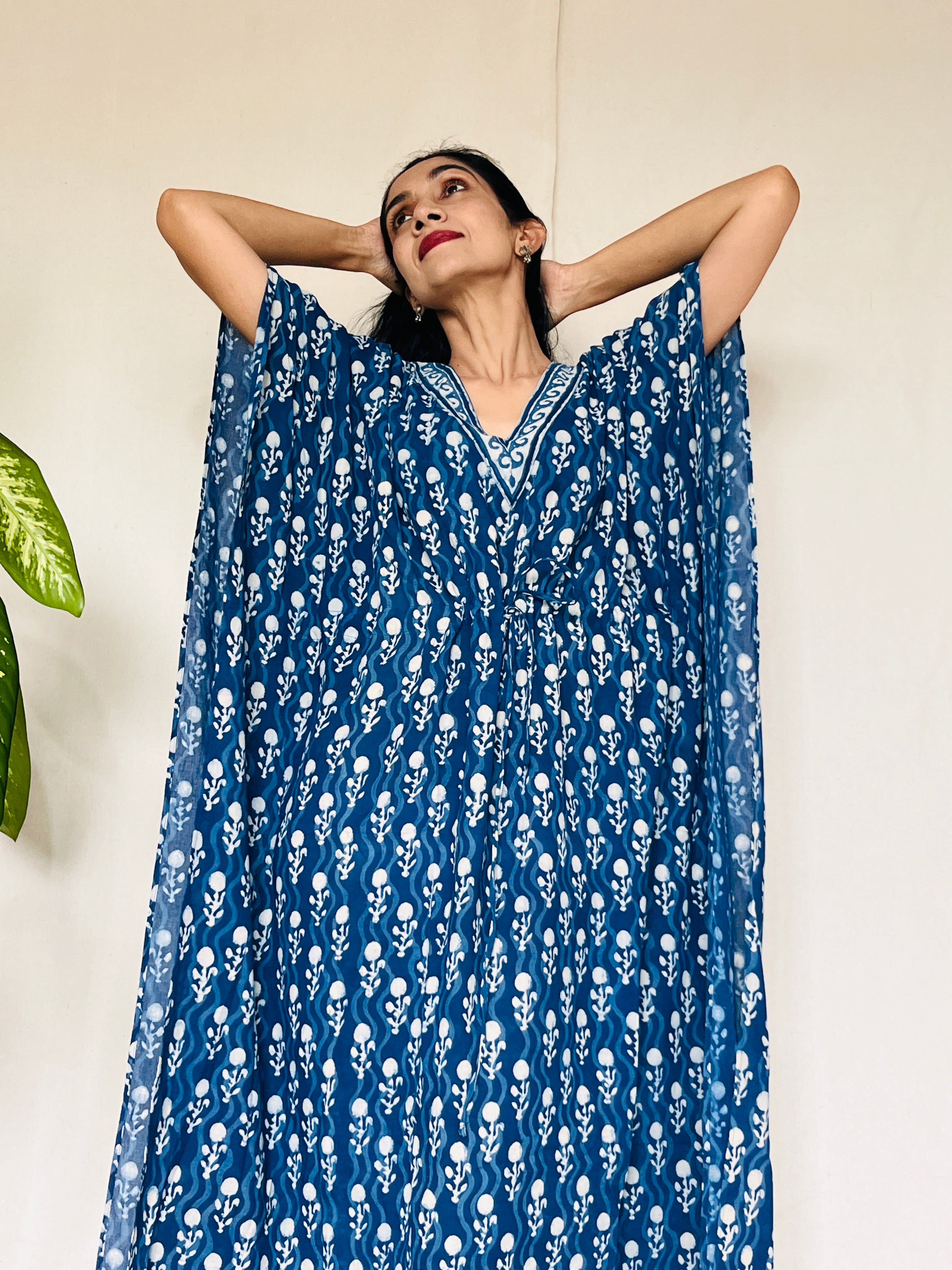 Natural Indigo Dyed Hand Block Printed Kaftans