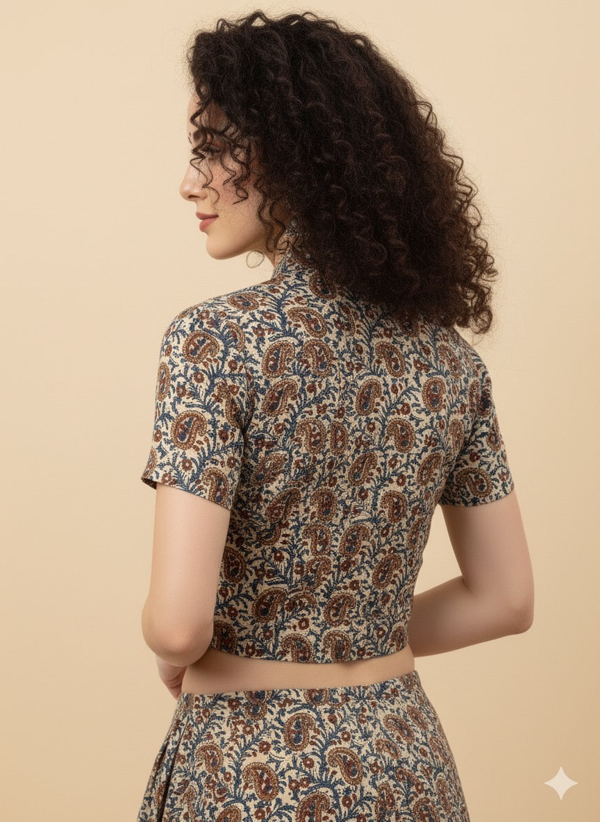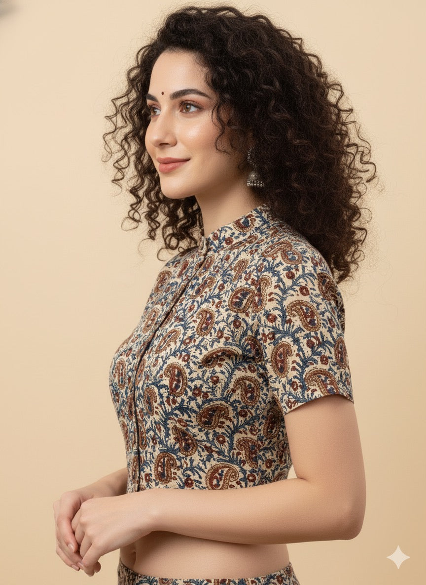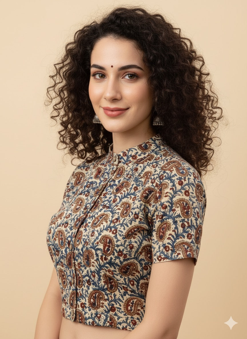 Experience timeless elegance with SomaRiya’s Kalamkari Hand block printed blouse. Made from 100% pure cotton fabric, these blouses are incredibly soft, lightweight, and exceptionally breathable — perfect for all-day comfort in any season.