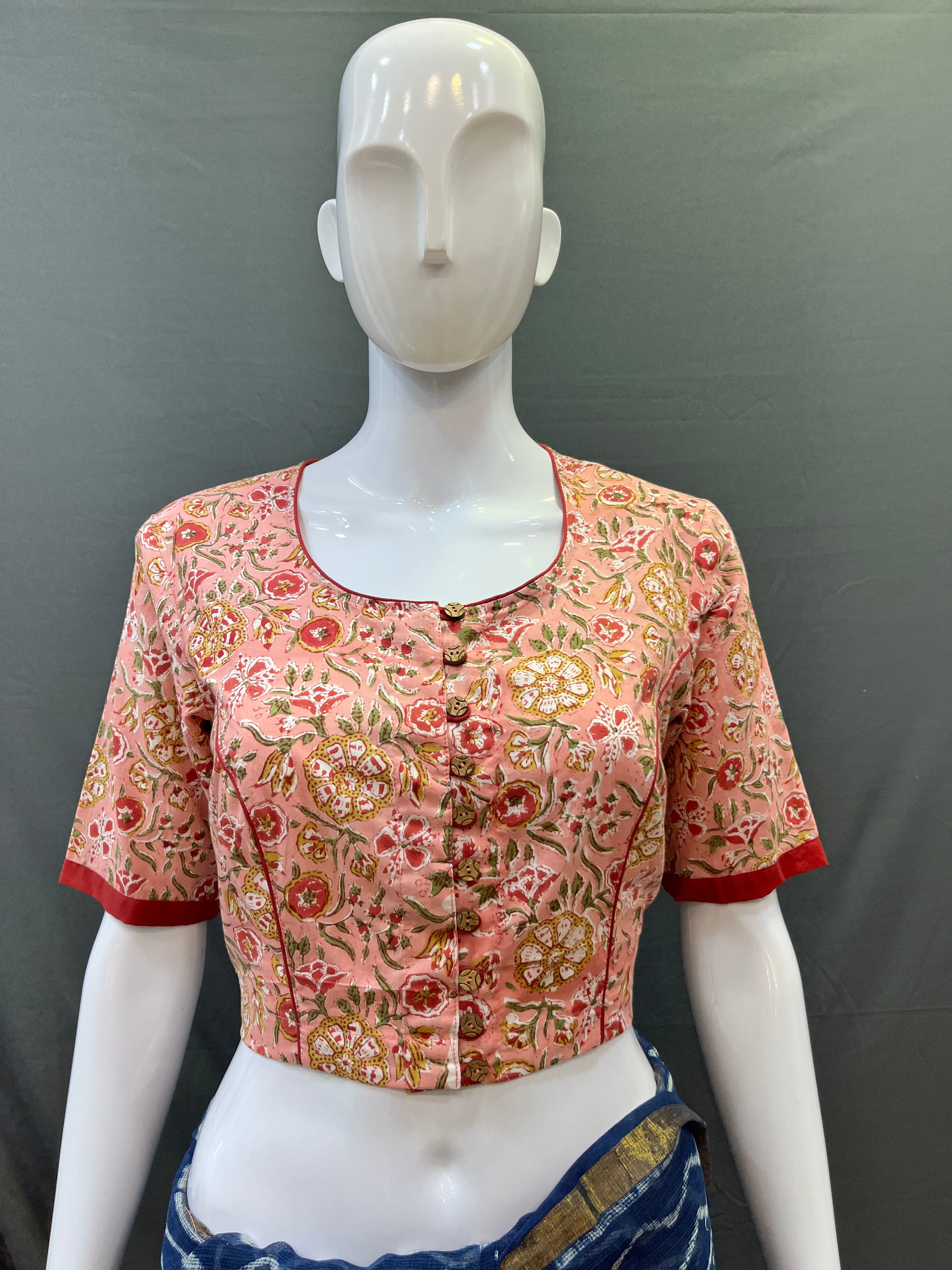 Each piece is adorned with traditional Hand Block prints, meticulously hand-blocked by skilled artisans, celebrating the heritage of Rajasthan's centuries-old textile art. Whether paired with a saree, skirt, or jeans, these blouses bring a touch of artisanal charm to your everyday wardrobe.