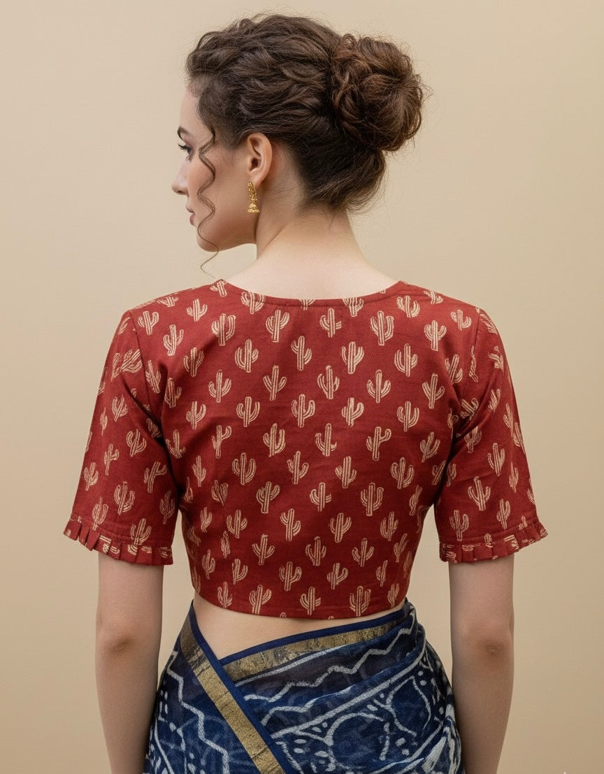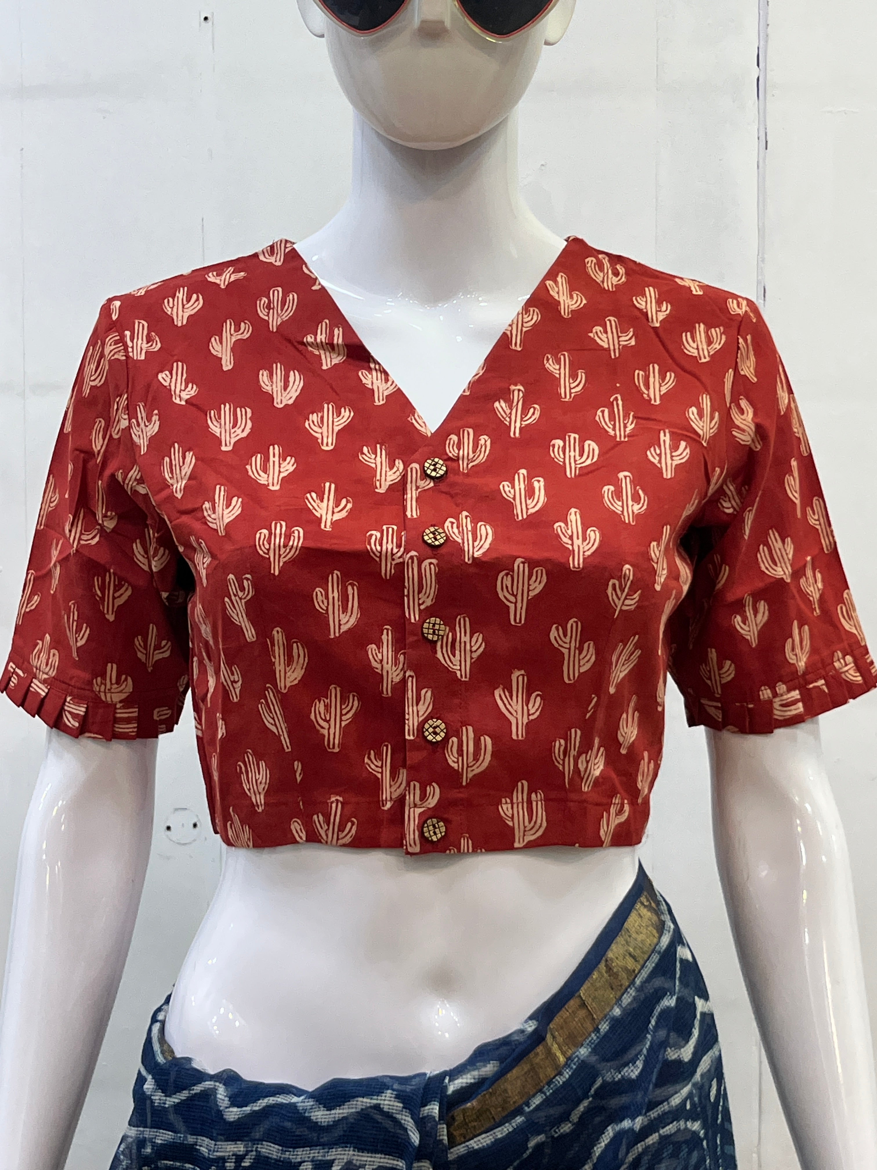 Each piece is adorned with traditional Hand Block prints, meticulously hand-blocked by skilled artisans, celebrating the heritage of Rajasthan's centuries-old textile art. Whether paired with a saree, skirt, or jeans, these blouses bring a touch of artisanal charm to your everyday wardrobe.