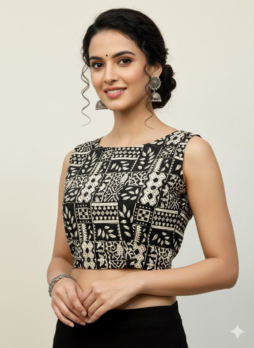 Each piece is adorned with traditional Hand Block prints, meticulously hand-blocked by skilled artisans, celebrating the heritage of Rajasthan's centuries-old textile art. Whether paired with a saree, skirt, or jeans, these blouses bring a touch of artisanal charm to your everyday wardrobe.