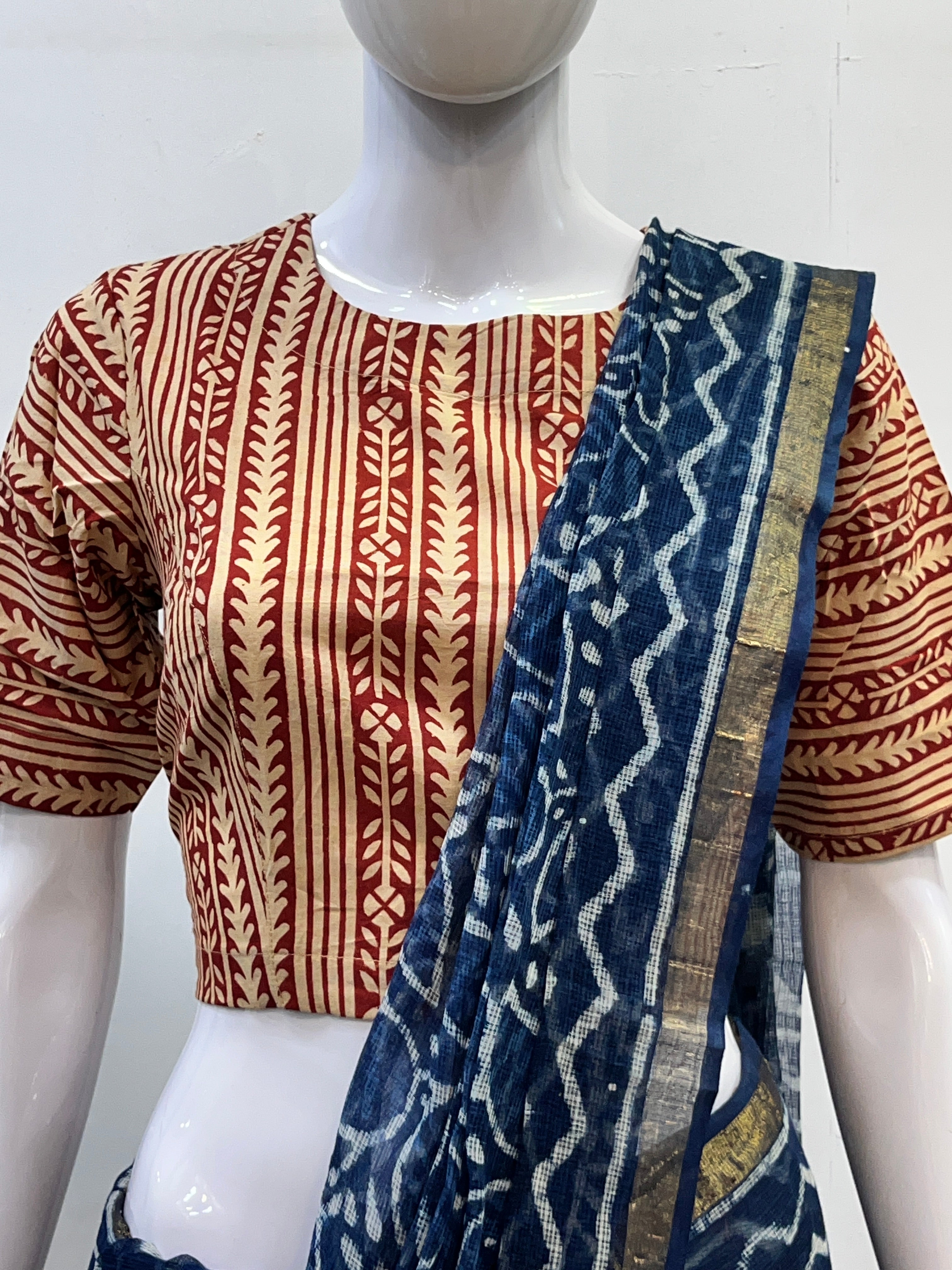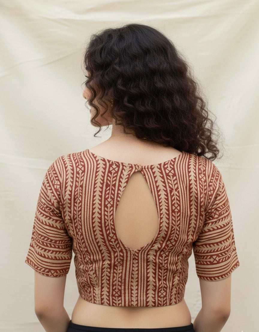 Each piece is adorned with traditional Hand Block prints, meticulously hand-blocked by skilled artisans, celebrating the heritage of Rajasthan's centuries-old textile art. Whether paired with a saree, skirt, or jeans, these blouses bring a touch of artisanal charm to your everyday wardrobe.