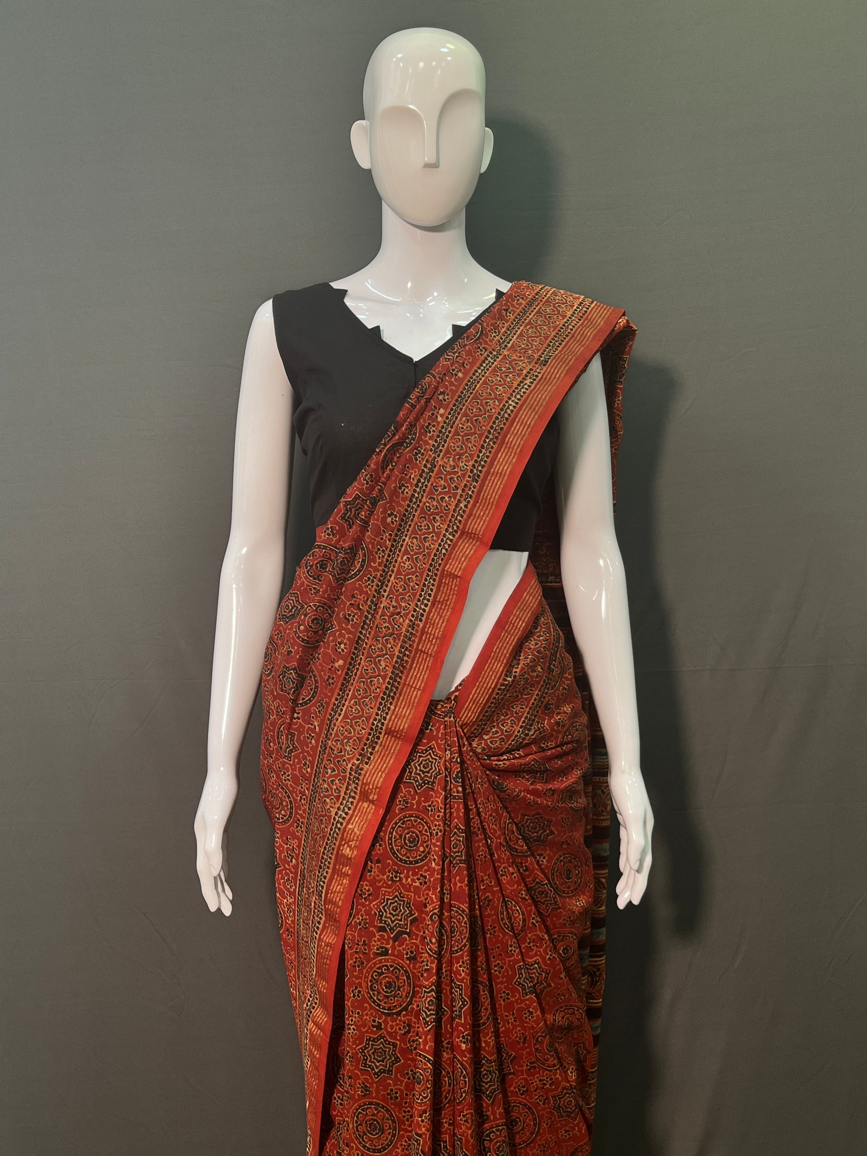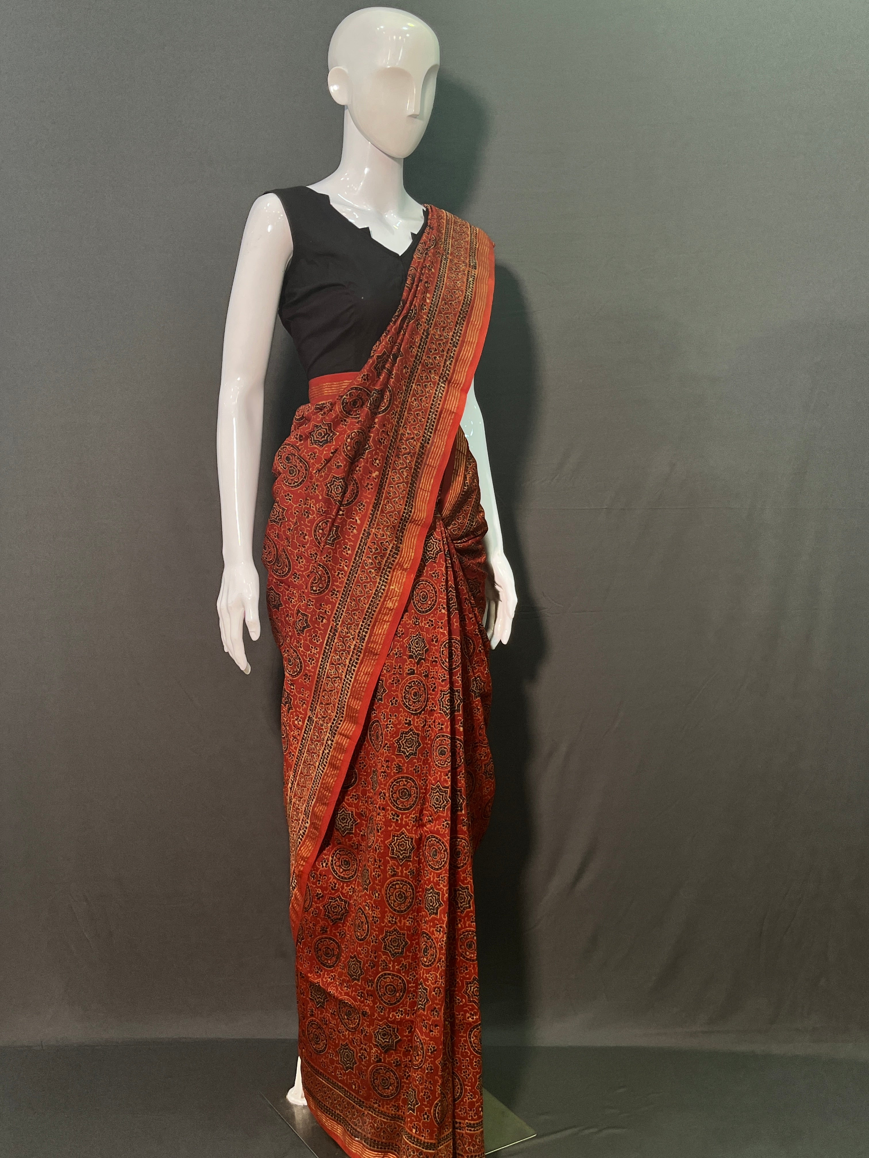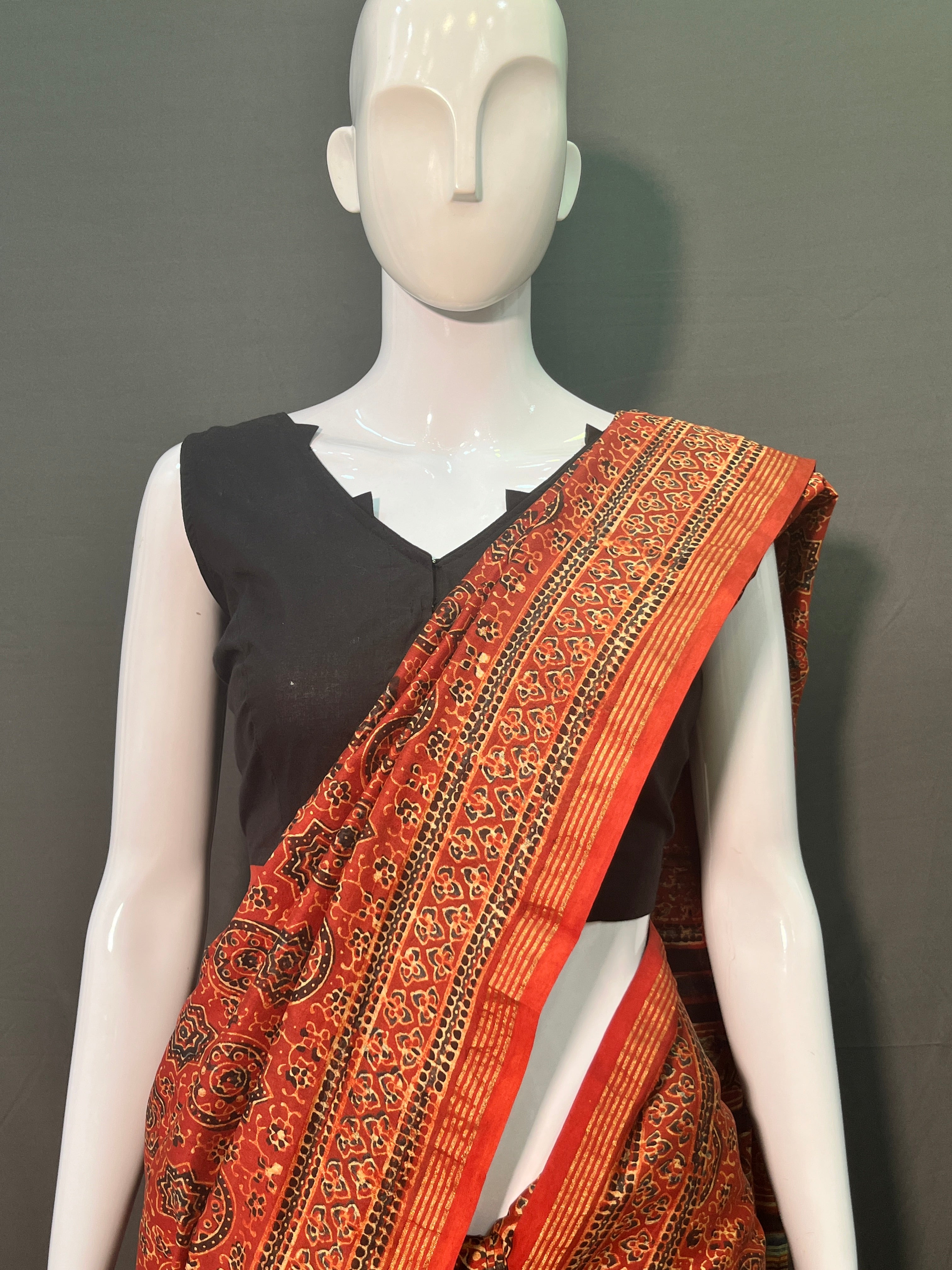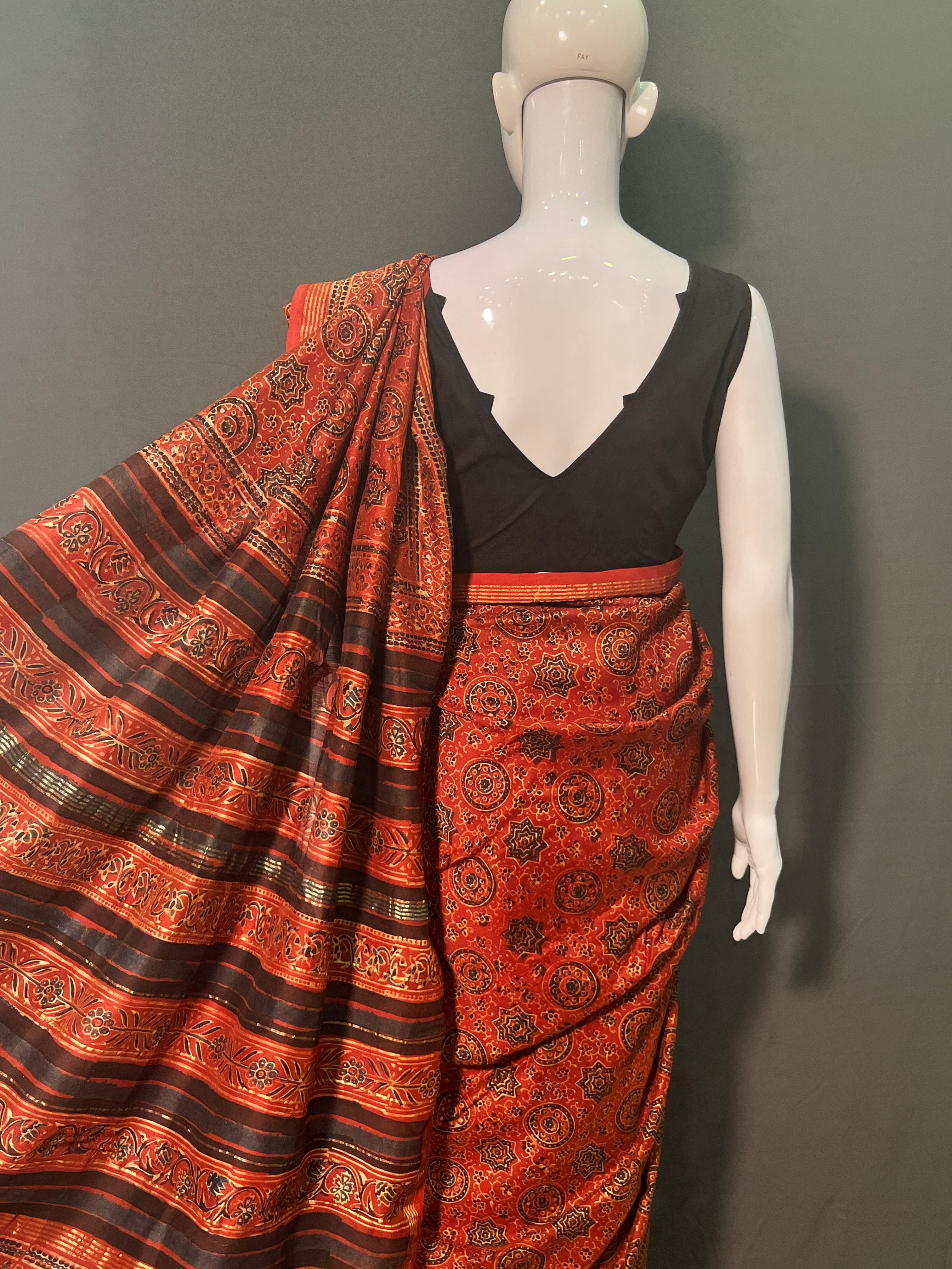 AJRAKH Hand Block Printed Chanderi Silk Saree