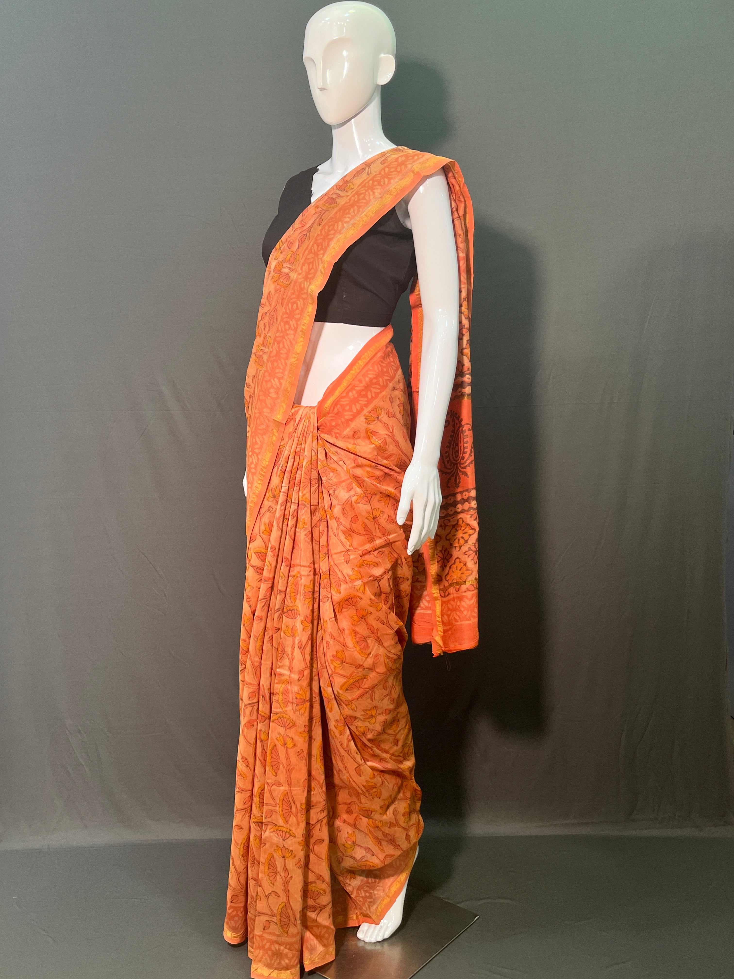 AJRAKH DABO Hand Block Printed Chanderi Silk Saree
