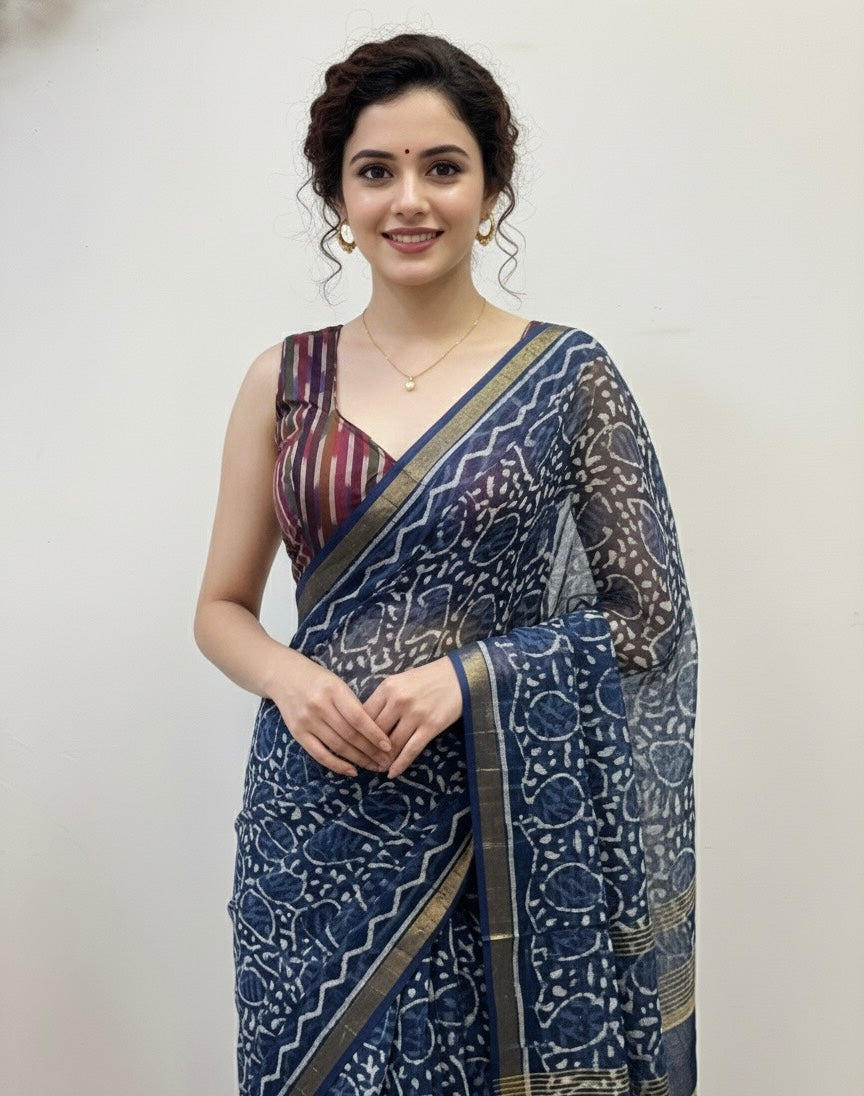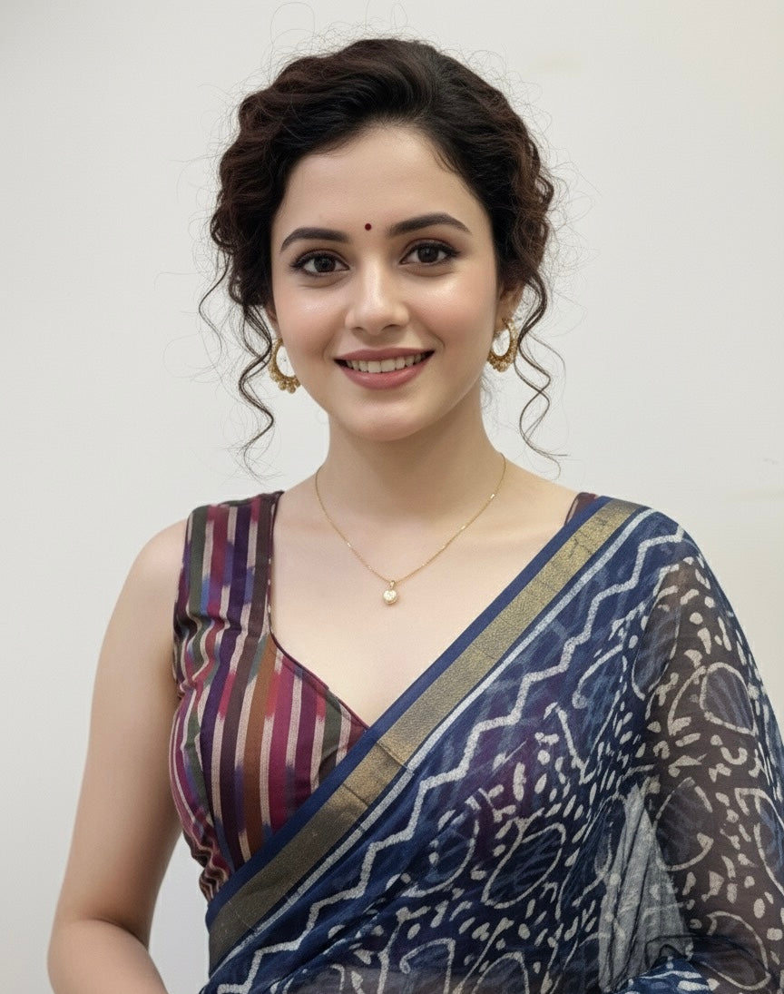 Experience timeless elegance with SomaRiya’s Ikkat hand weave blouse. Made from 100% pure cotton fabric, these blouses are incredibly soft, lightweight, and exceptionally breathable — perfect for all-day comfort in any season.