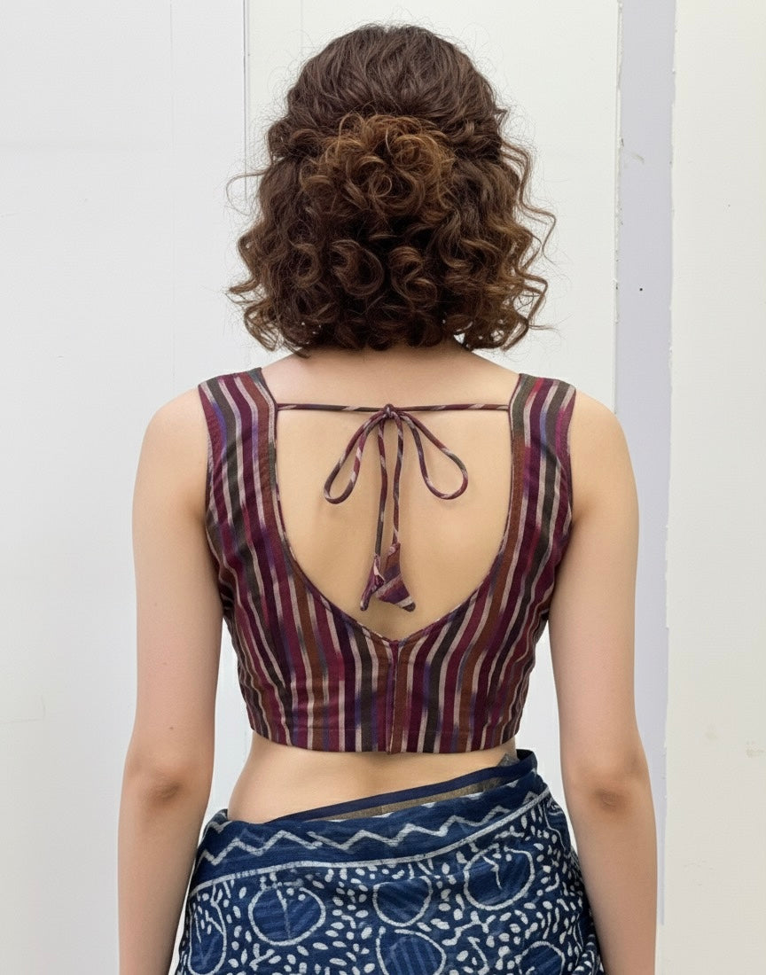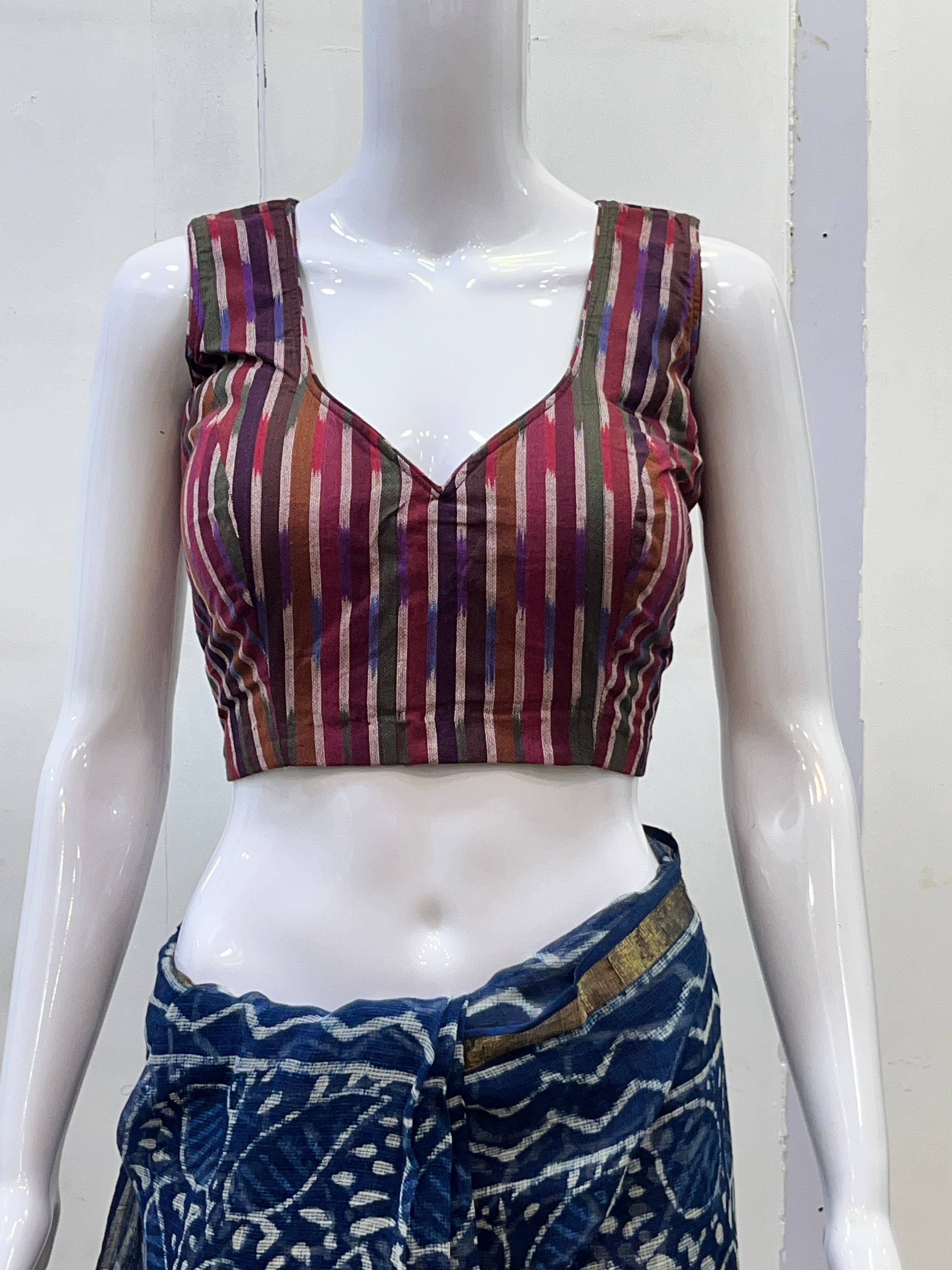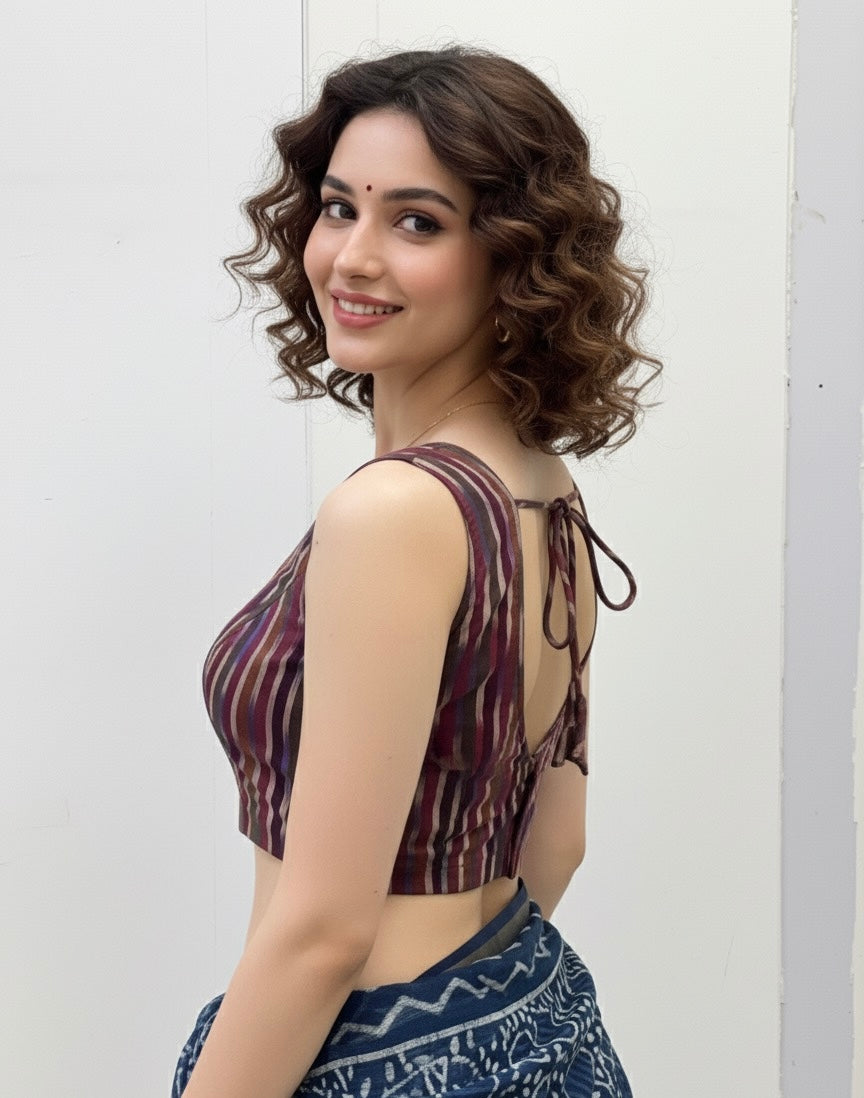 Each piece is adorned with traditional Ikkat weave, meticulously hand-made by skilled artisans, celebrating the heritage of Andhra’s centuries-old textile art. Whether paired with a saree, skirt, or jeans, these blouses bring a touch of artisanal charm to your everyday wardrobe.