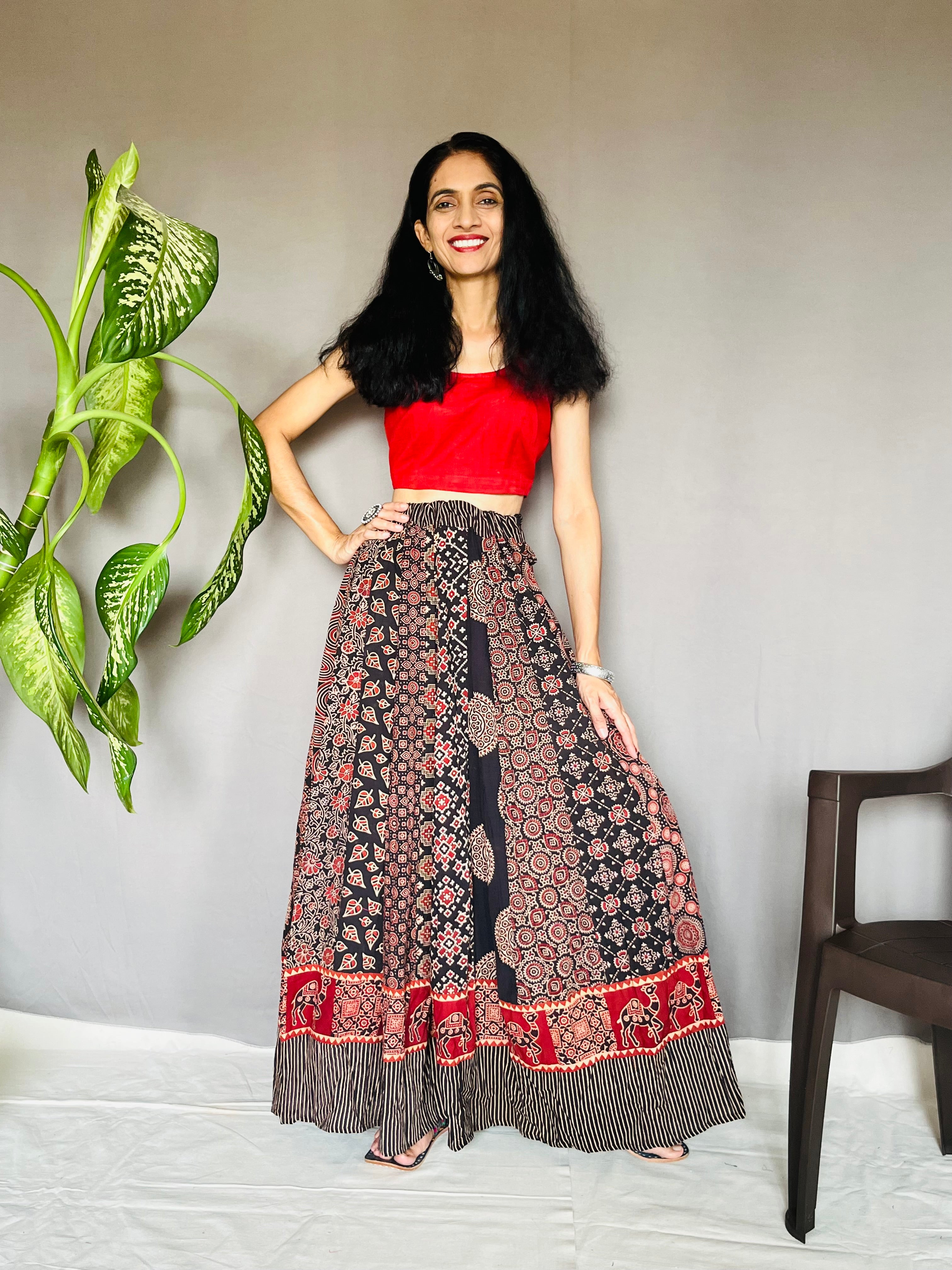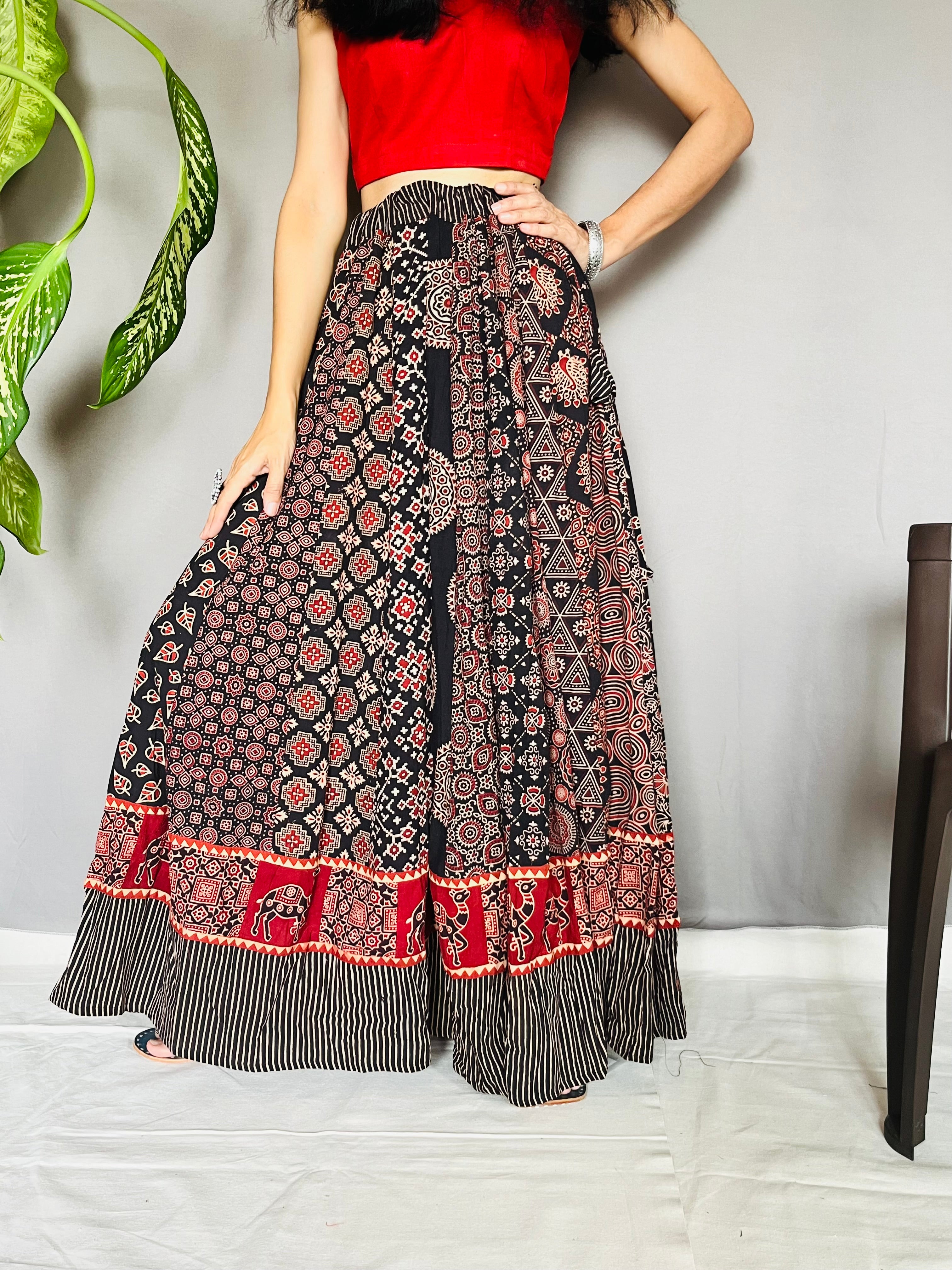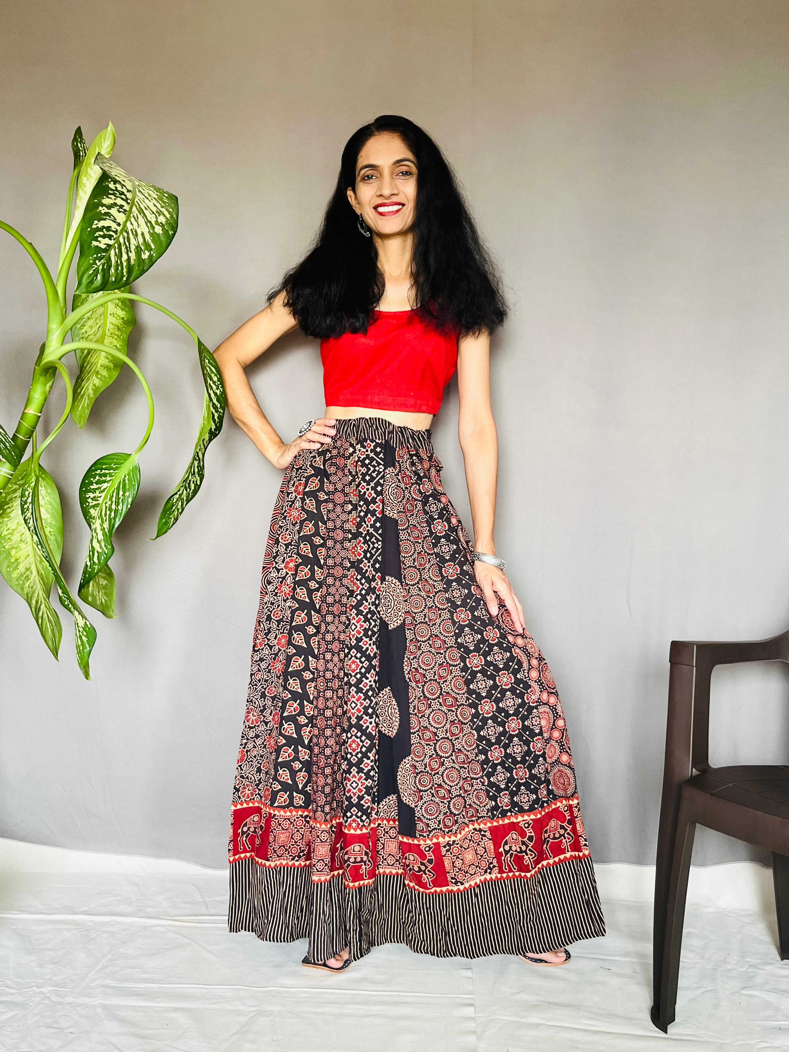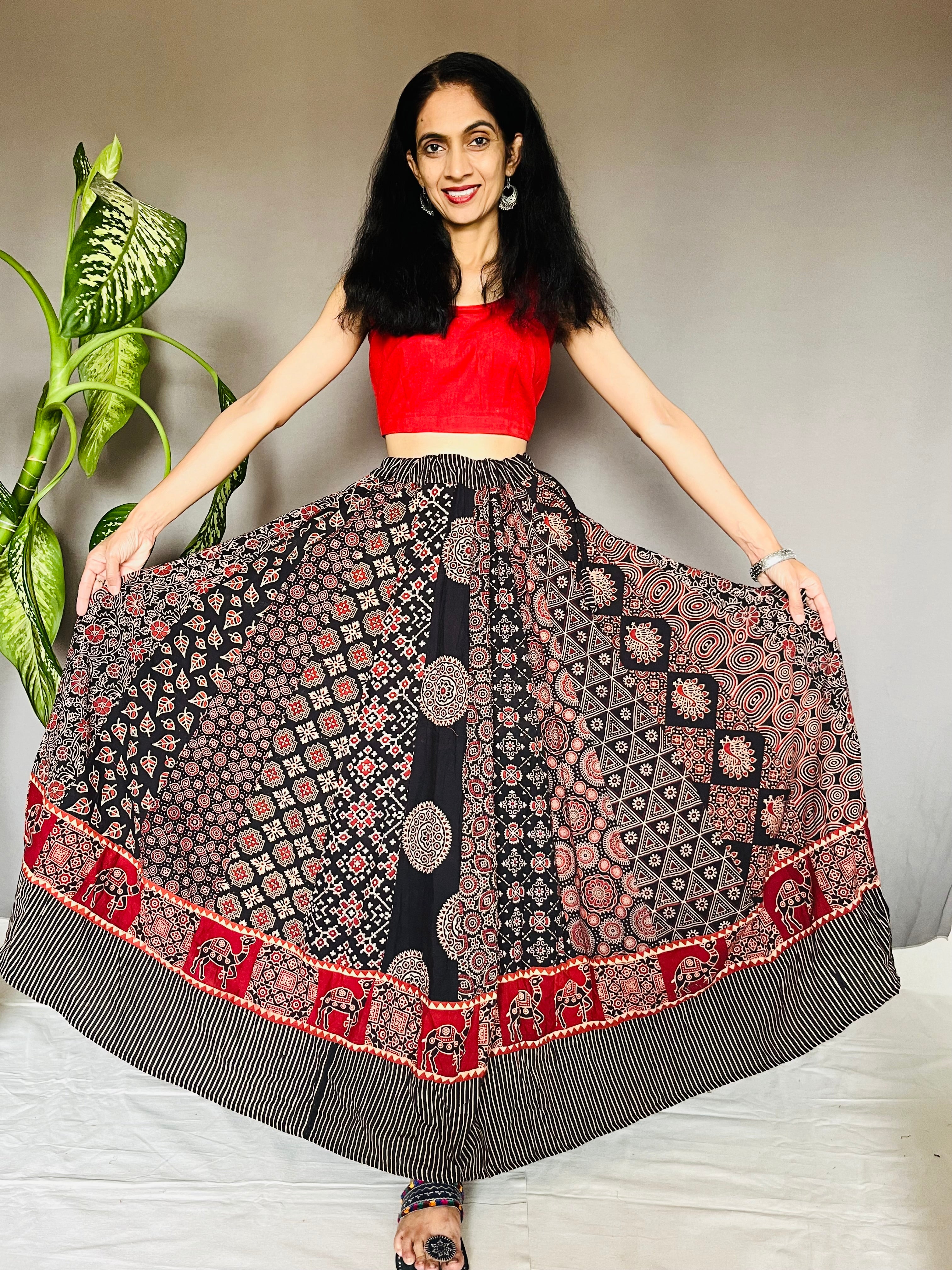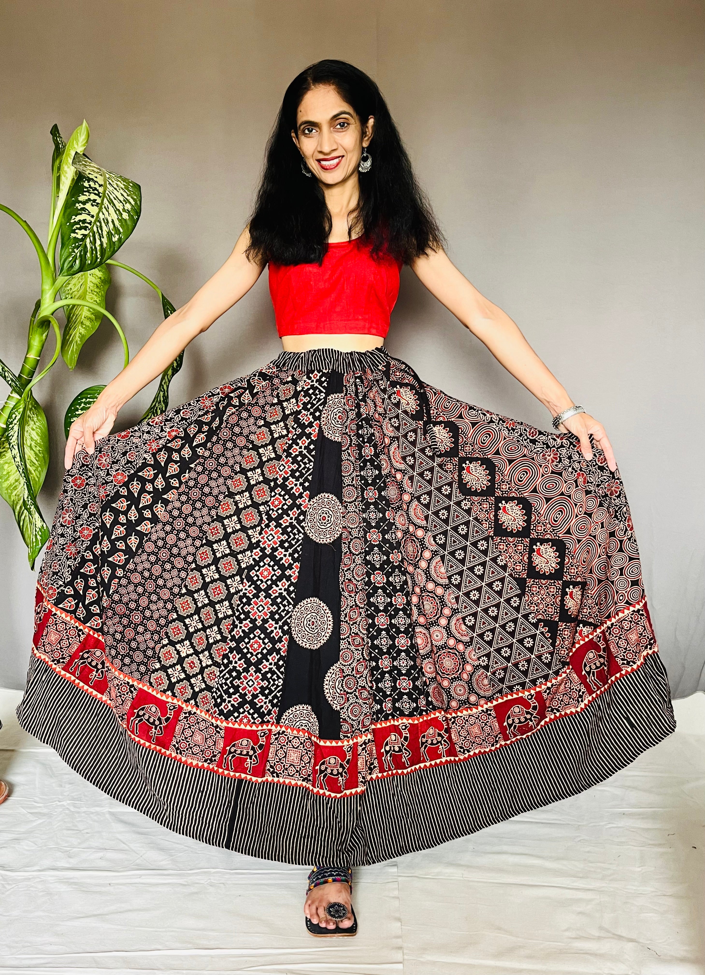 With vibrant prints like Ajrakh, Bandhani, Kalamkari, Indigo-dyed, and Bagru, these skirts are designed in graceful Anarkali-inspired patterns that add drama, volume, and fluidity to your every move. Whether you’re dressing up for a festive occasion, a cultural celebration, or looking to add a statement piece to your everyday wardrobe, these skirts offer comfort, style, and cultural richness all in one.
