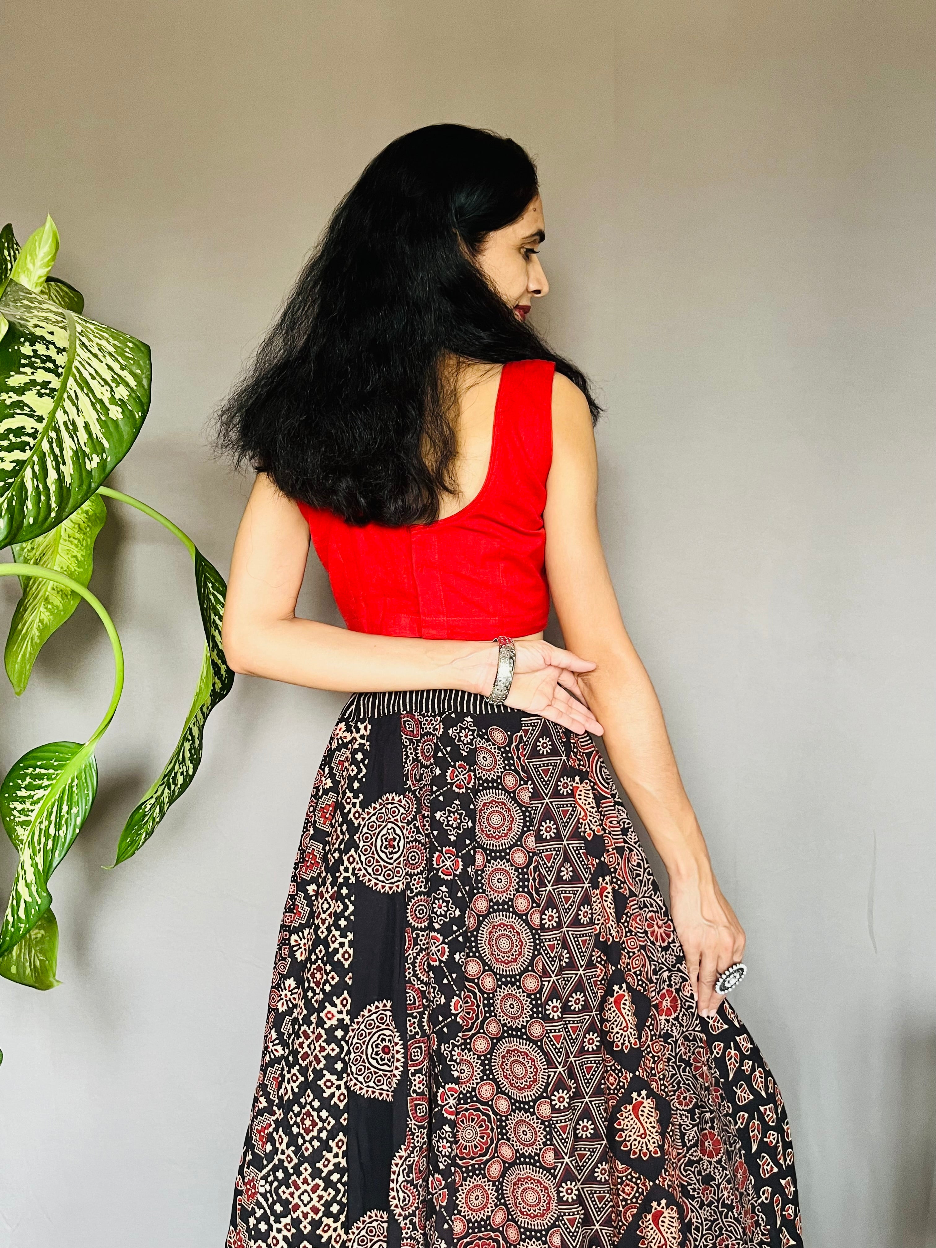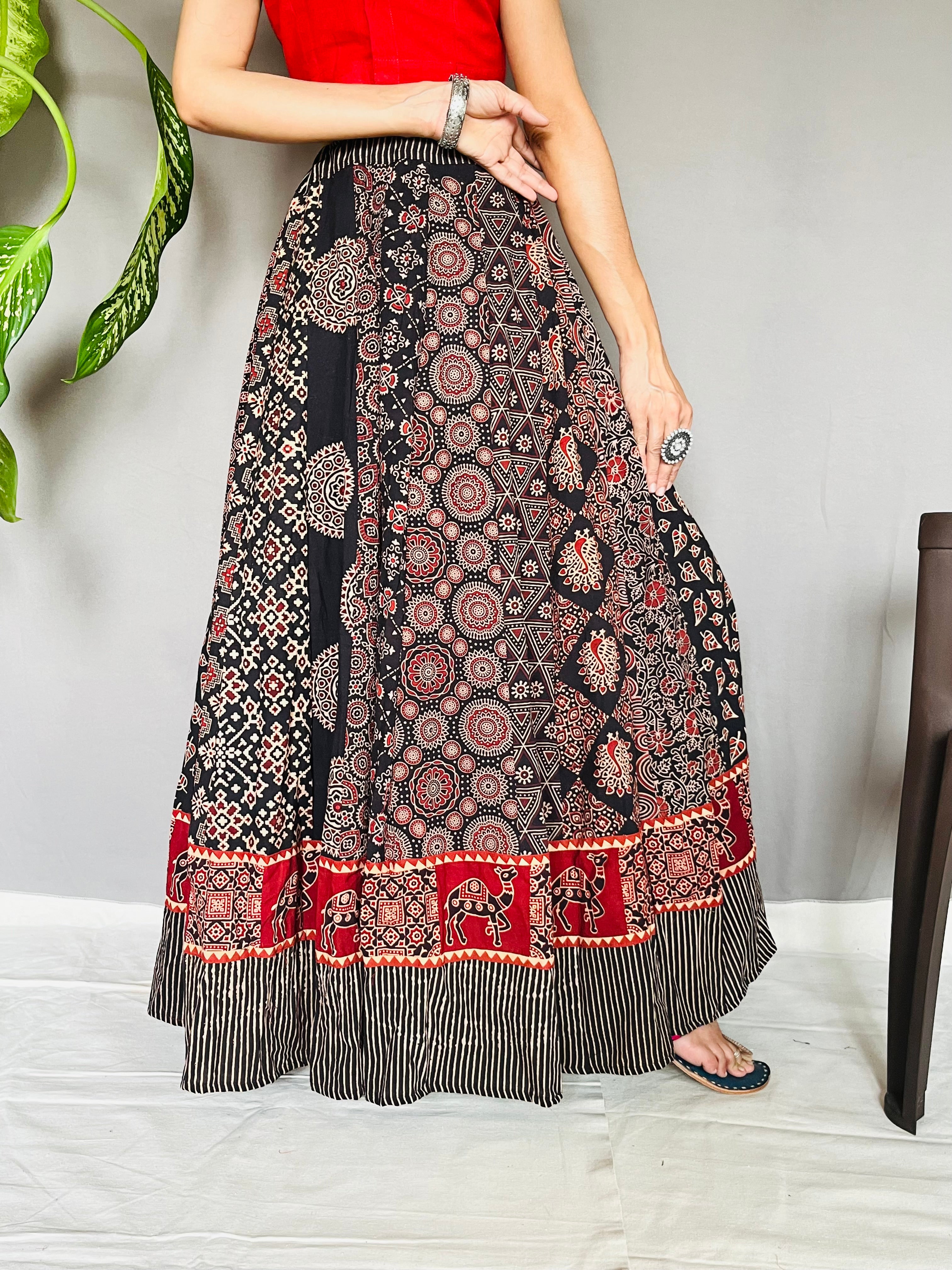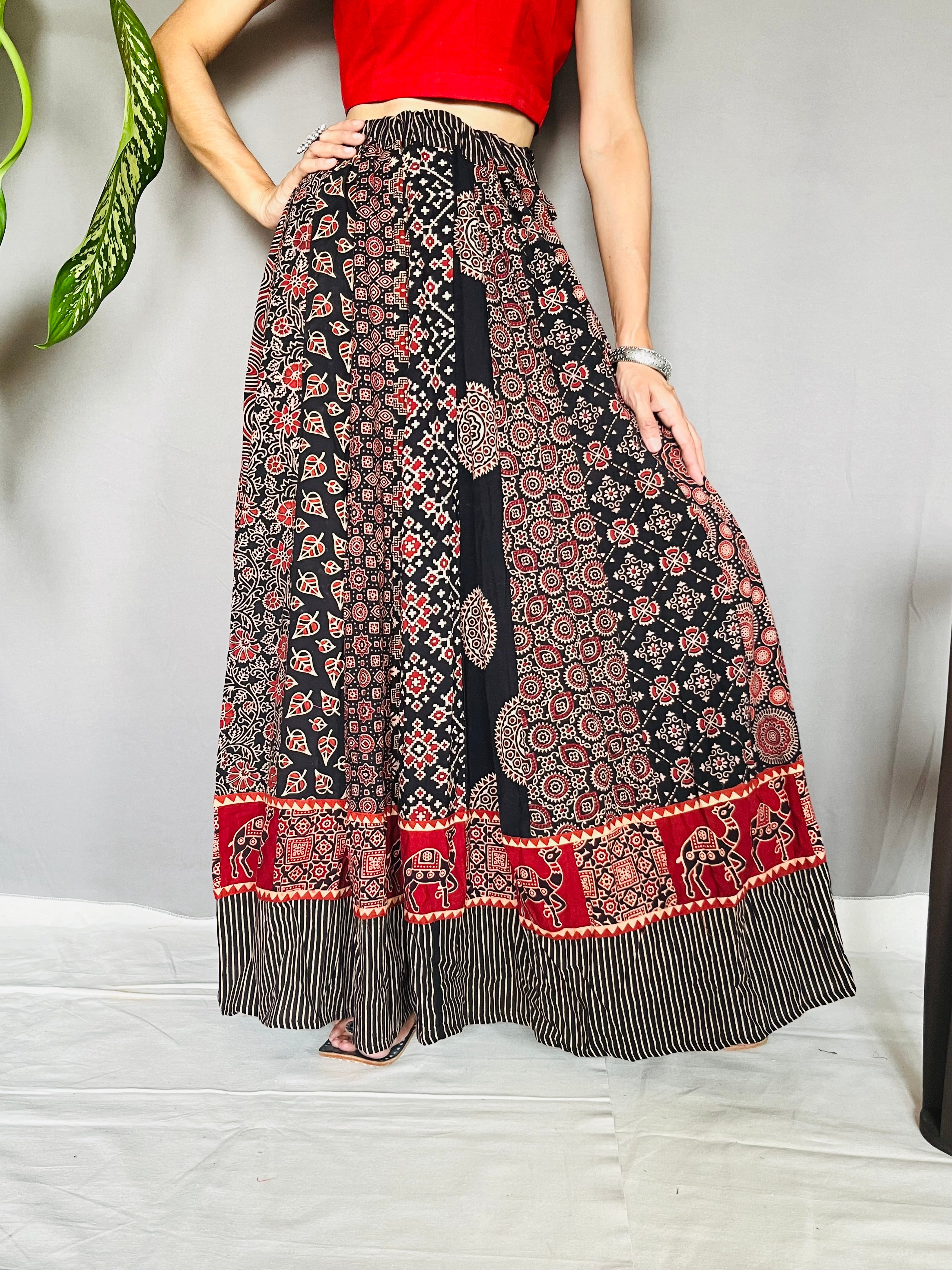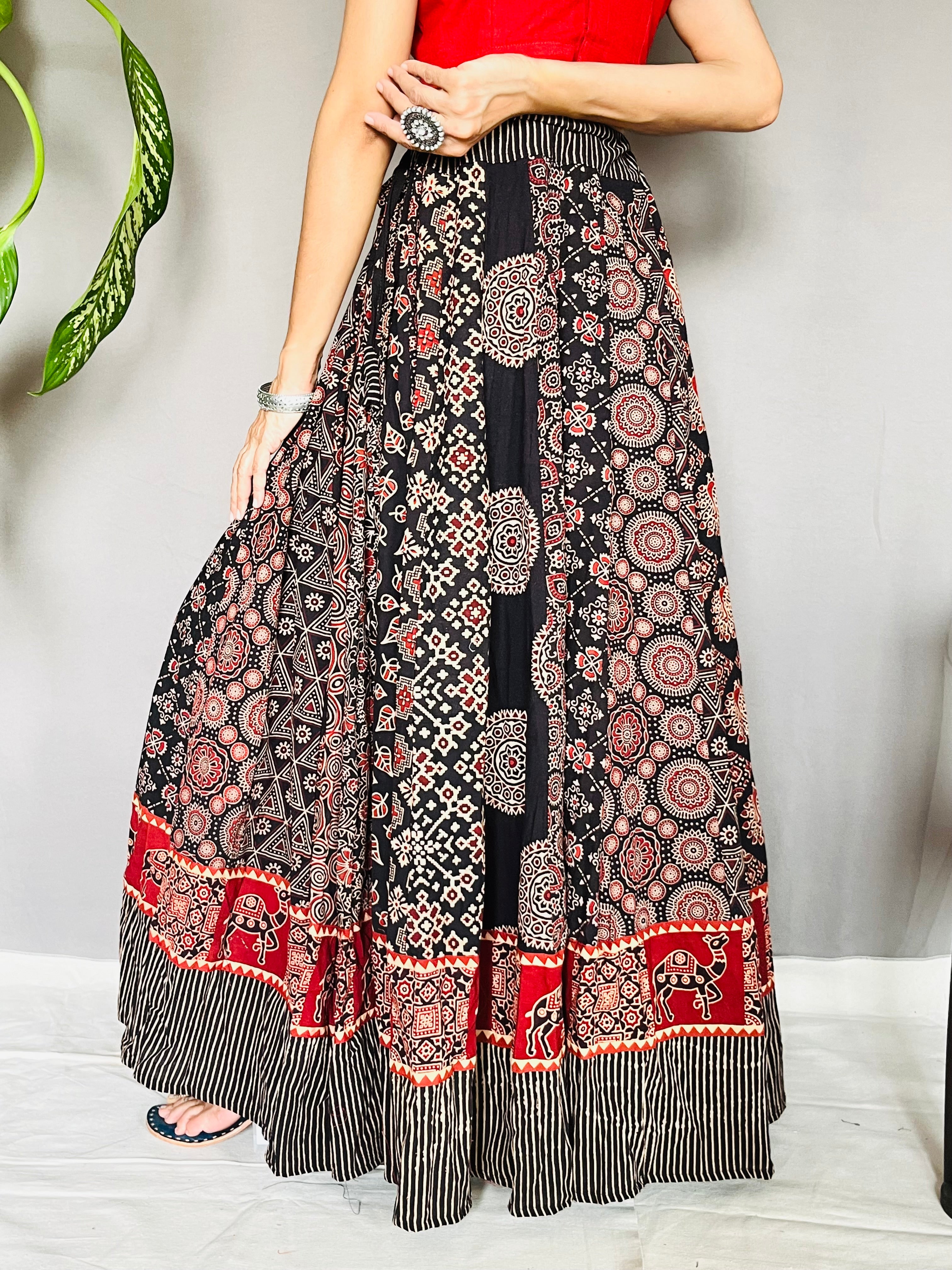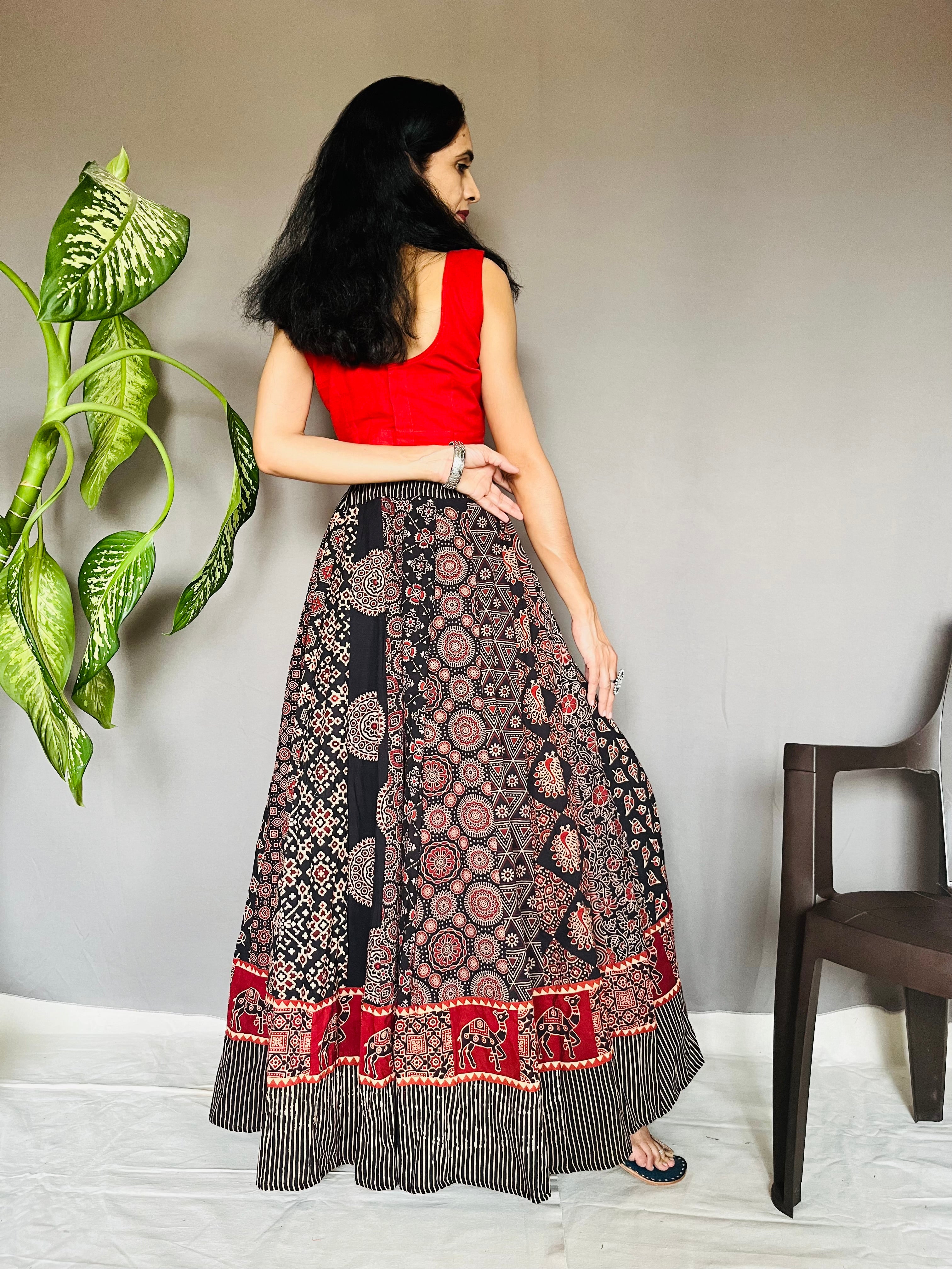 With vibrant prints like Ajrakh, Bandhani, Kalamkari, Indigo-dyed, and Bagru, these skirts are designed in graceful Anarkali-inspired patterns that add drama, volume, and fluidity to your every move. Whether you’re dressing up for a festive occasion, a cultural celebration, or looking to add a statement piece to your everyday wardrobe, these skirts offer comfort, style, and cultural richness all in one.