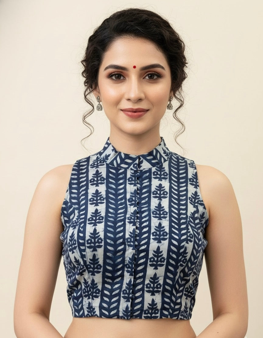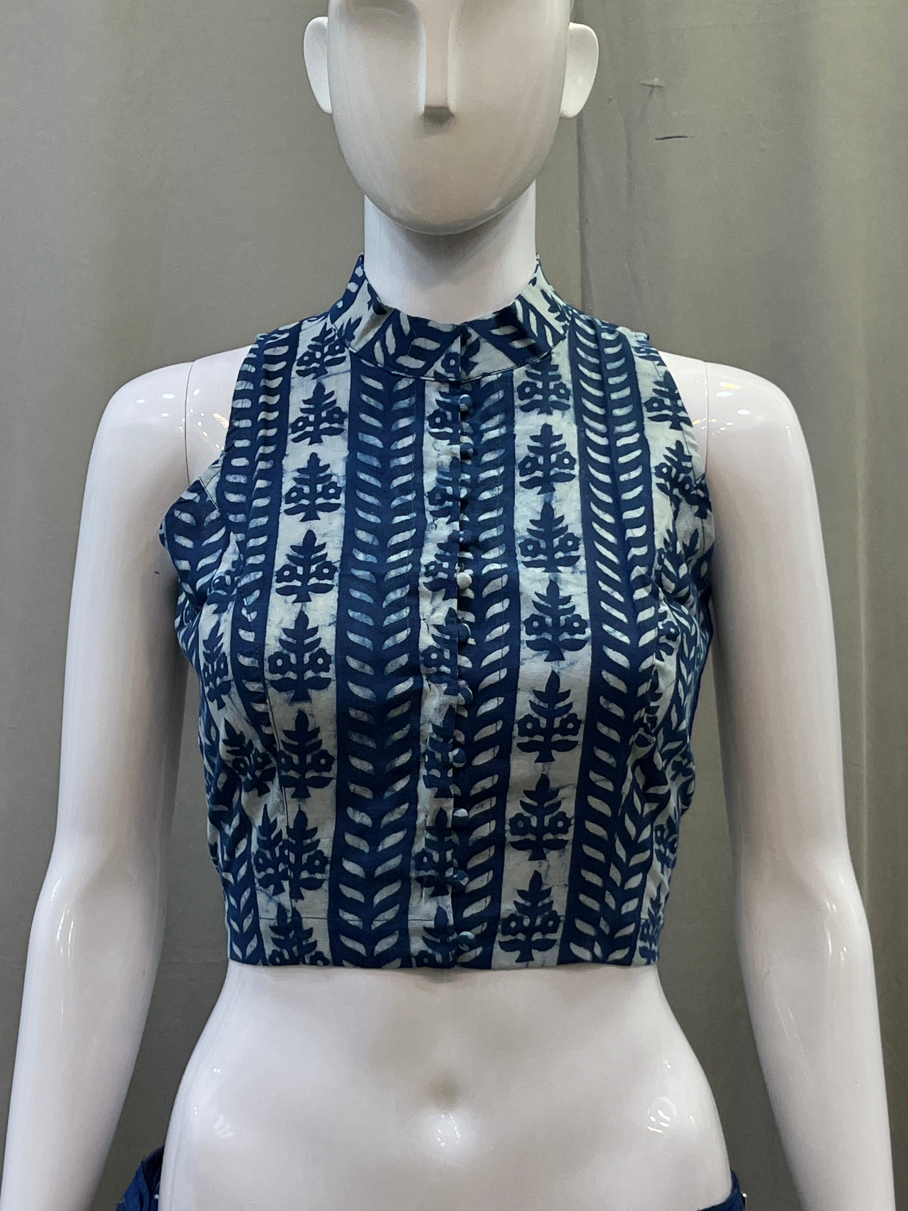 Each piece is adorned with traditional Hand Block prints, meticulously hand-blocked by skilled artisans, celebrating the heritage of Rajasthan's centuries-old textile art. Whether paired with a saree, skirt, or jeans, these blouses bring a touch of artisanal charm to your everyday wardrobe.