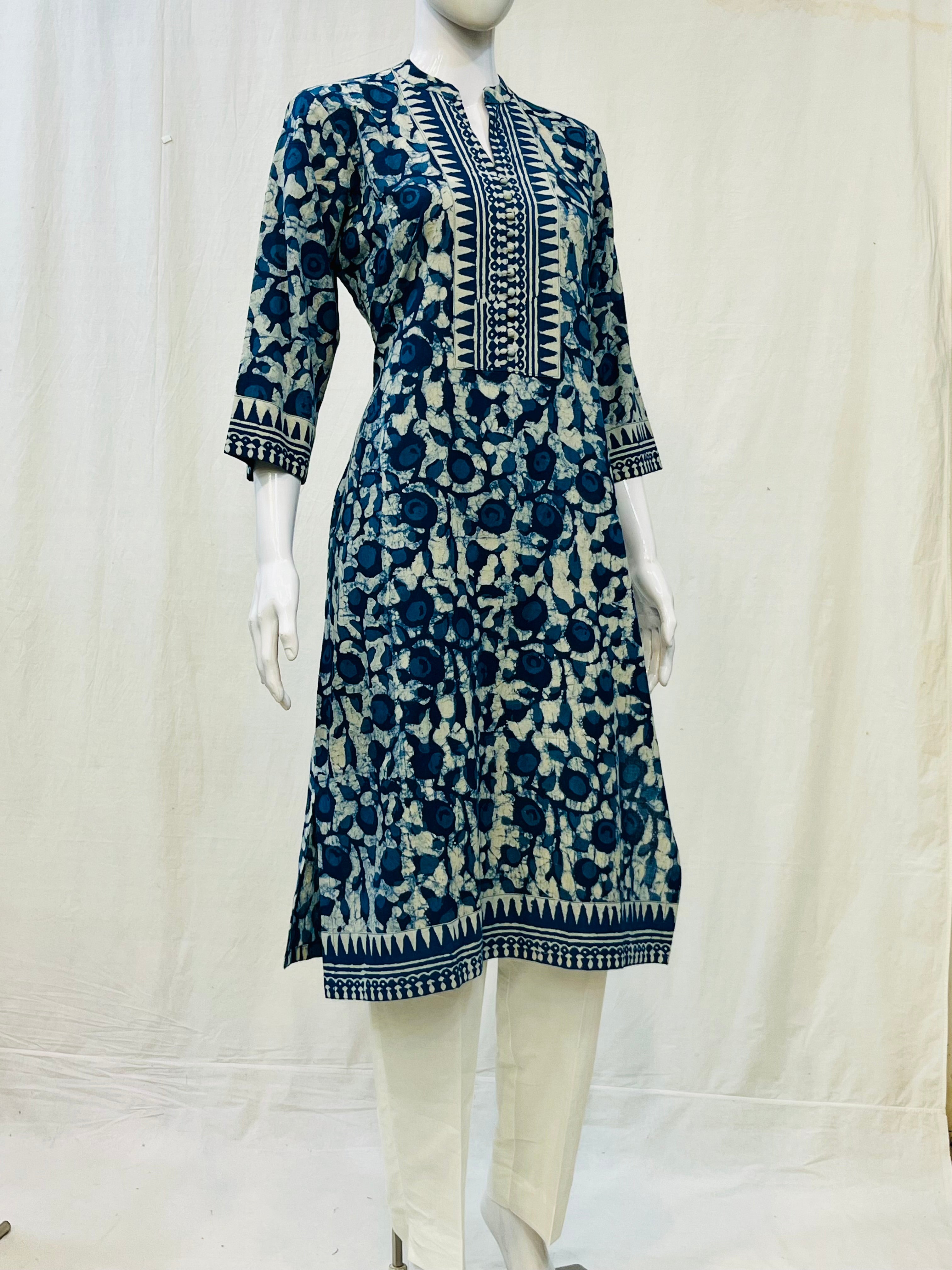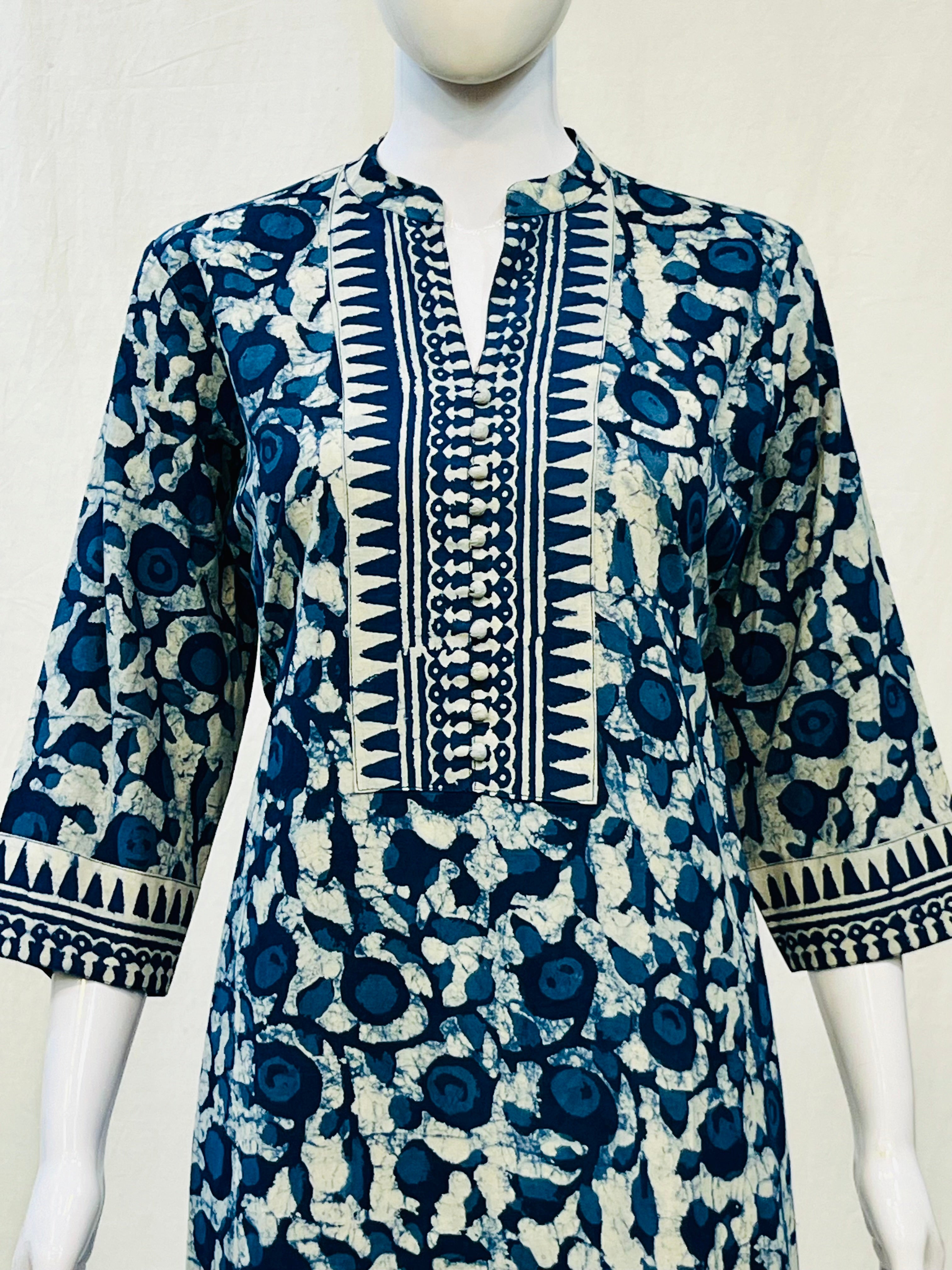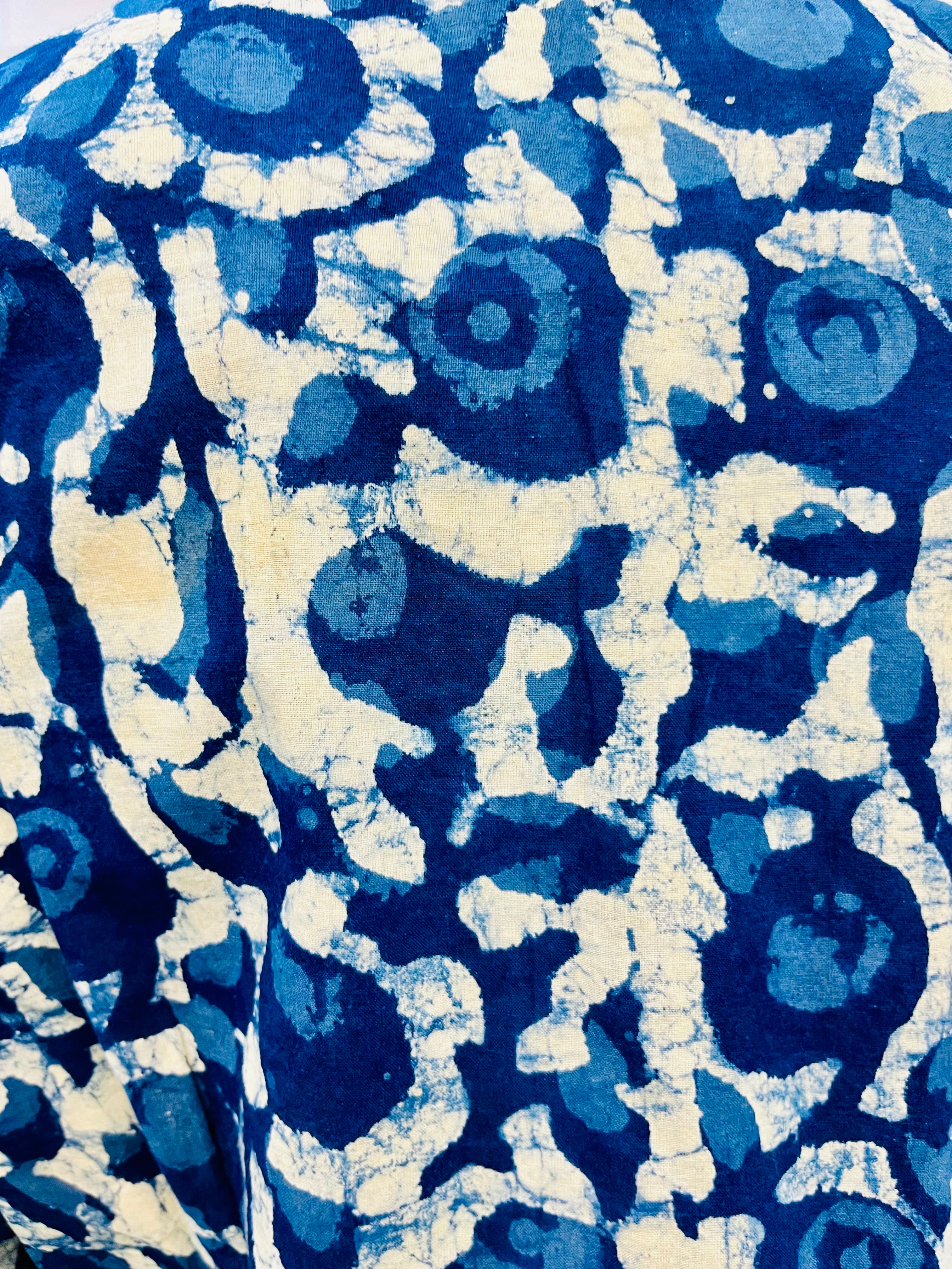 In the artful process of hand block-printing and stitching, variations are likely to come into existence. These irregularities are the hallmark of all handmade products and give each style a unique identity.Colours tend to be perceived differently depending on factors such as shot angles, lighting, background tones and colour temperatures. As a result, prints and colours may vary. Nevertheless, we strive to match the tones as close to the original product colours as possible.