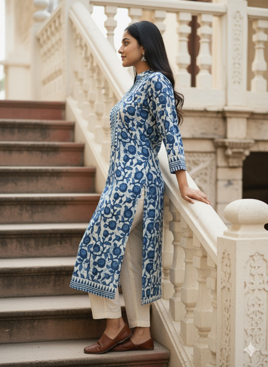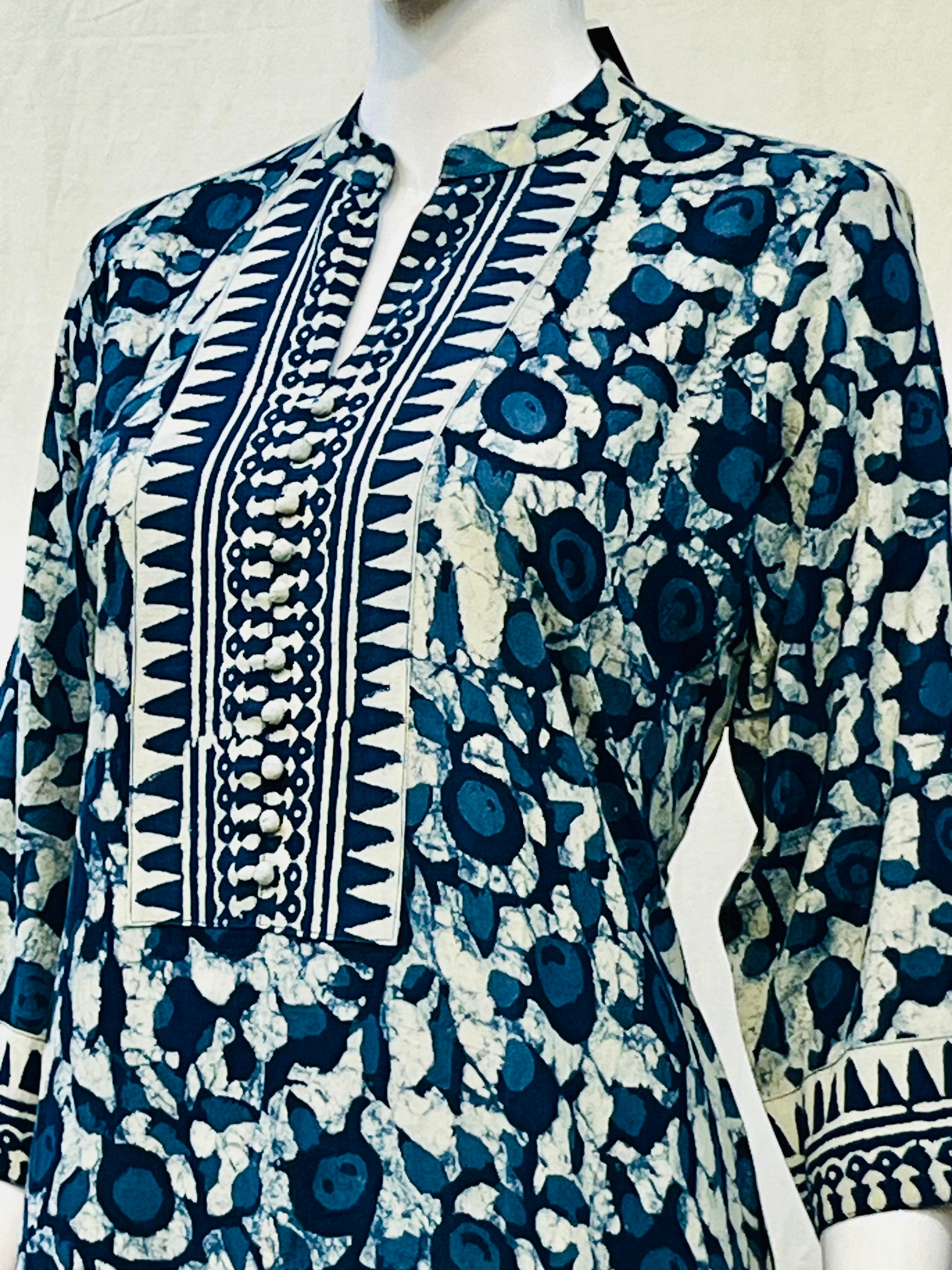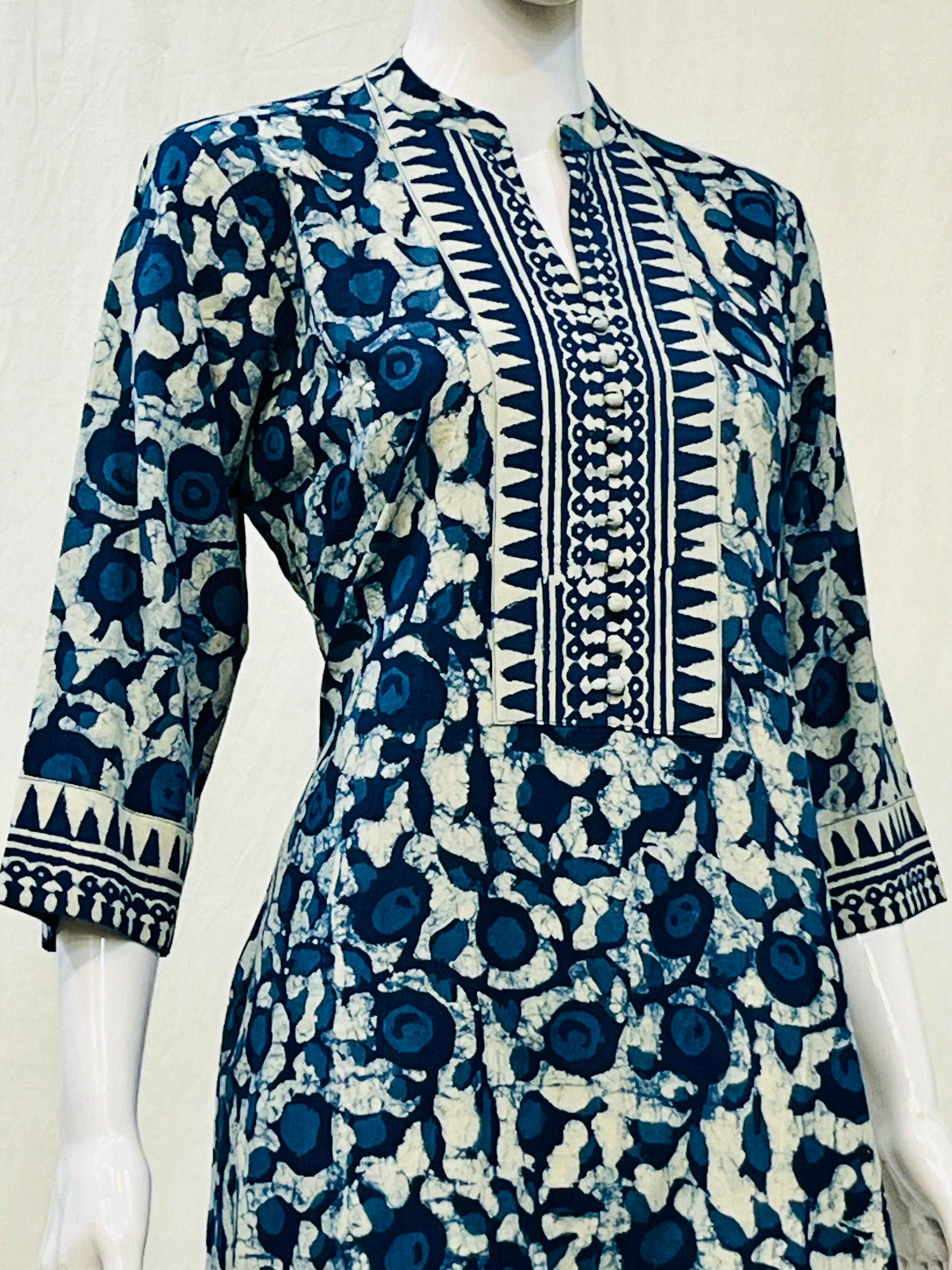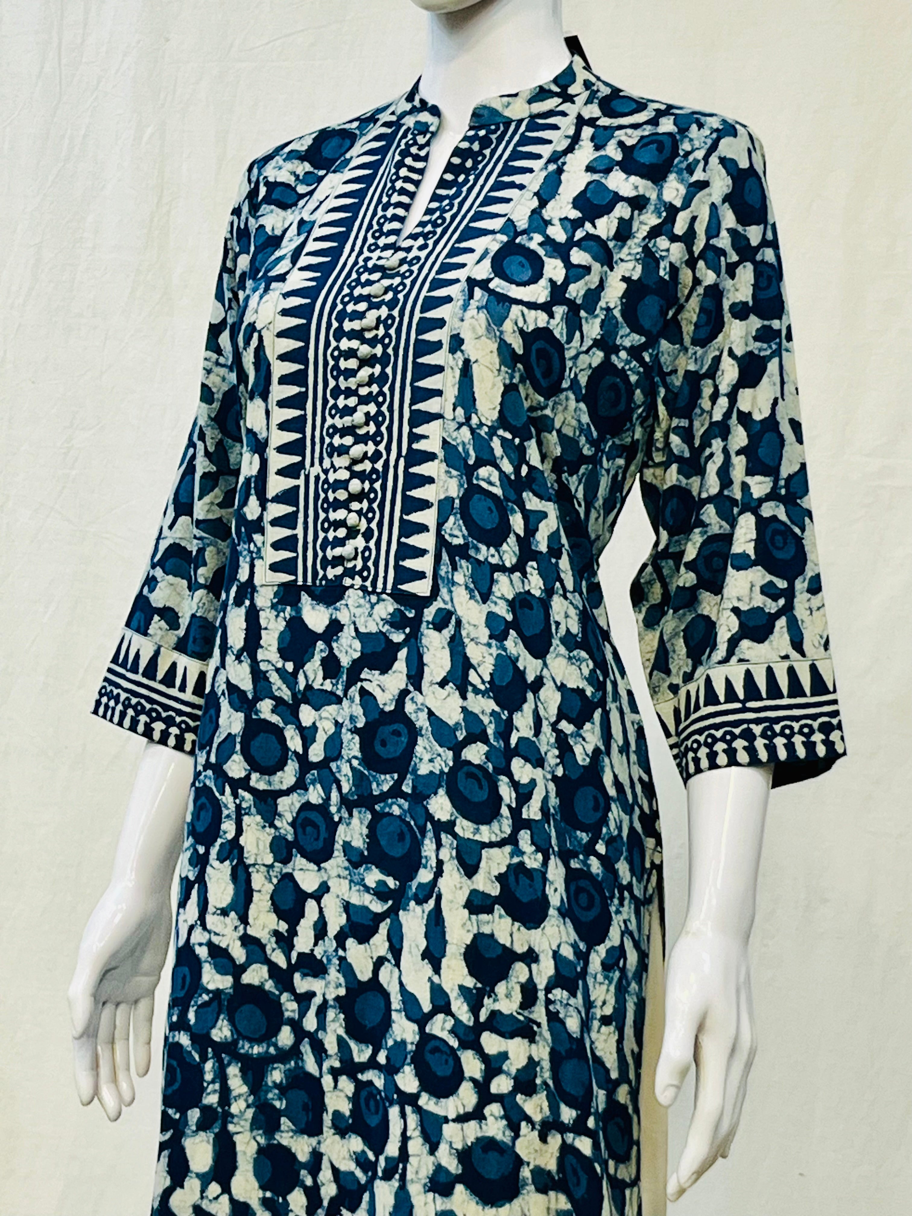 In the artful process of hand block-printing and stitching, variations are likely to come into existence. These irregularities are the hallmark of all handmade products and give each style a unique identity.Colours tend to be perceived differently depending on factors such as shot angles, lighting, background tones and colour temperatures. As a result, prints and colours may vary. Nevertheless, we strive to match the tones as close to the original product colours as possible.