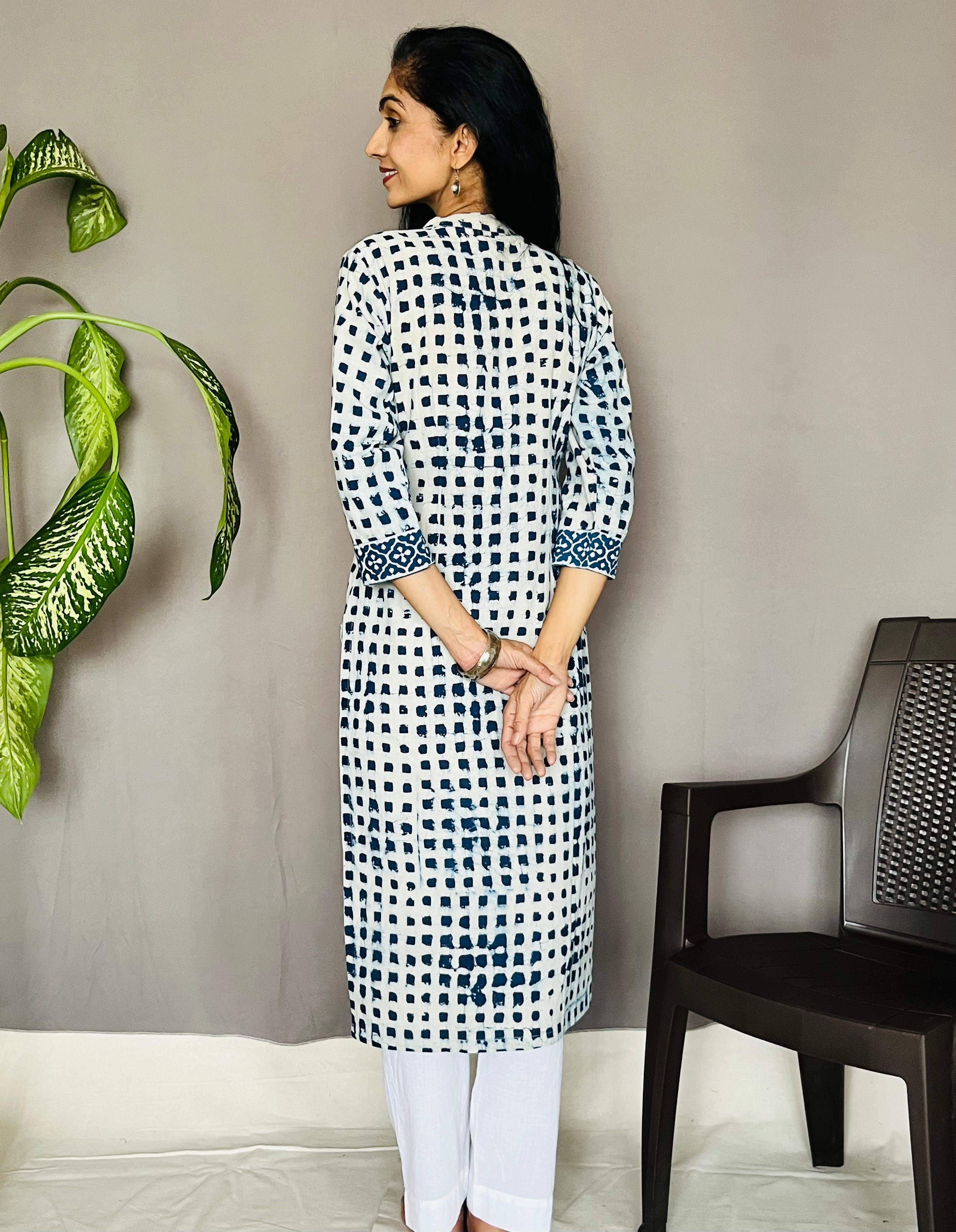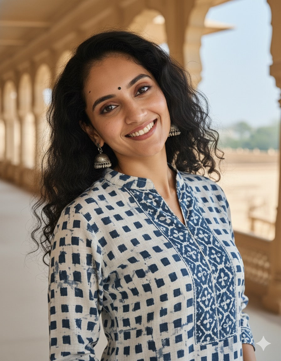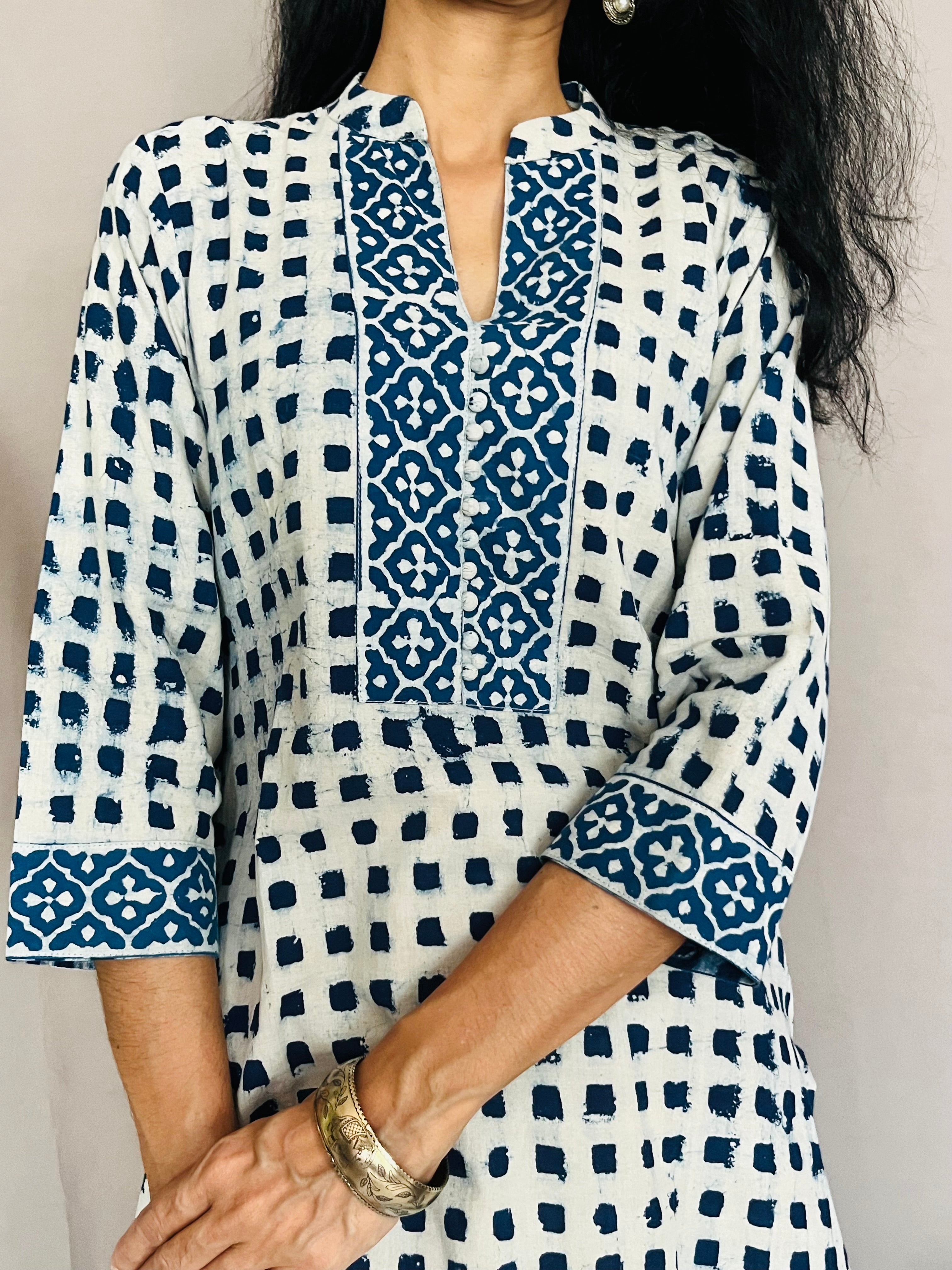 In the artful process of hand block-printing and stitching, variations are likely to come into existence. These irregularities are the hallmark of all handmade products and give each style a unique identity.Colours tend to be perceived differently depending on factors such as shot angles, lighting, background tones and colour temperatures. As a result, prints and colours may vary. Nevertheless, we strive to match the tones as close to the original product colours as possible.