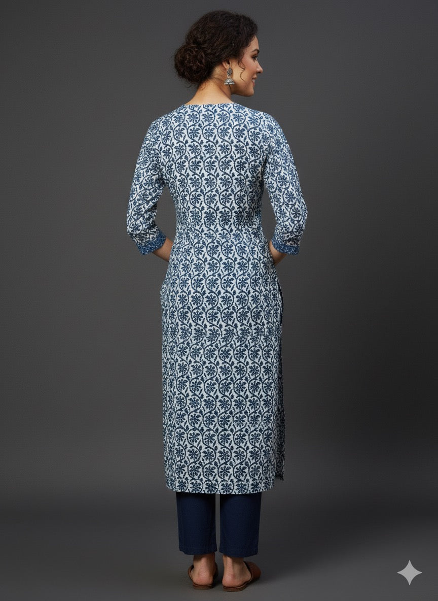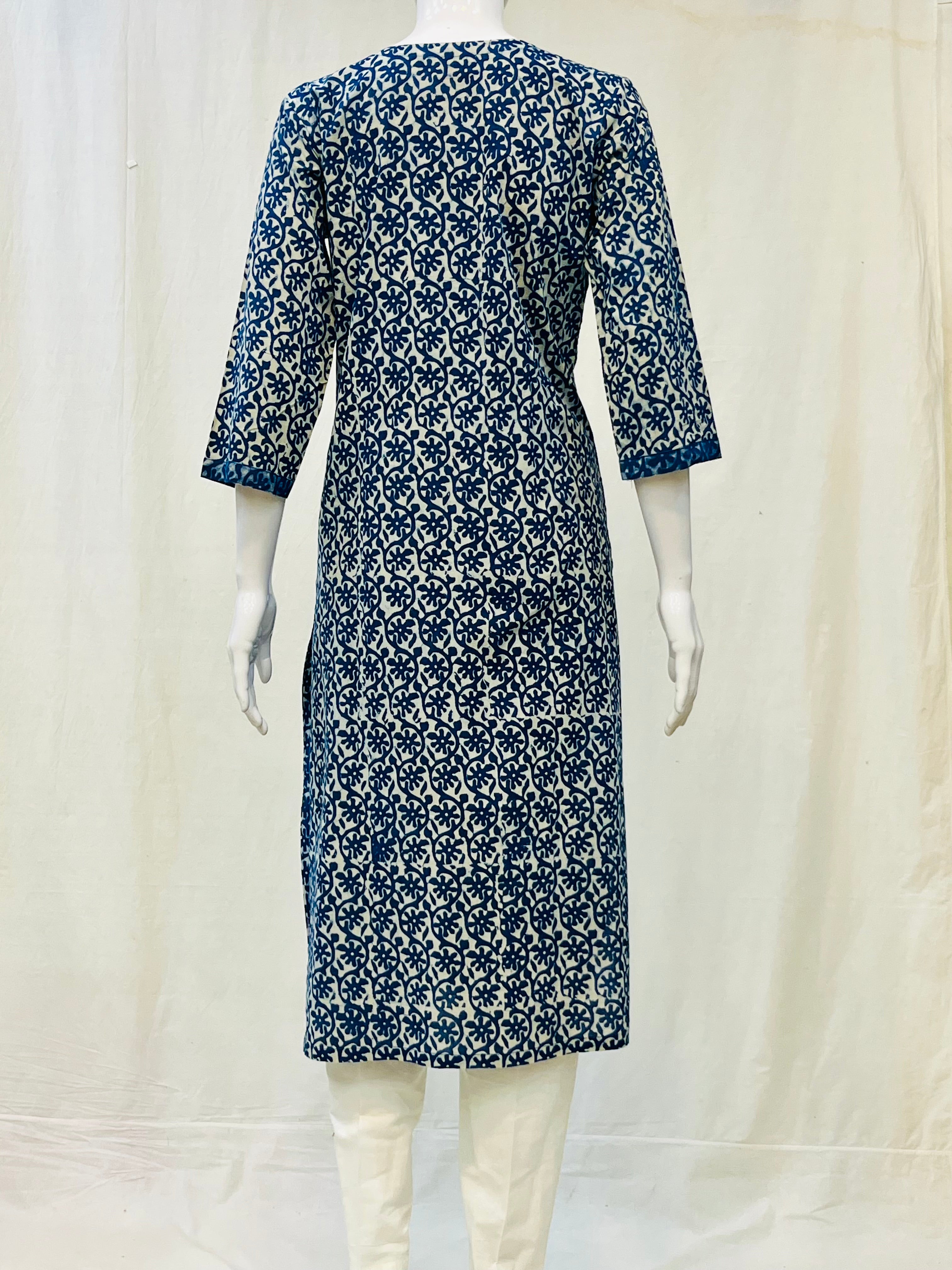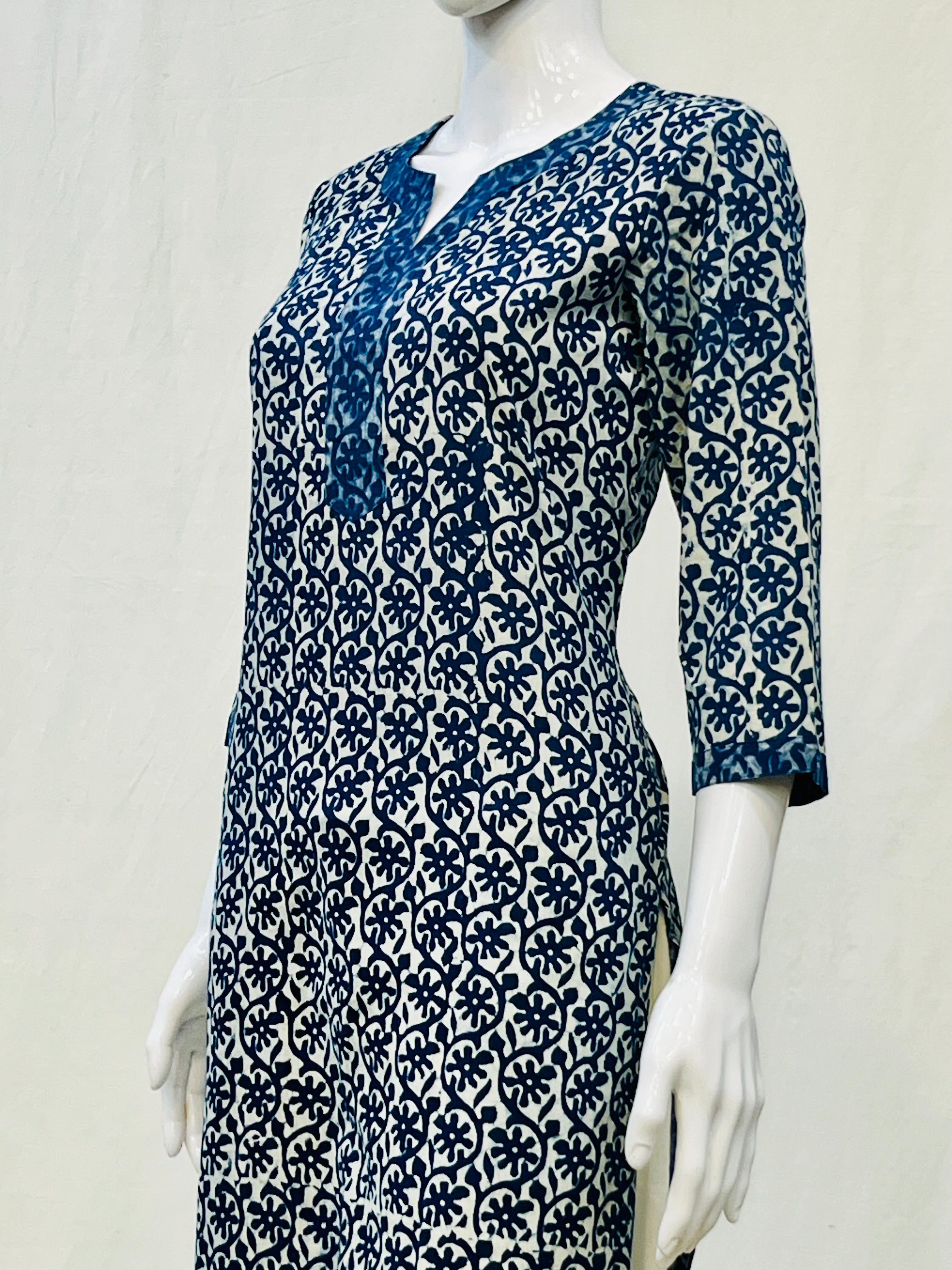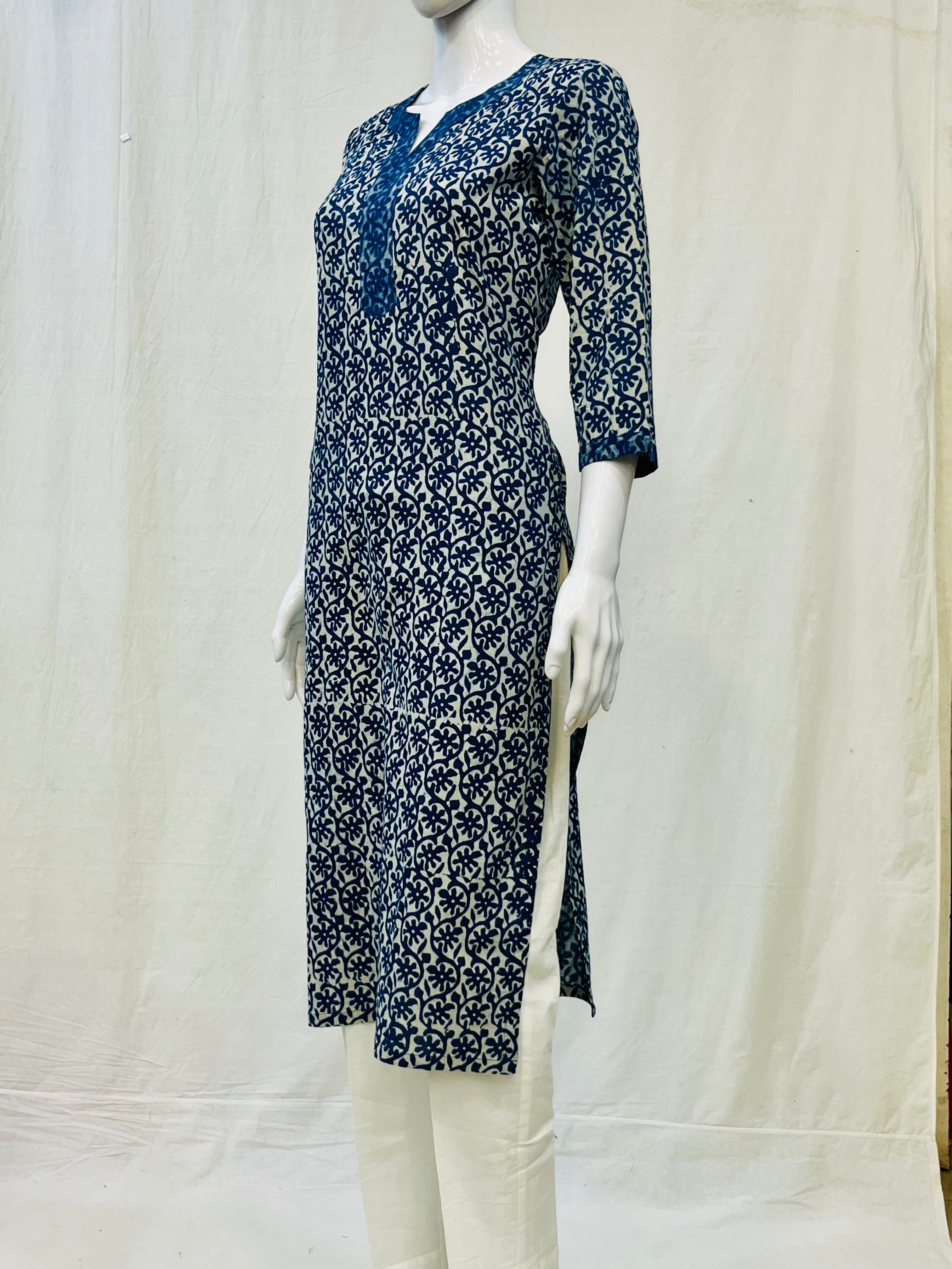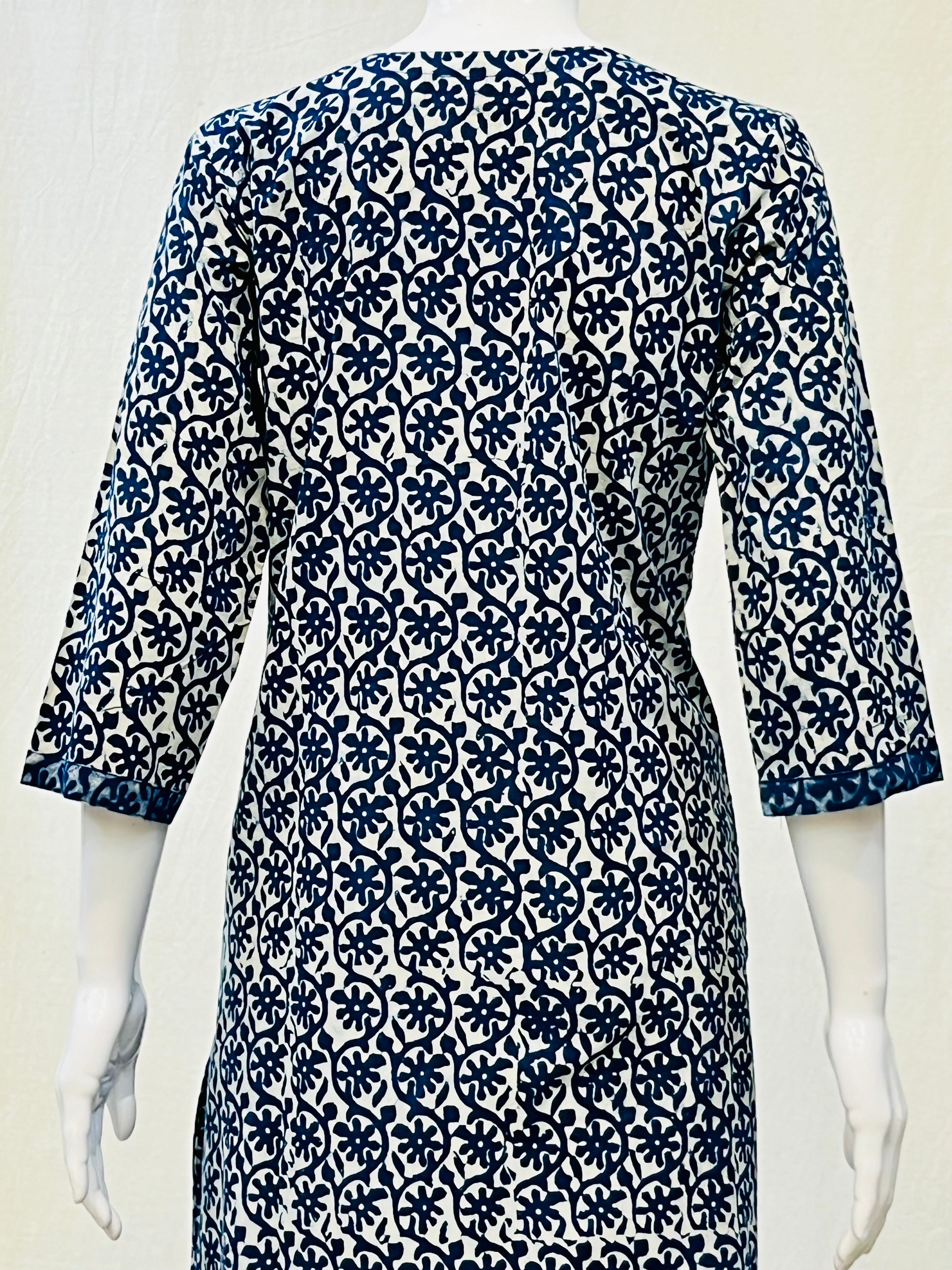 In the artful process of hand block-printing and stitching, variations are likely to come into existence. These irregularities are the hallmark of all handmade products and give each style a unique identity.Colours tend to be perceived differently depending on factors such as shot angles, lighting, background tones and colour temperatures. As a result, prints and colours may vary. Nevertheless, we strive to match the tones as close to the original product colours as possible.