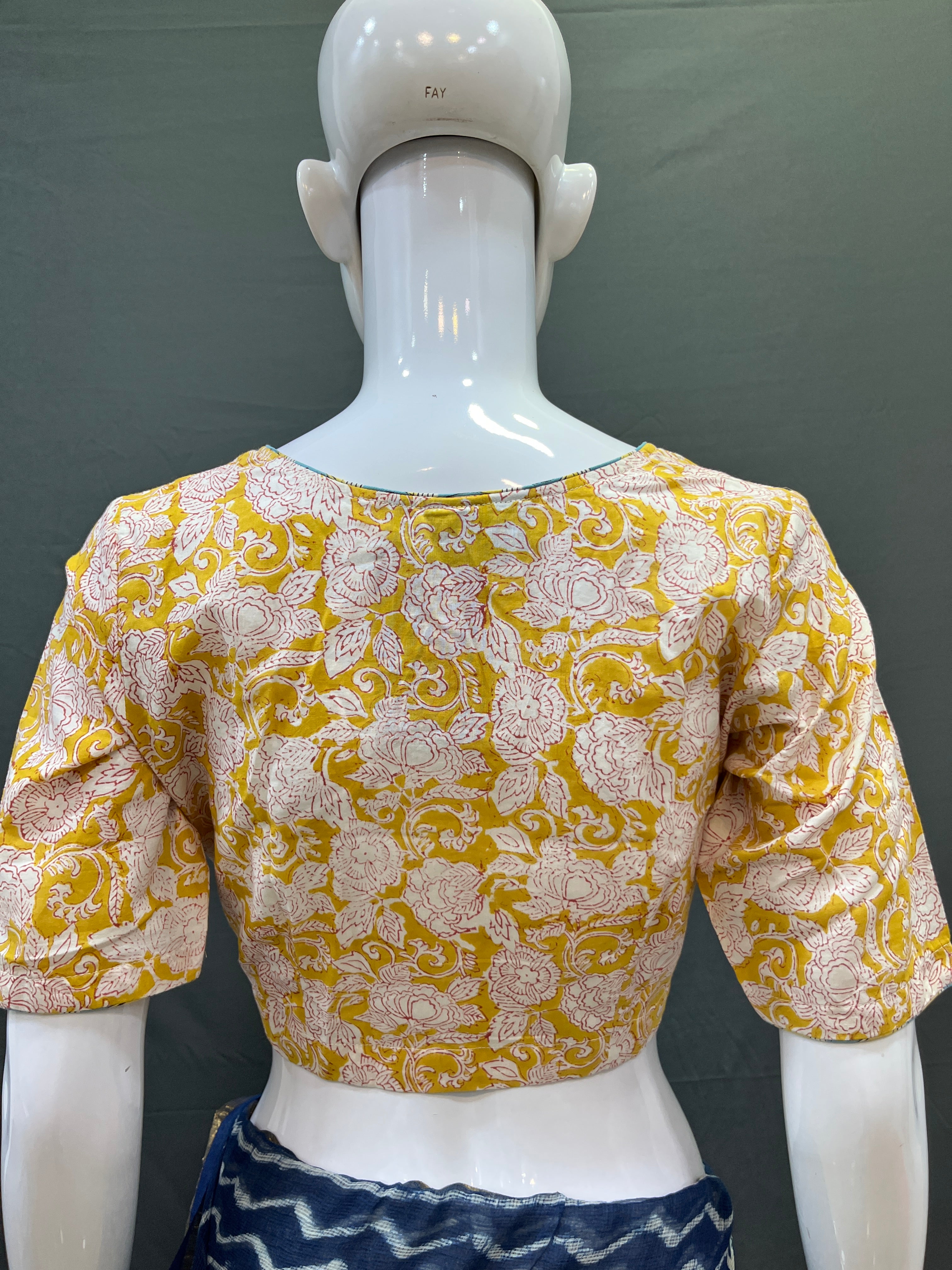 Each piece is adorned with traditional Hand Block prints, meticulously hand-blocked by skilled artisans, celebrating the heritage of Rajasthan's centuries-old textile art. Whether paired with a saree, skirt, or jeans, these blouses bring a touch of artisanal charm to your everyday wardrobe.