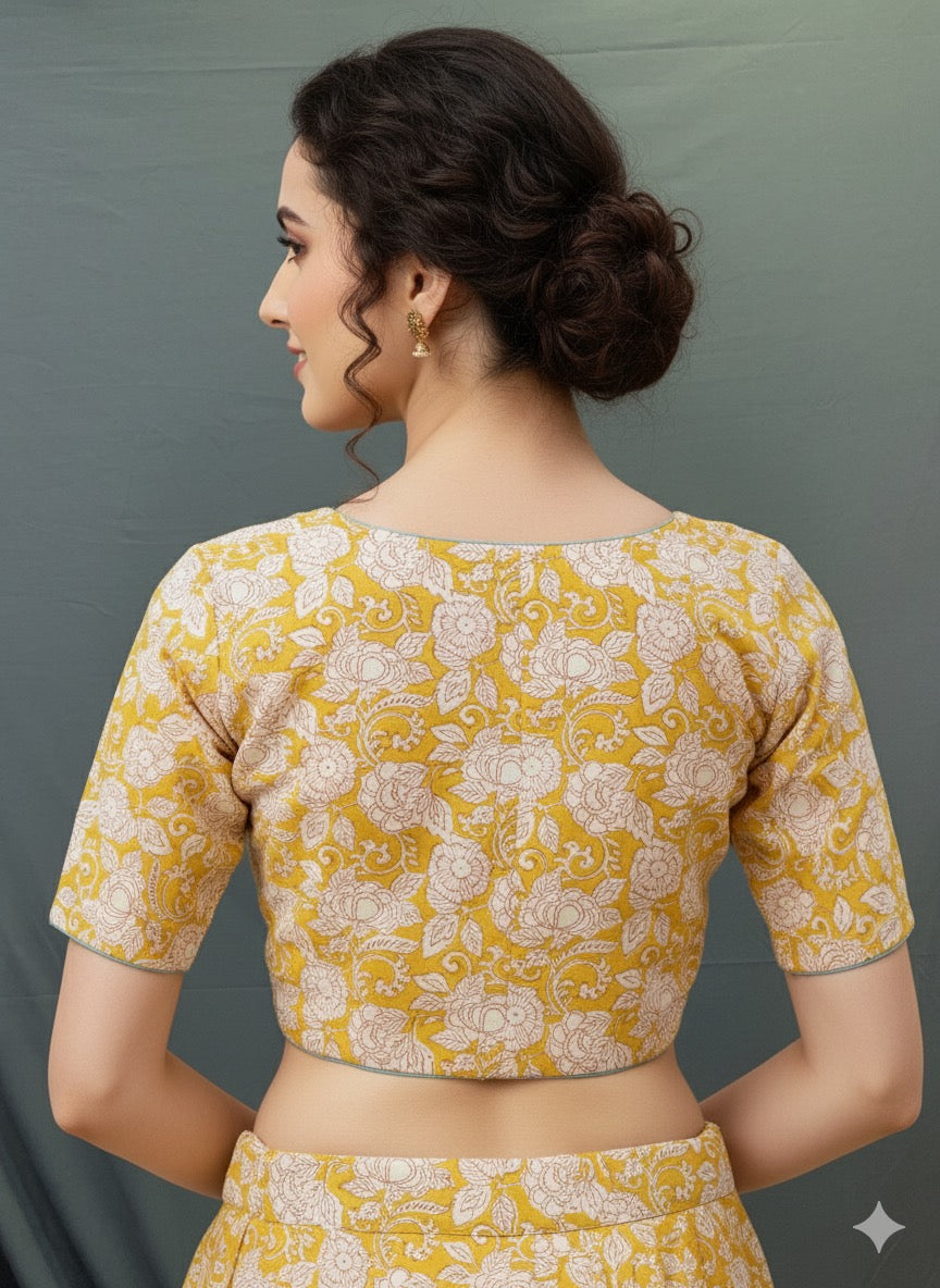 Experience timeless elegance with SomaRiya’s Kalamkari Hand block printed blouse. Made from 100% pure cotton fabric, these blouses are incredibly soft, lightweight, and exceptionally breathable — perfect for all-day comfort in any season.