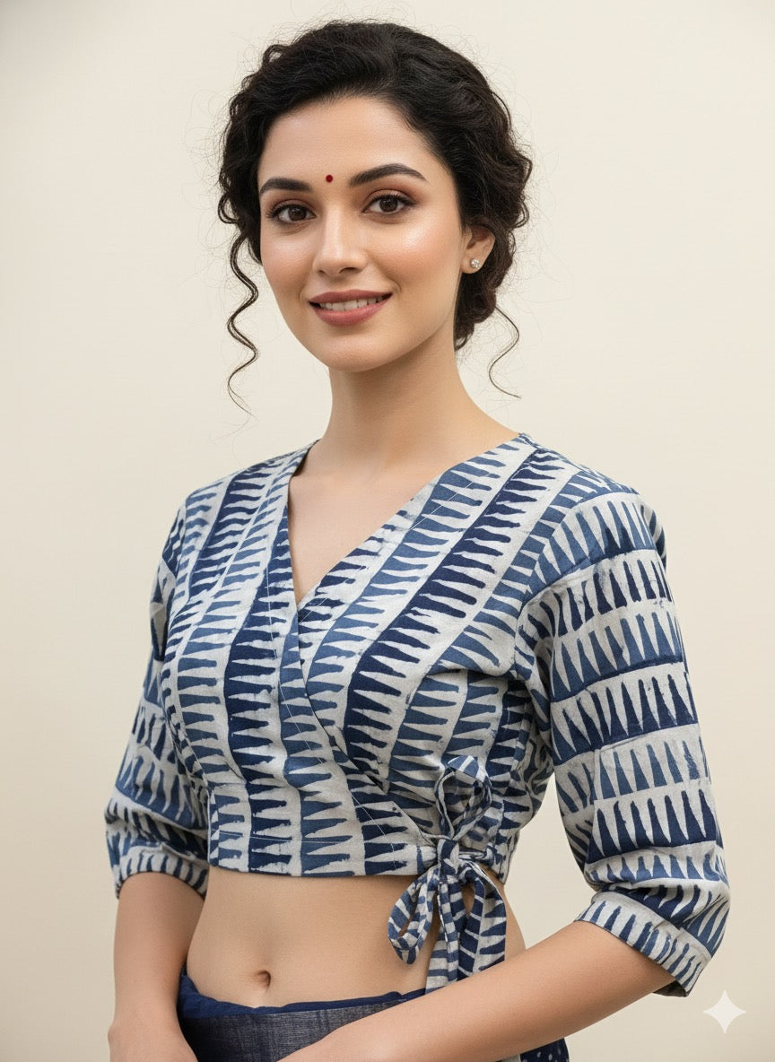 Each piece is adorned with traditional Hand Block prints, meticulously hand-blocked by skilled artisans, celebrating the heritage of Rajasthan's centuries-old textile art. Whether paired with a saree, skirt, or jeans, these blouses bring a touch of artisanal charm to your everyday wardrobe.