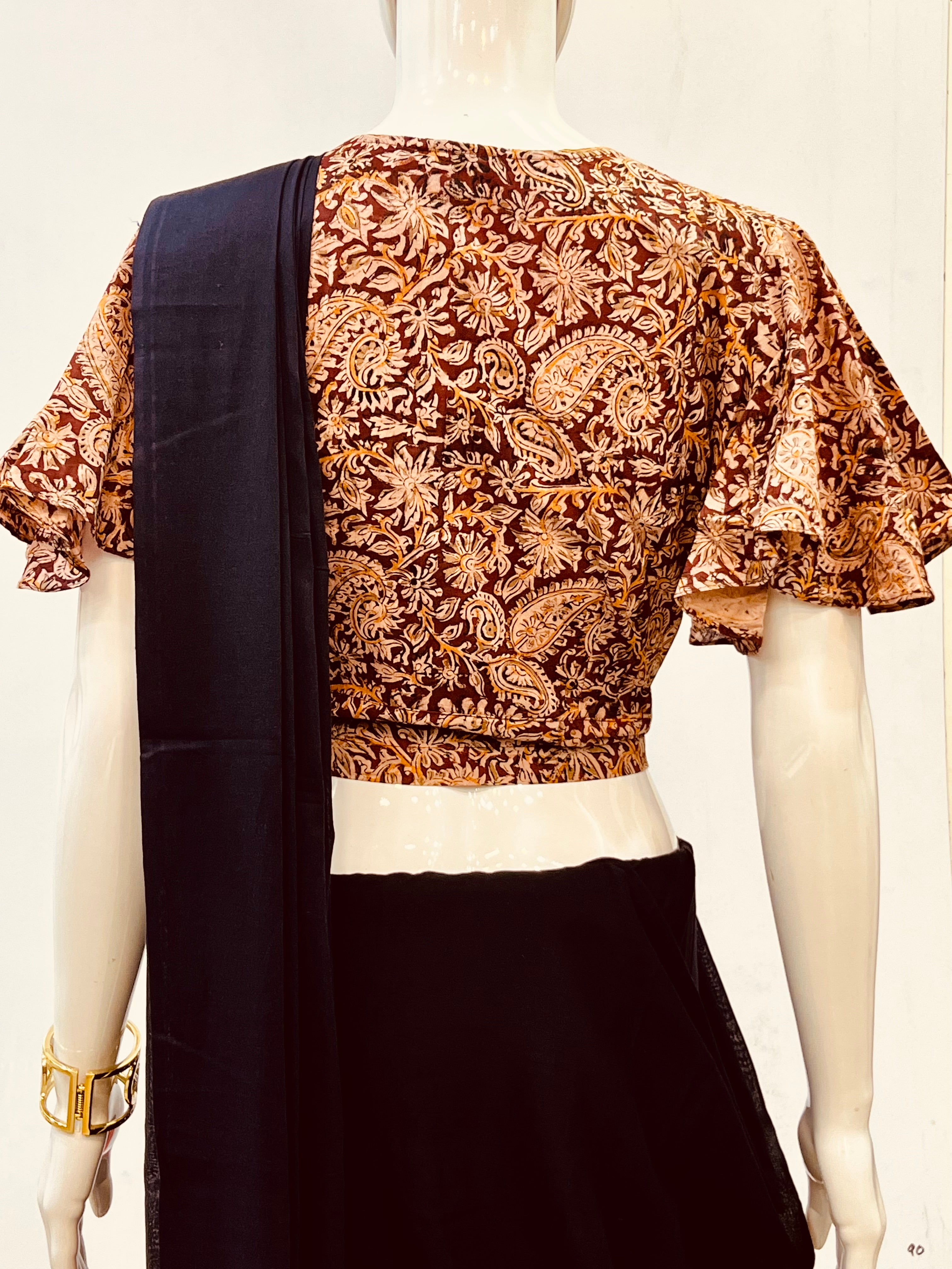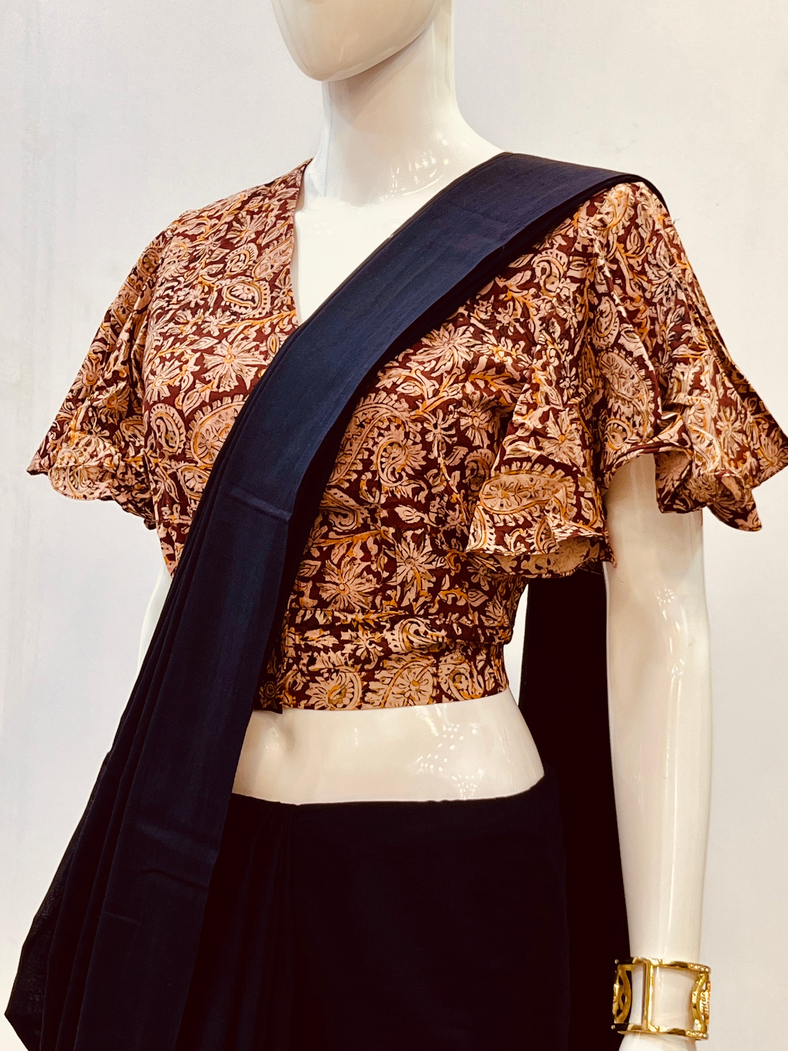 Kalamkari is a type of hand-painted or block-printed cotton textile, produced in parts of India and Iran.  Only natural dyes are used in kalamkari and it involves seventeen steps. One of the most popular natural fibres in the world, cotton is hailed for its beauty, comfort, durability and versatility. Cotton is naturally sustainable and its cultivation supports local farmers and communities. A low maintenance fabric, cotton is also hypoallergenic, making it the perfect choice around the year, especially for the Indian climate.