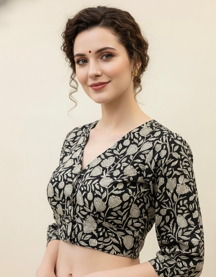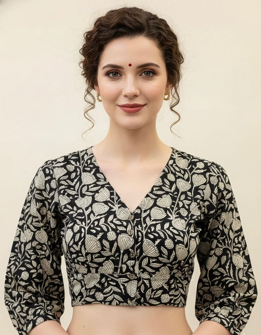 Each piece is adorned with traditional Hand Block prints, meticulously hand-blocked by skilled artisans, celebrating the heritage of centuries-old textile art. Whether paired with a saree, skirt, or jeans, these blouses bring a touch of artisanal charm to your everyday wardrobe.
