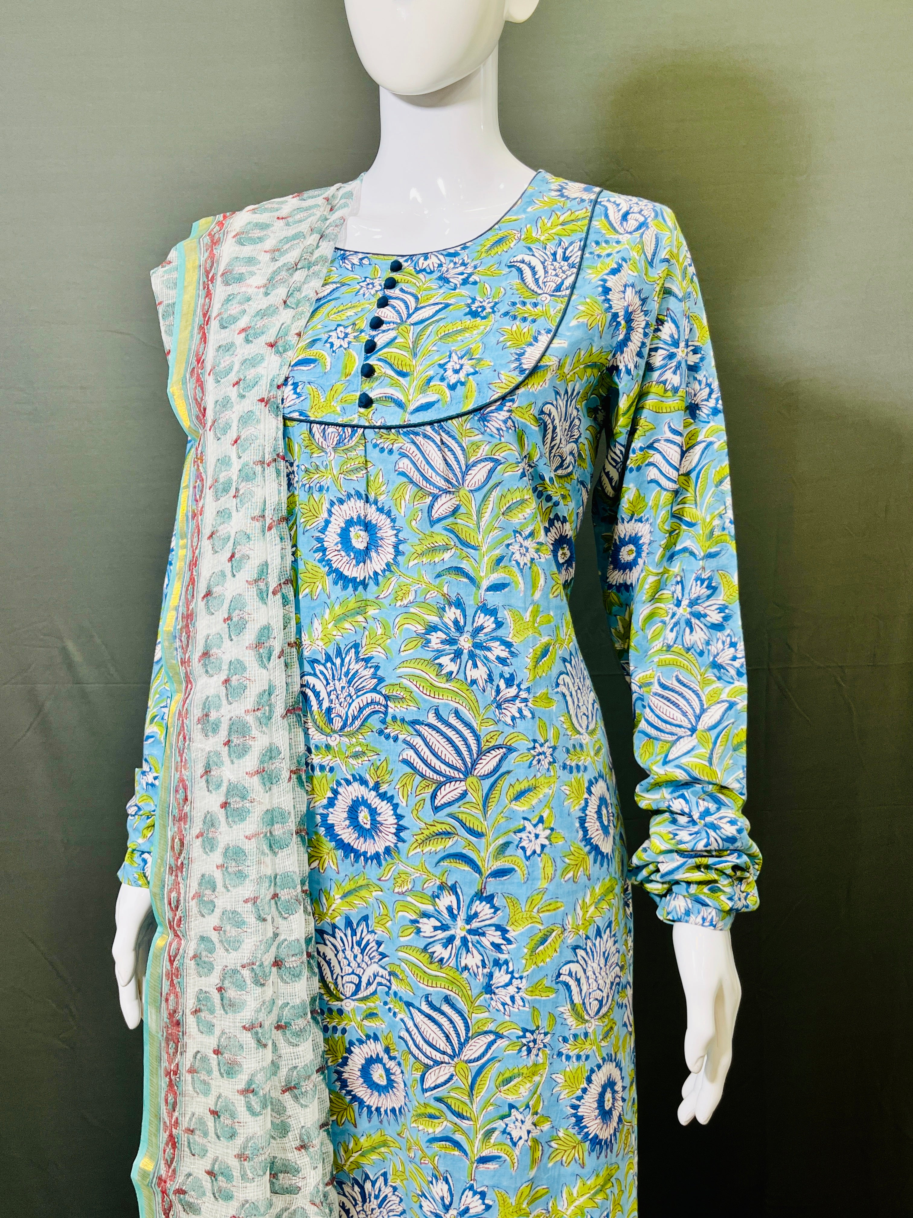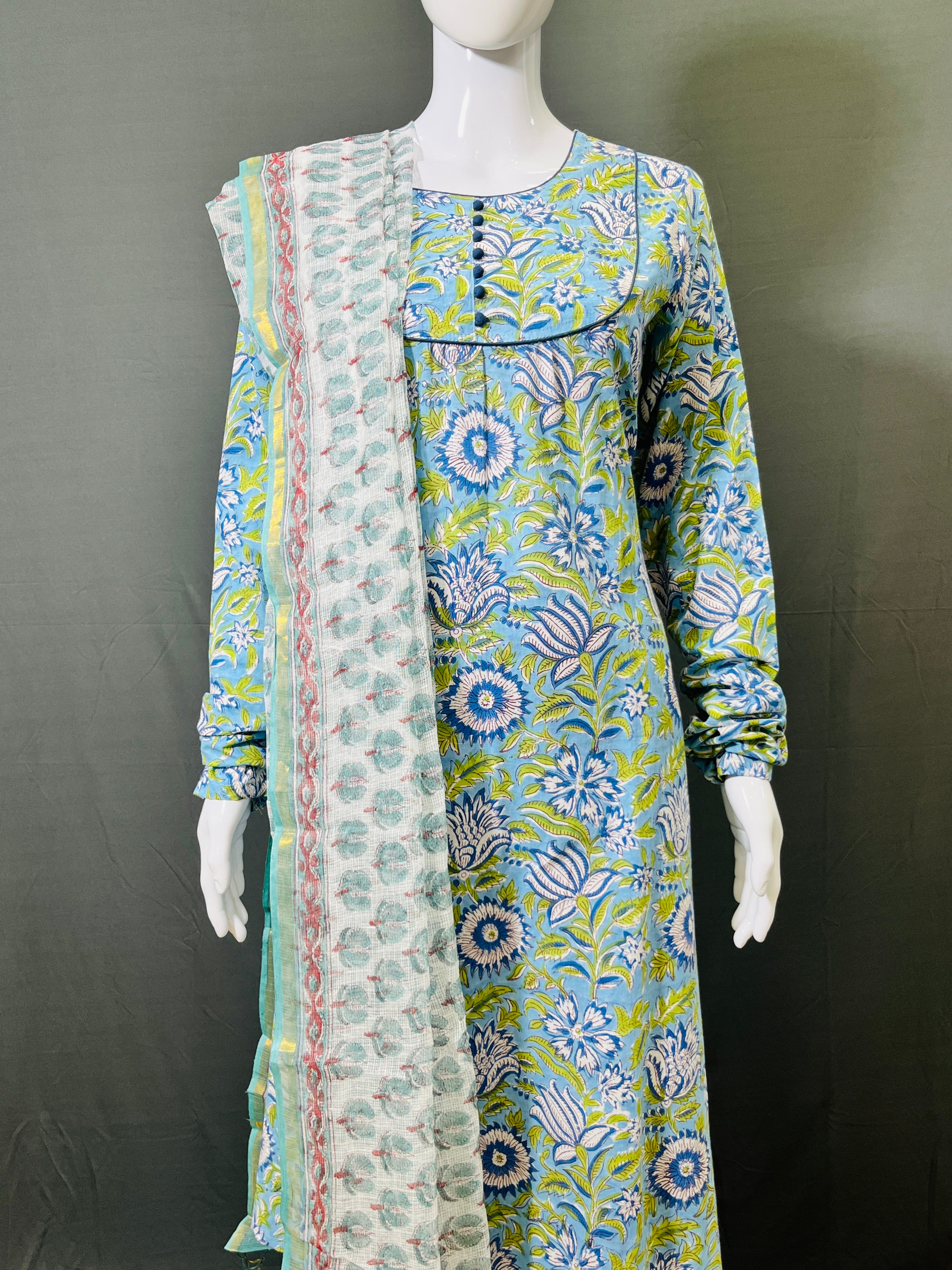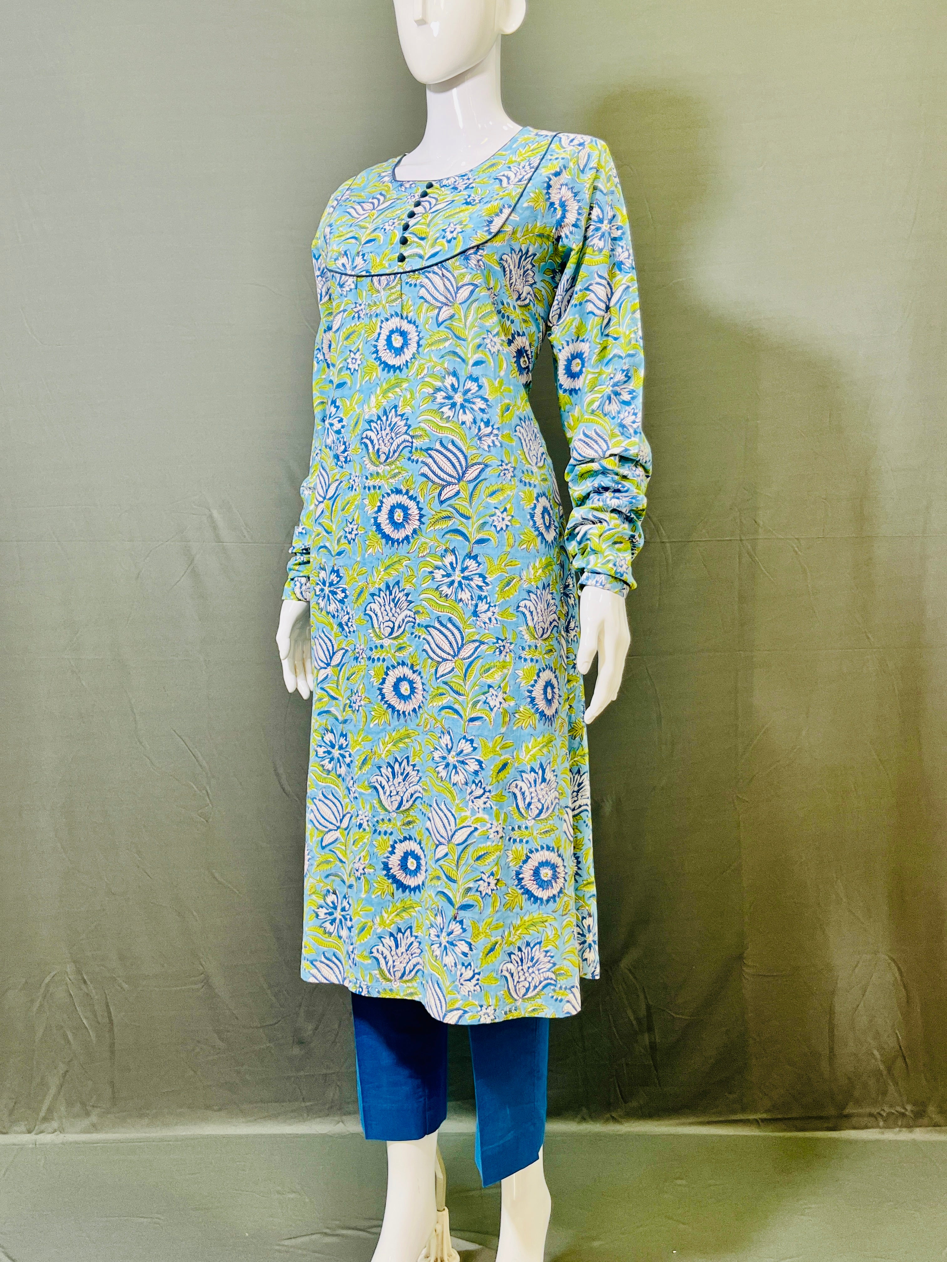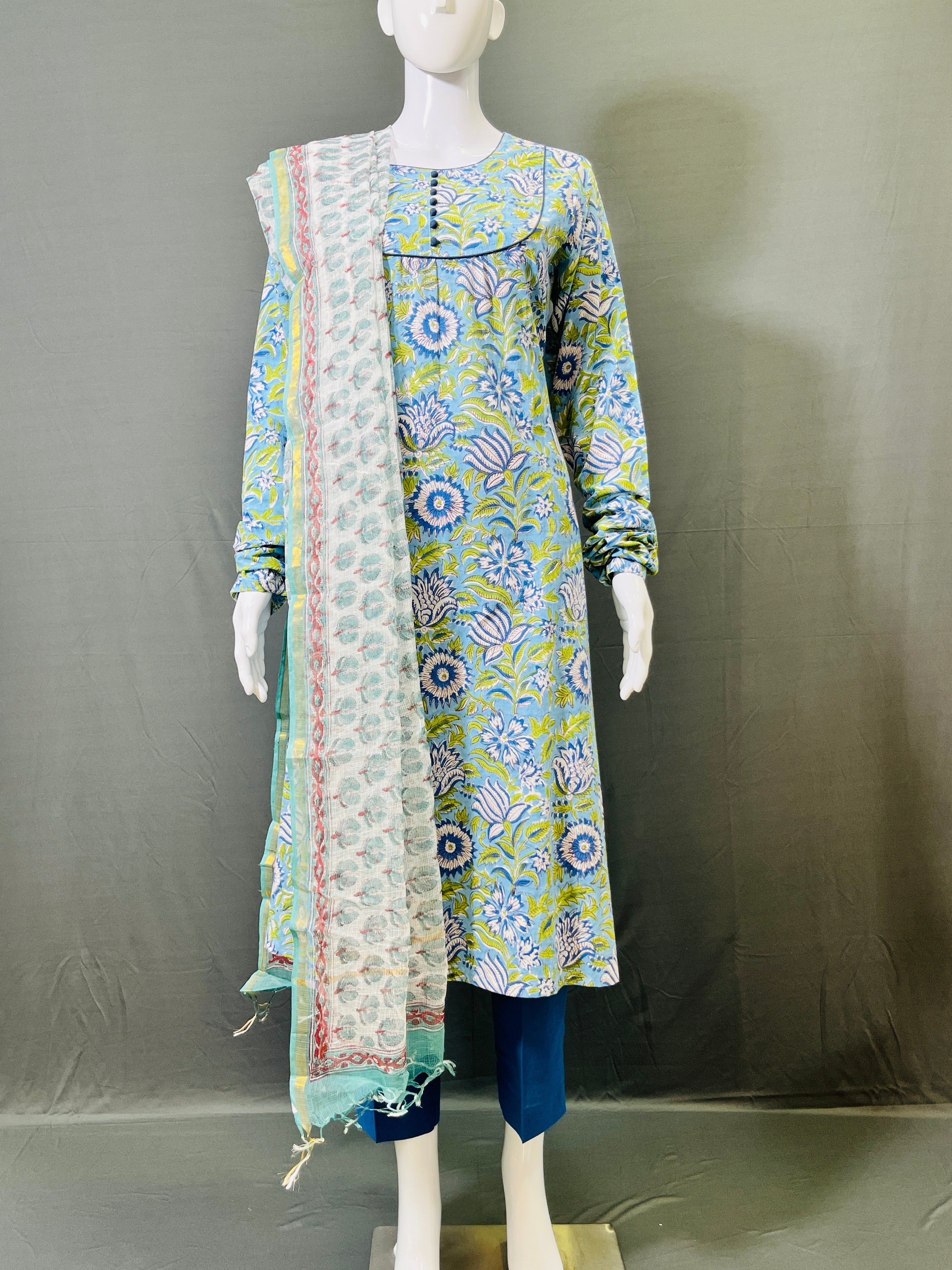 In the artful process of hand block-printing and stitching, variations are likely to come into existence. These irregularities are the hallmark of all handmade products and give each style a unique identity.Colours tend to be perceived differently depending on factors such as shot angles, lighting, background tones and colour temperatures. As a result, prints and colours may vary. Nevertheless, we strive to match the tones as close to the original product colours as possible.
