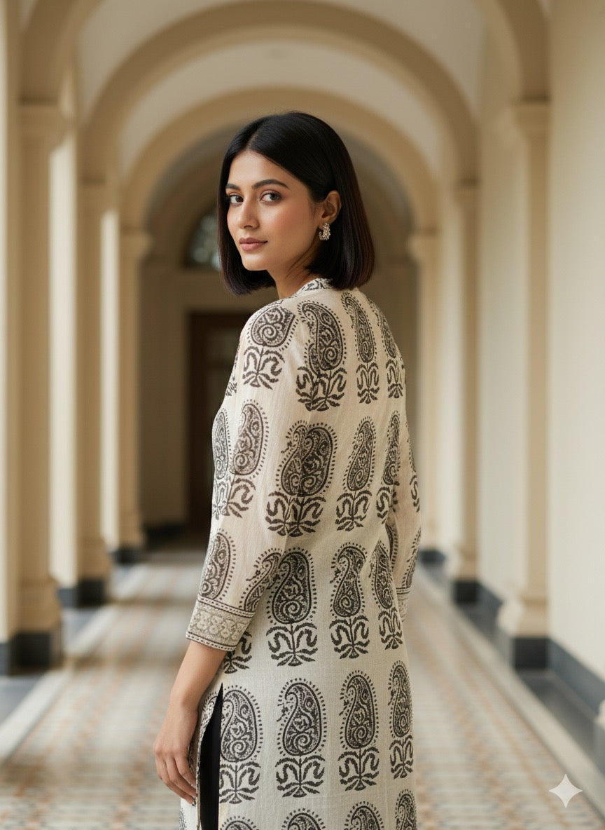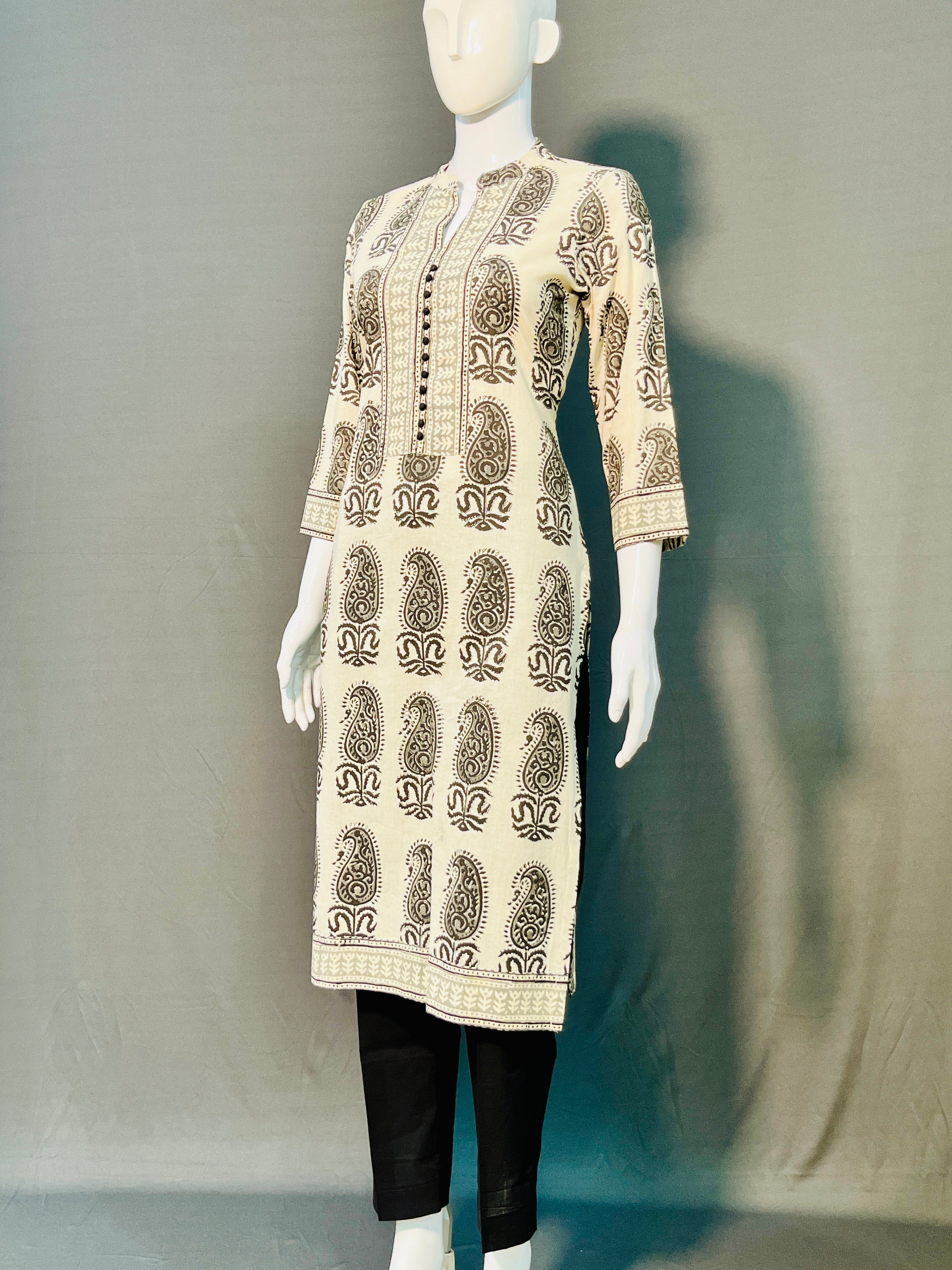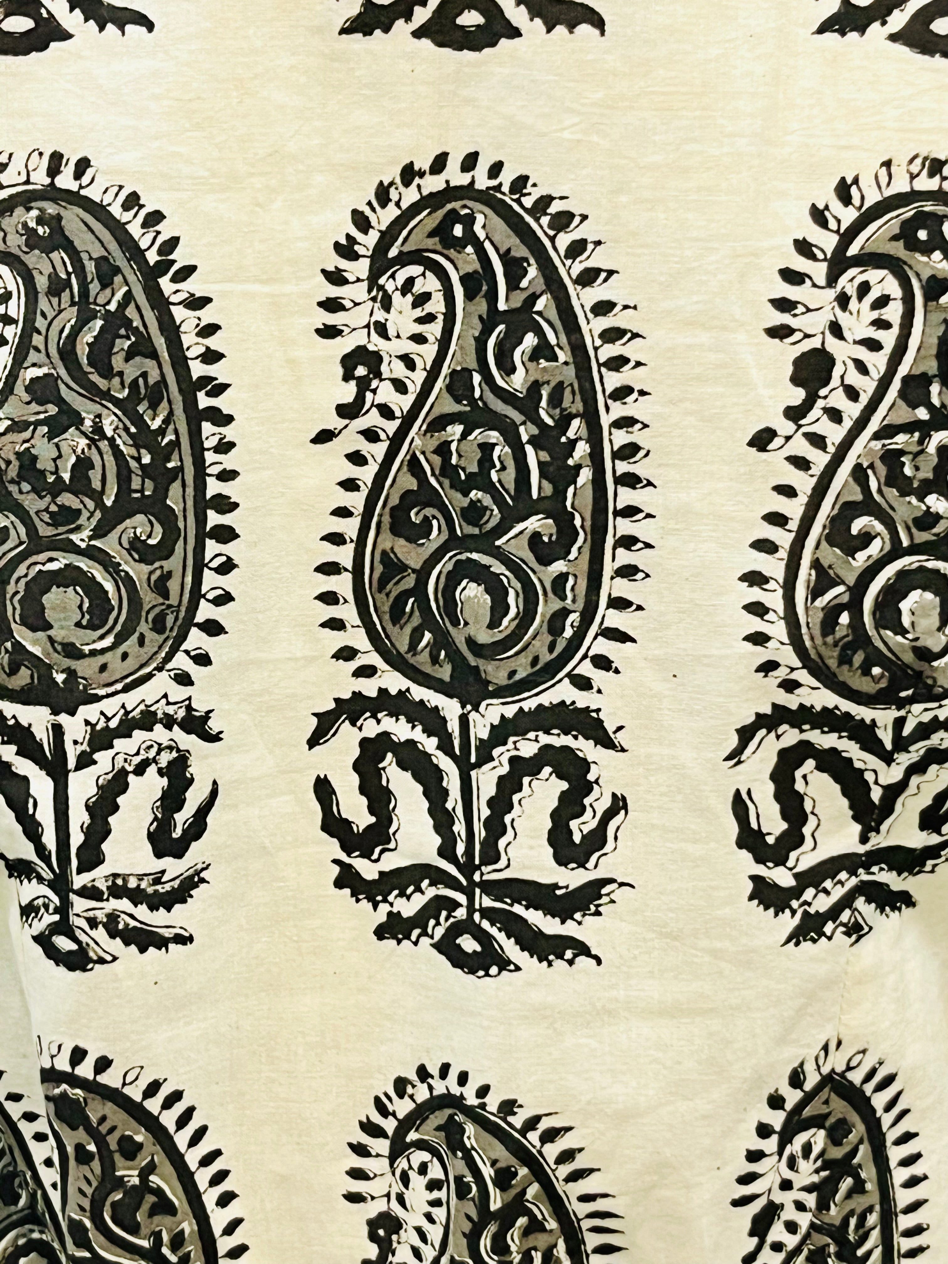 In the artful process of hand block-printing and stitching, variations are likely to come into existence. These irregularities are the hallmark of all handmade products and give each style a unique identity.Colours tend to be perceived differently depending on factors such as shot angles, lighting, background tones and colour temperatures. As a result, prints and colours may vary. Nevertheless, we strive to match the tones as close to the original product colours as possible.