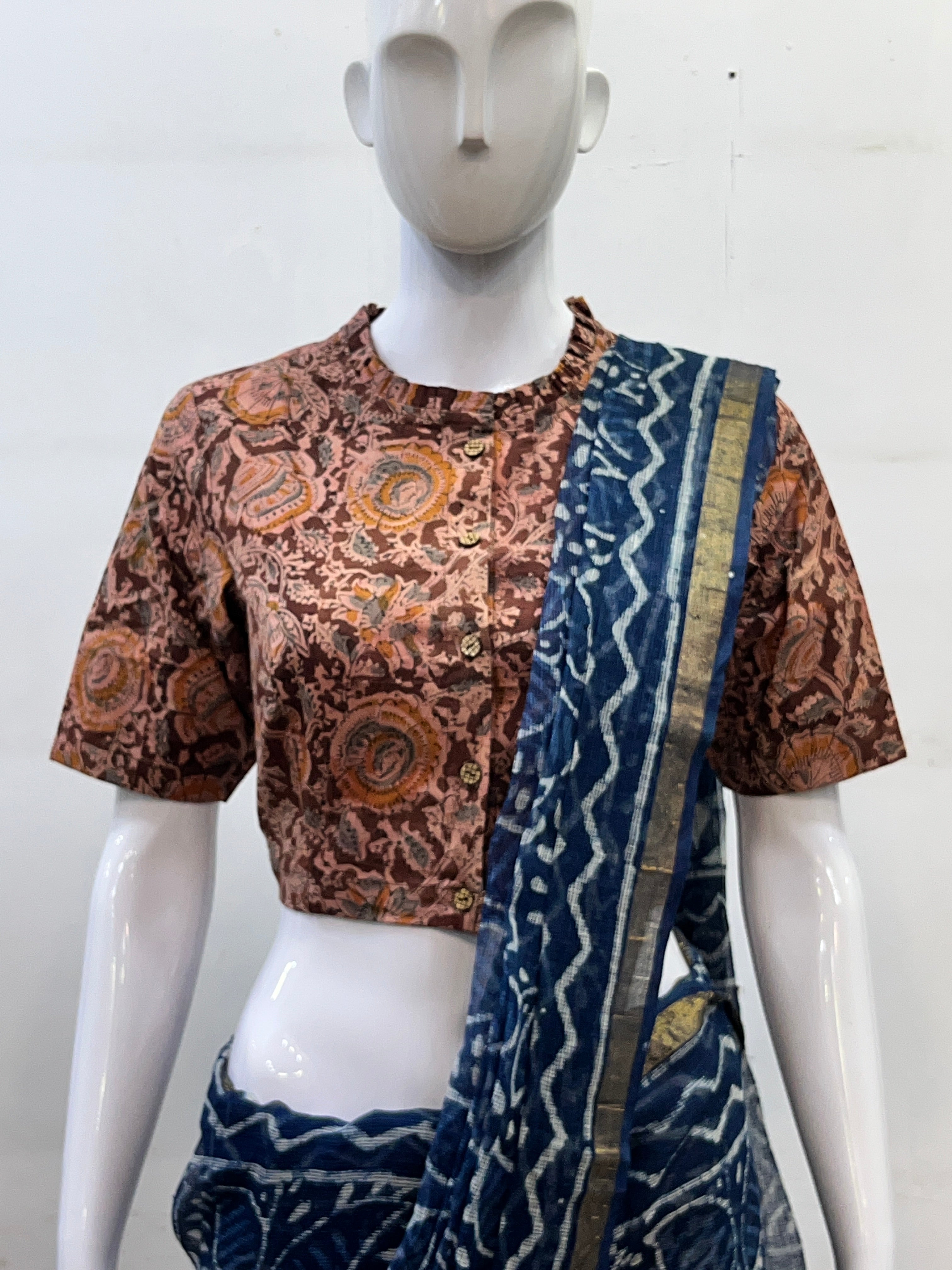 Each piece is adorned with traditional Hand Block prints, meticulously hand-blocked by skilled artisans, celebrating the heritage of Rajasthan's centuries-old textile art. Whether paired with a saree, skirt, or jeans, these blouses bring a touch of artisanal charm to your everyday wardrobe.