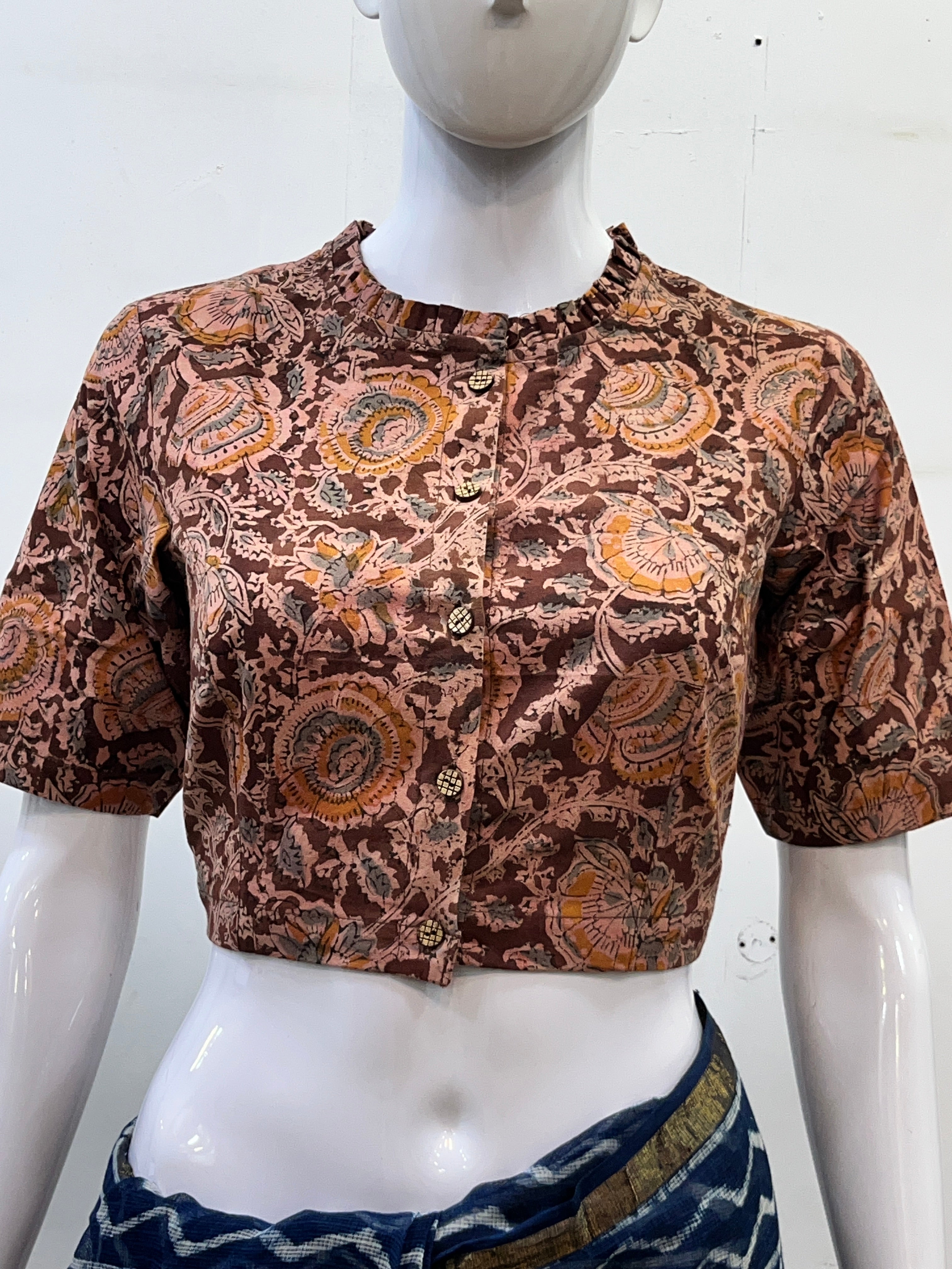 Each piece is adorned with traditional Hand Block prints, meticulously hand-blocked by skilled artisans, celebrating the heritage of Rajasthan's centuries-old textile art. Whether paired with a saree, skirt, or jeans, these blouses bring a touch of artisanal charm to your everyday wardrobe.