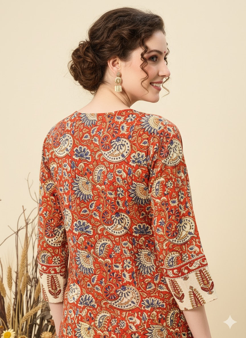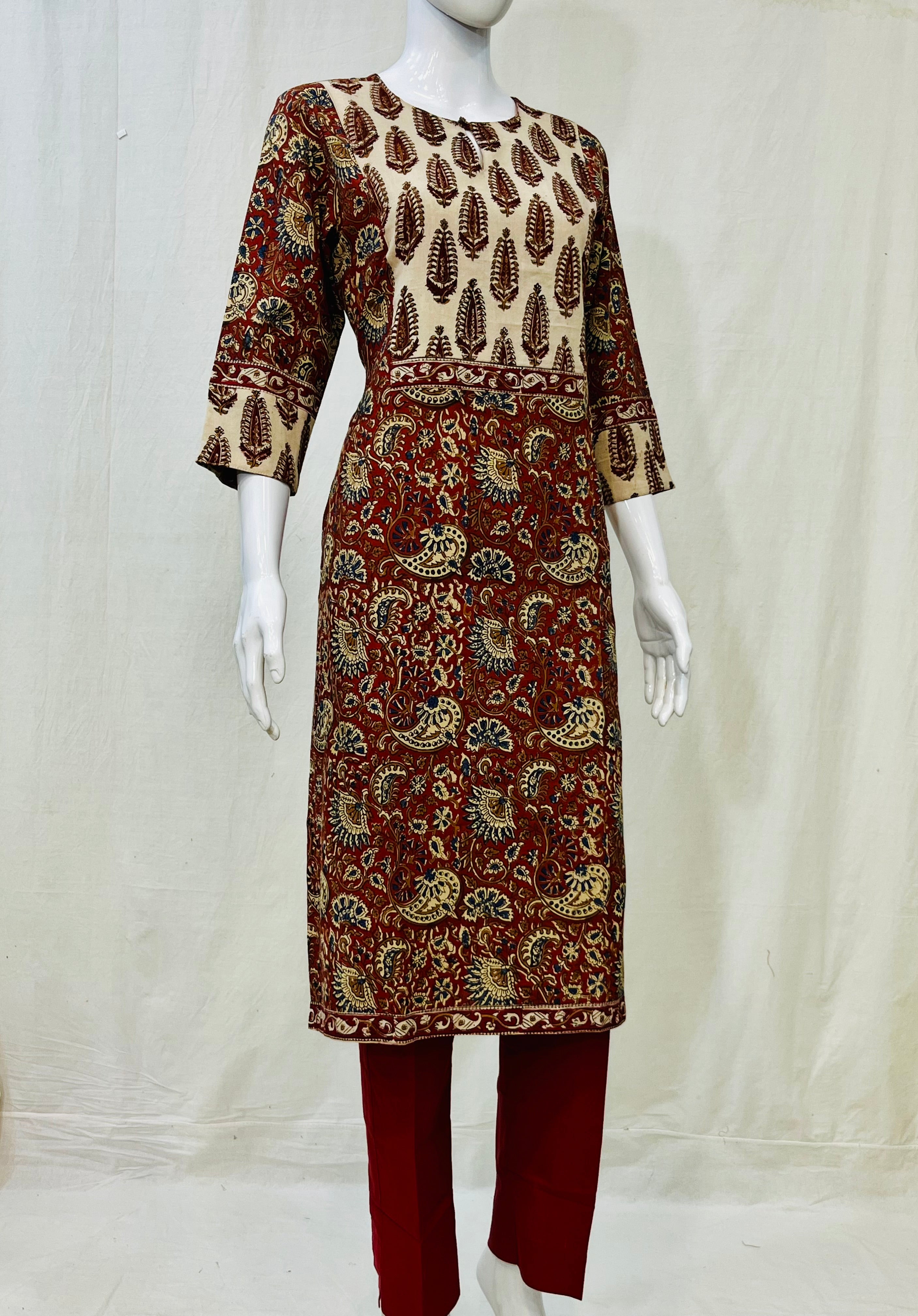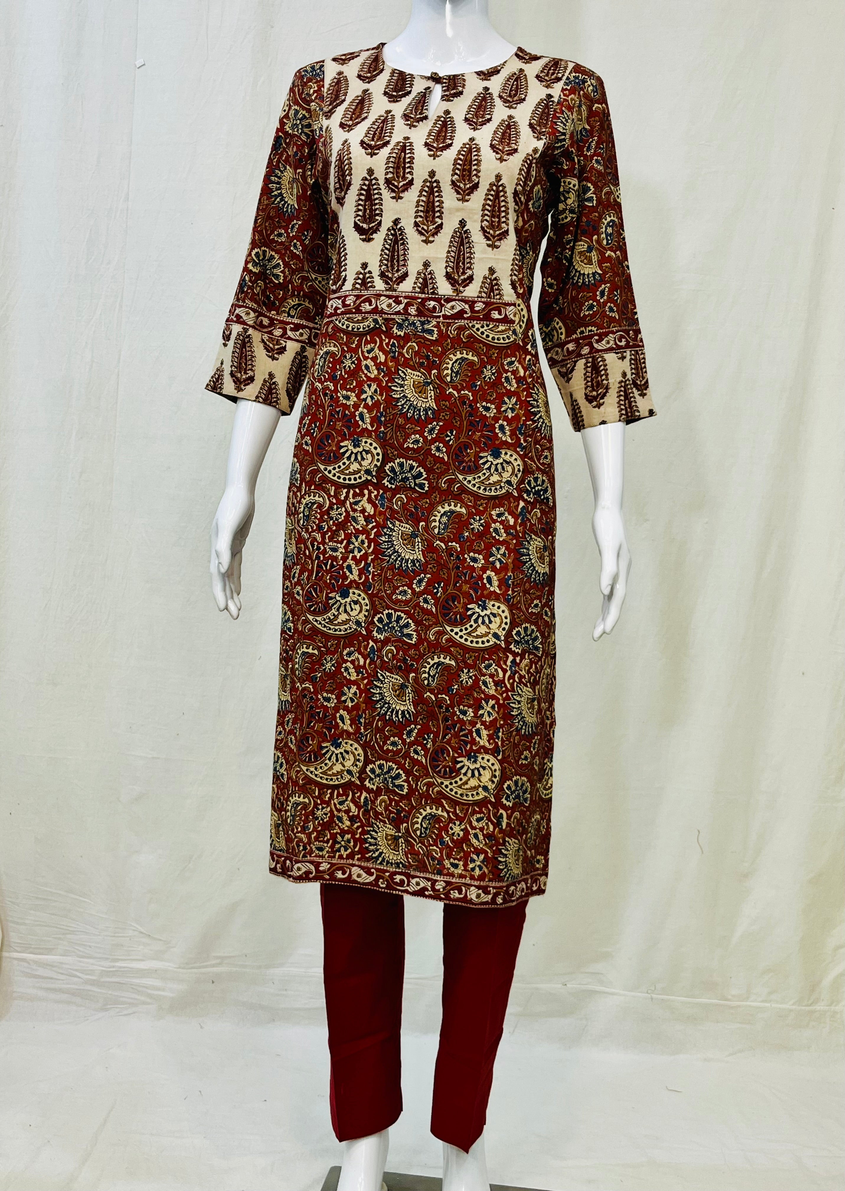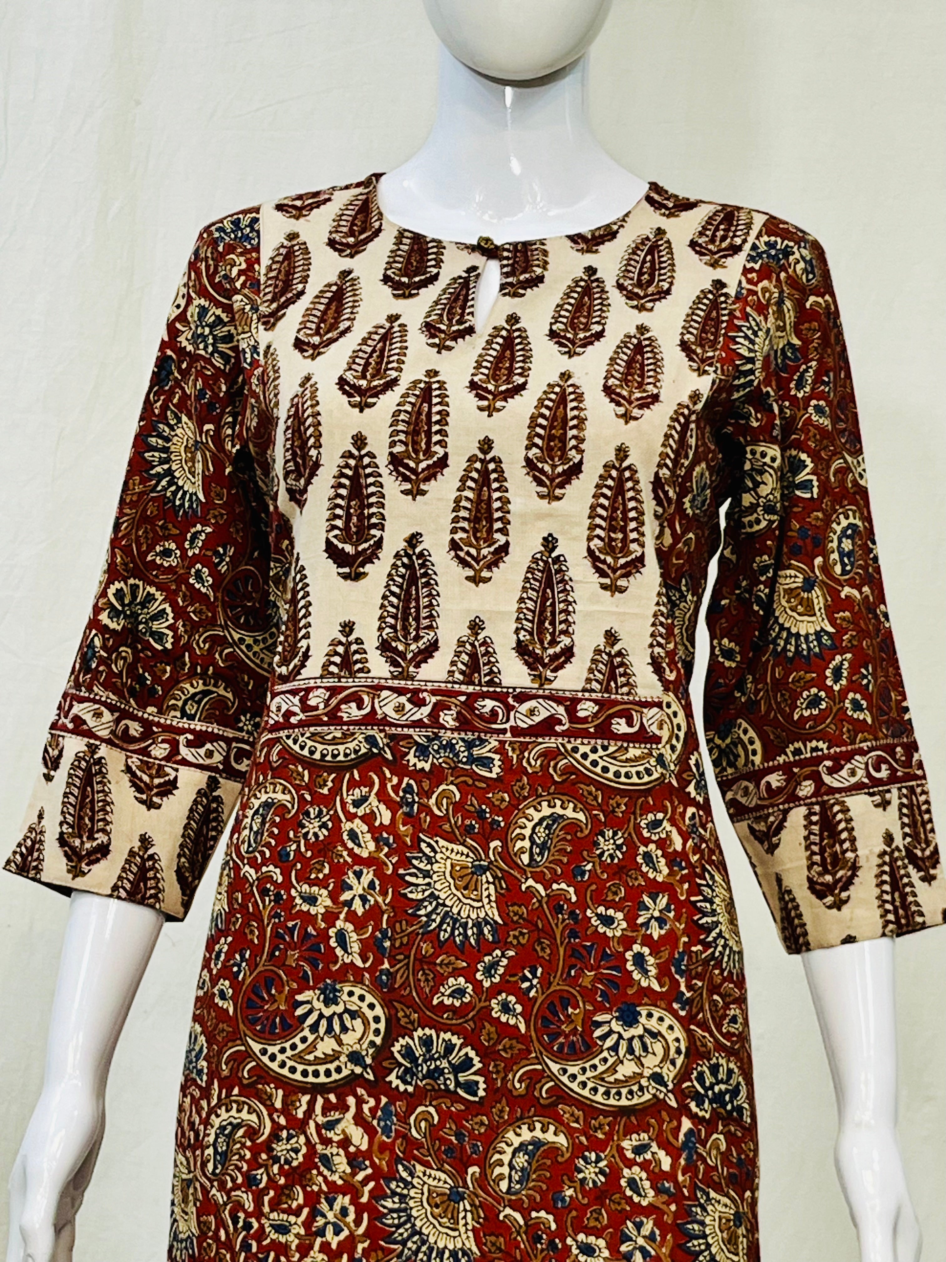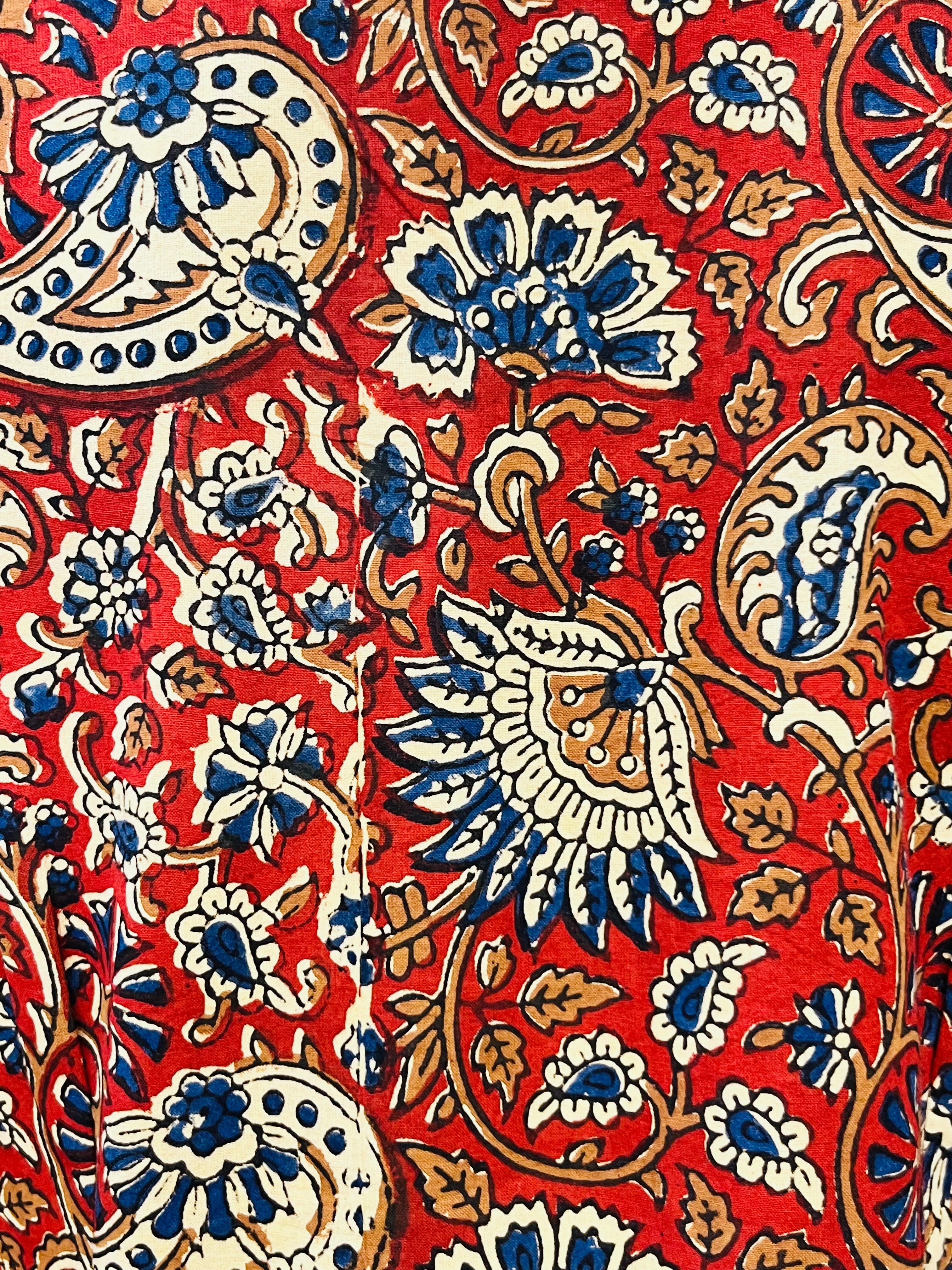 In the artful process of hand block-printing and stitching, variations are likely to come into existence. These irregularities are the hallmark of all handmade products and give each style a unique identity.Colours tend to be perceived differently depending on factors such as shot angles, lighting, background tones and colour temperatures. As a result, prints and colours may vary. Nevertheless, we strive to match the tones as close to the original product colours as possible.