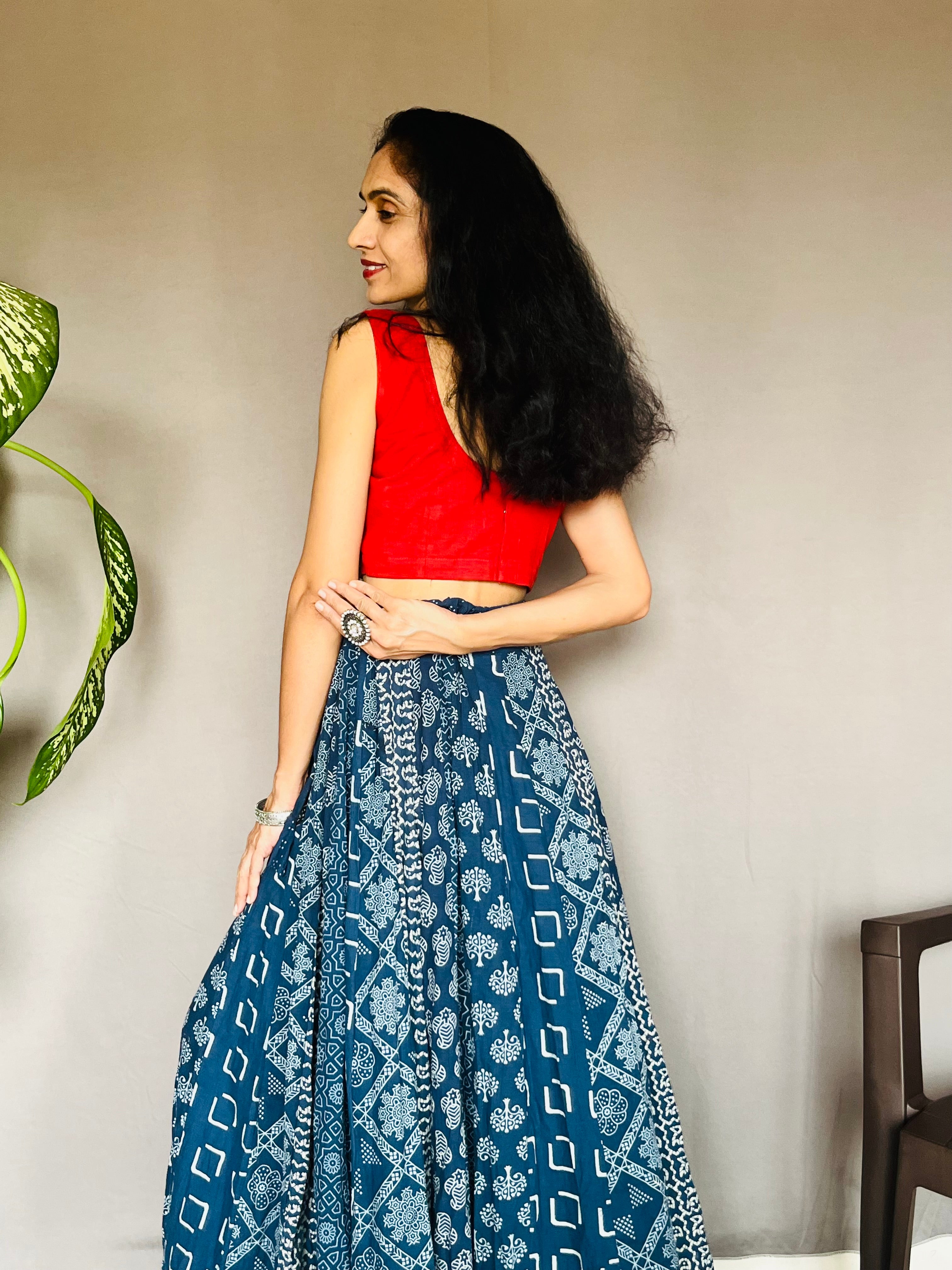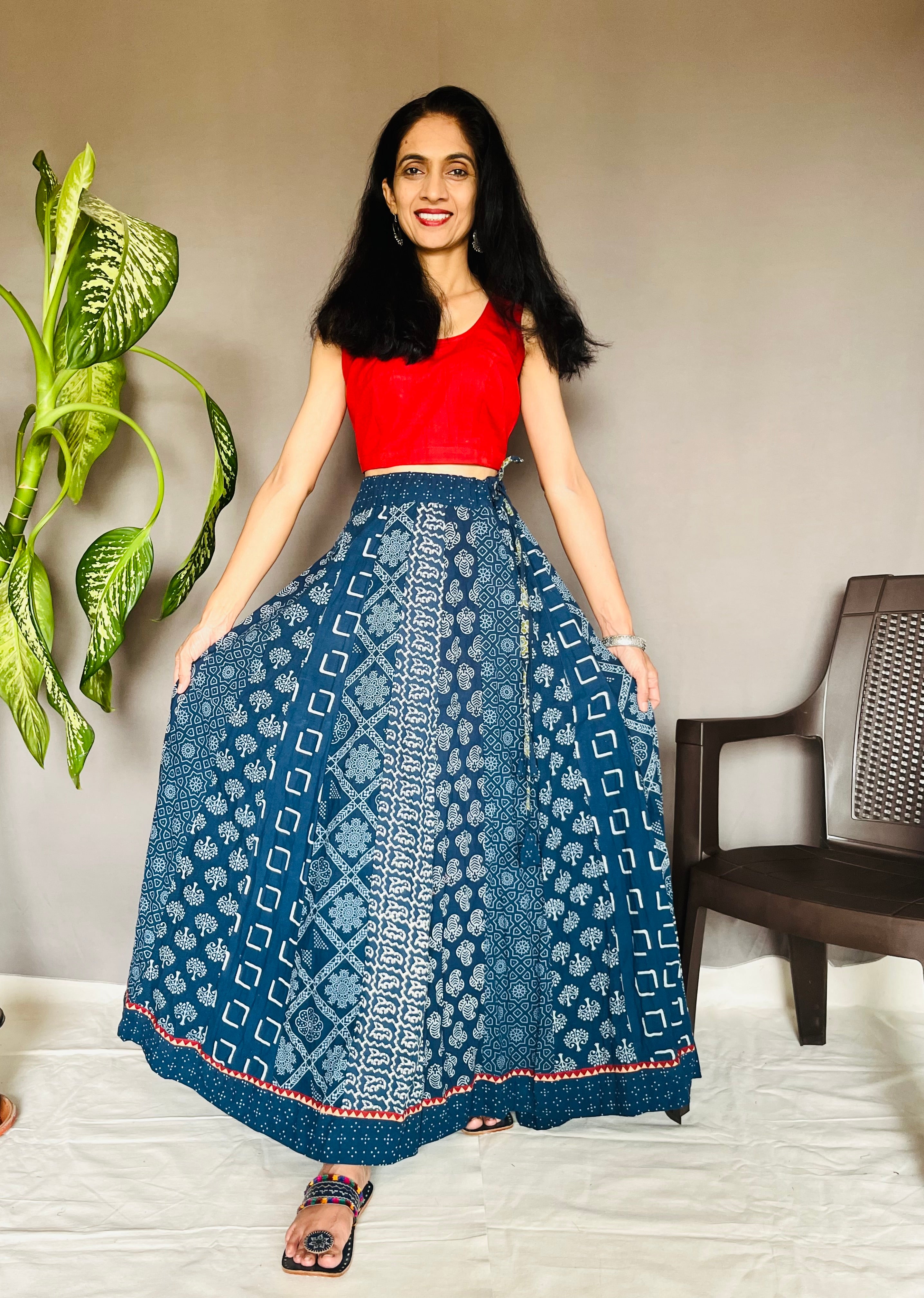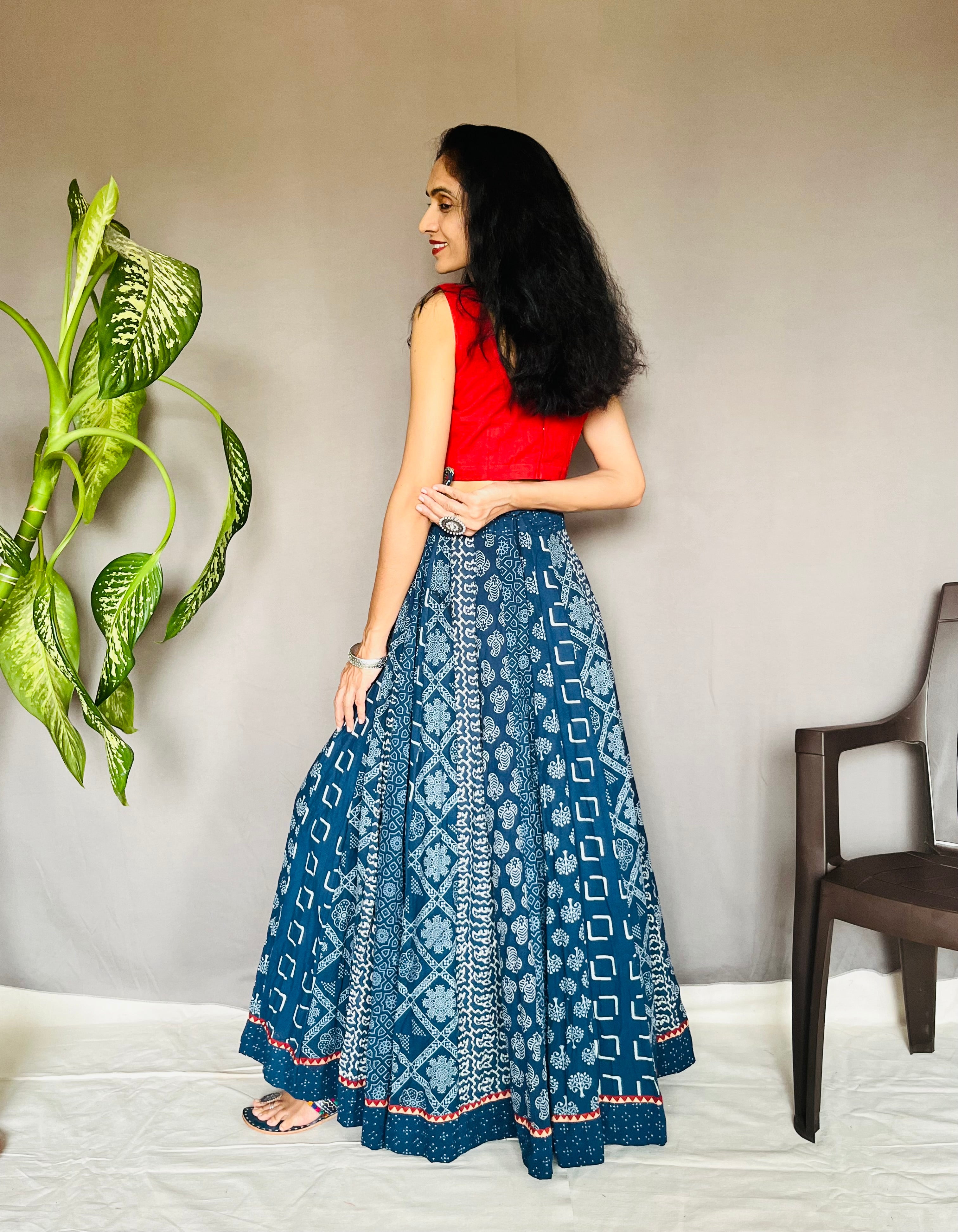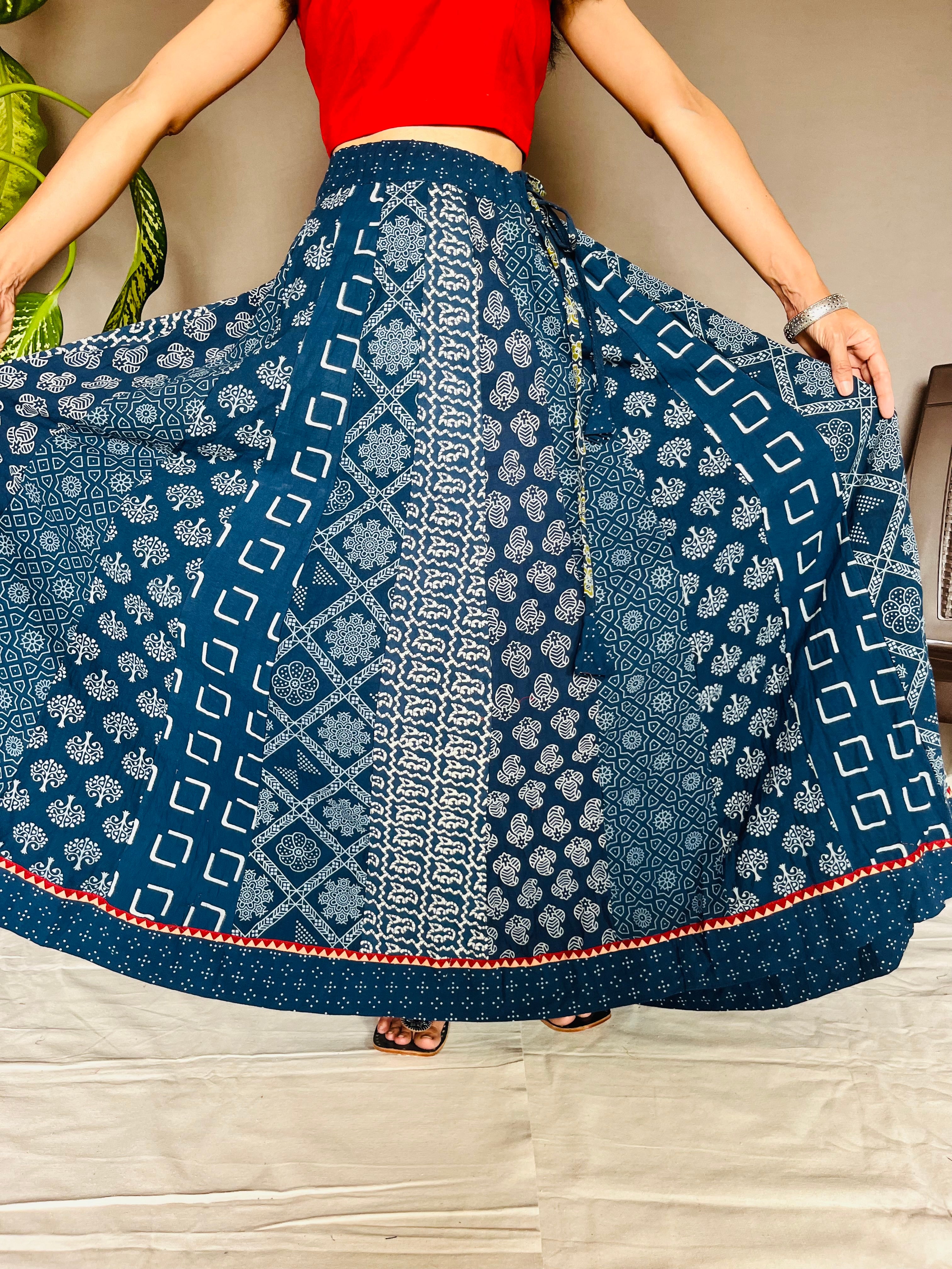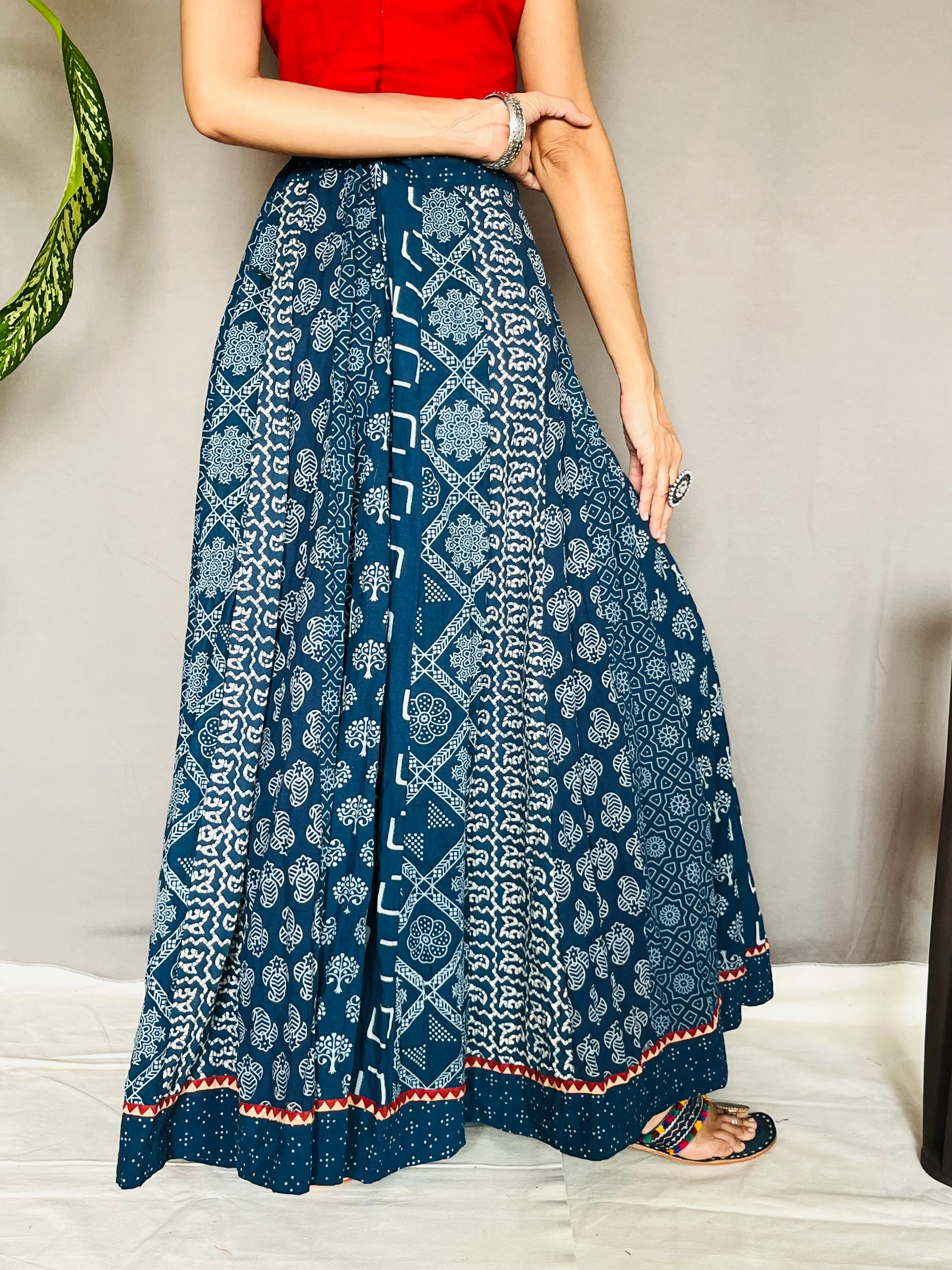With vibrant prints like Ajrakh, Bandhani, Kalamkari, Indigo-dyed, and Bagru, these skirts are designed in graceful Anarkali-inspired patterns that add drama, volume, and fluidity to your every move. Whether you’re dressing up for a festive occasion, a cultural celebration, or looking to add a statement piece to your everyday wardrobe, these skirts offer comfort, style, and cultural richness all in one.