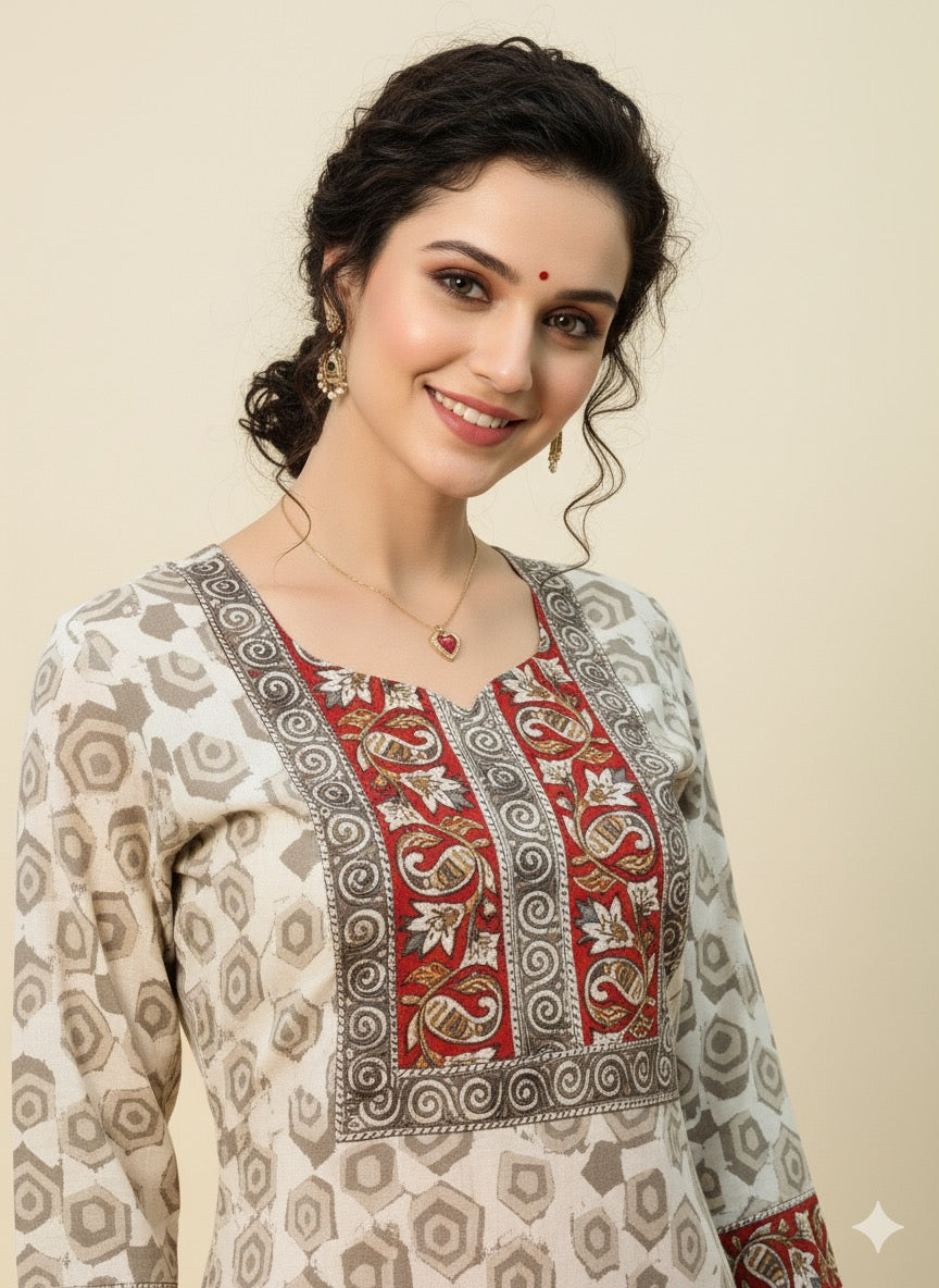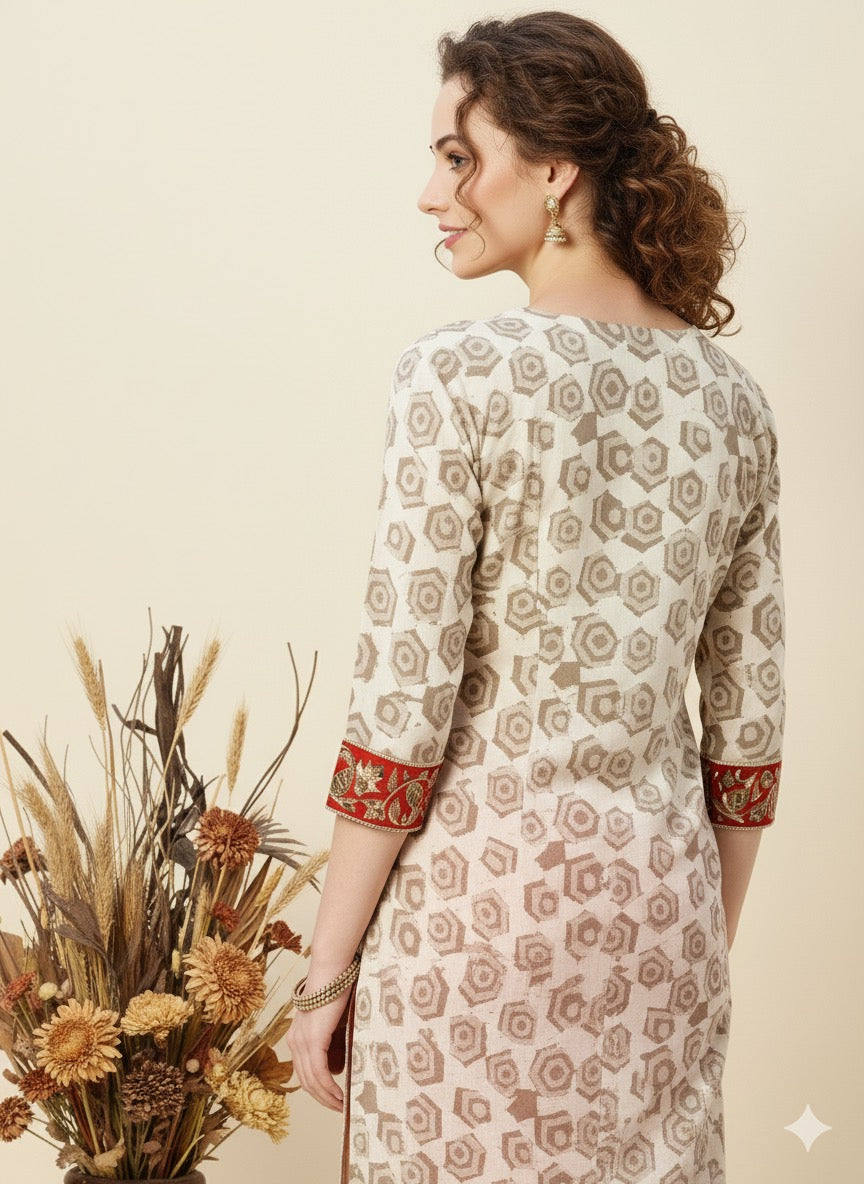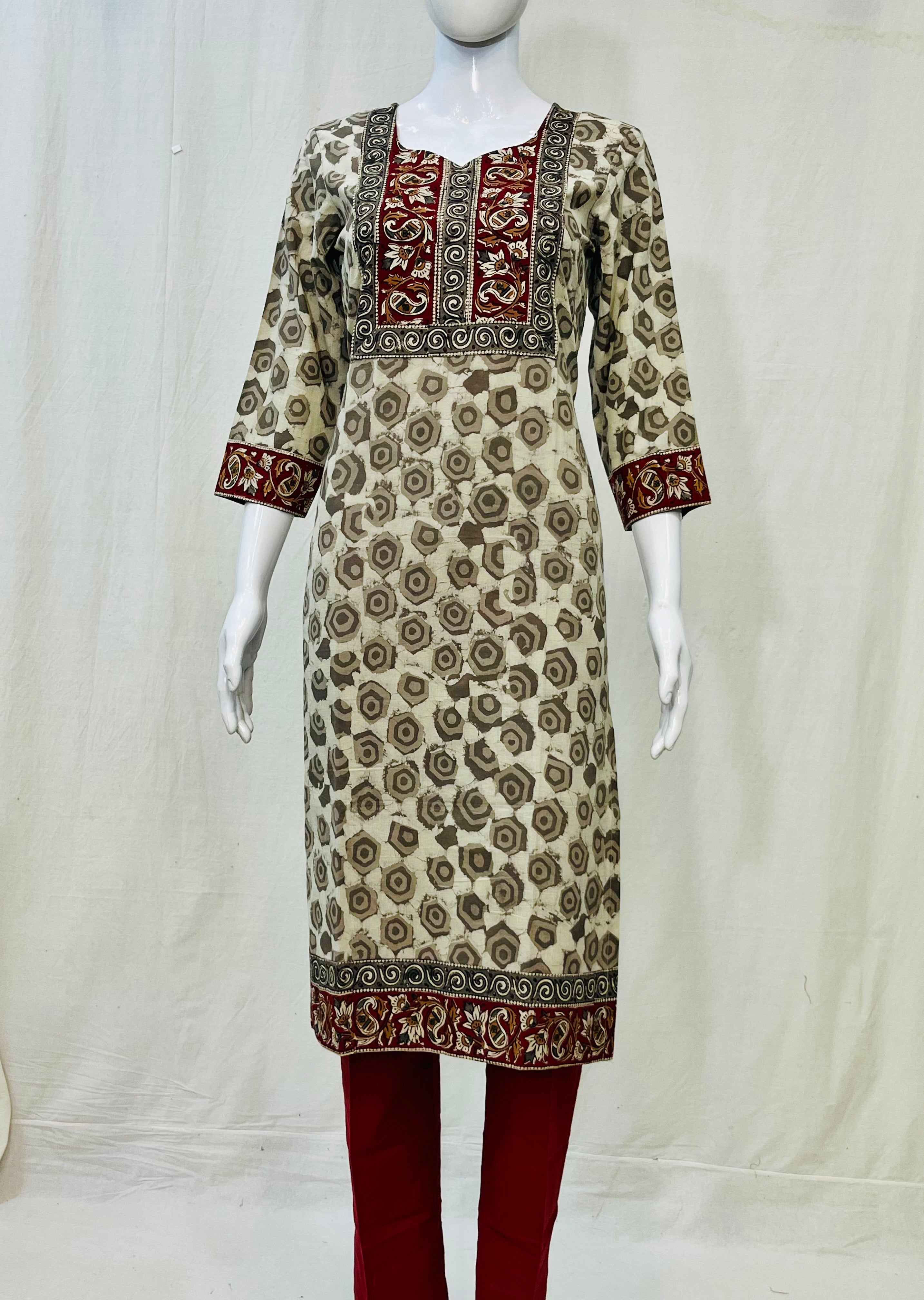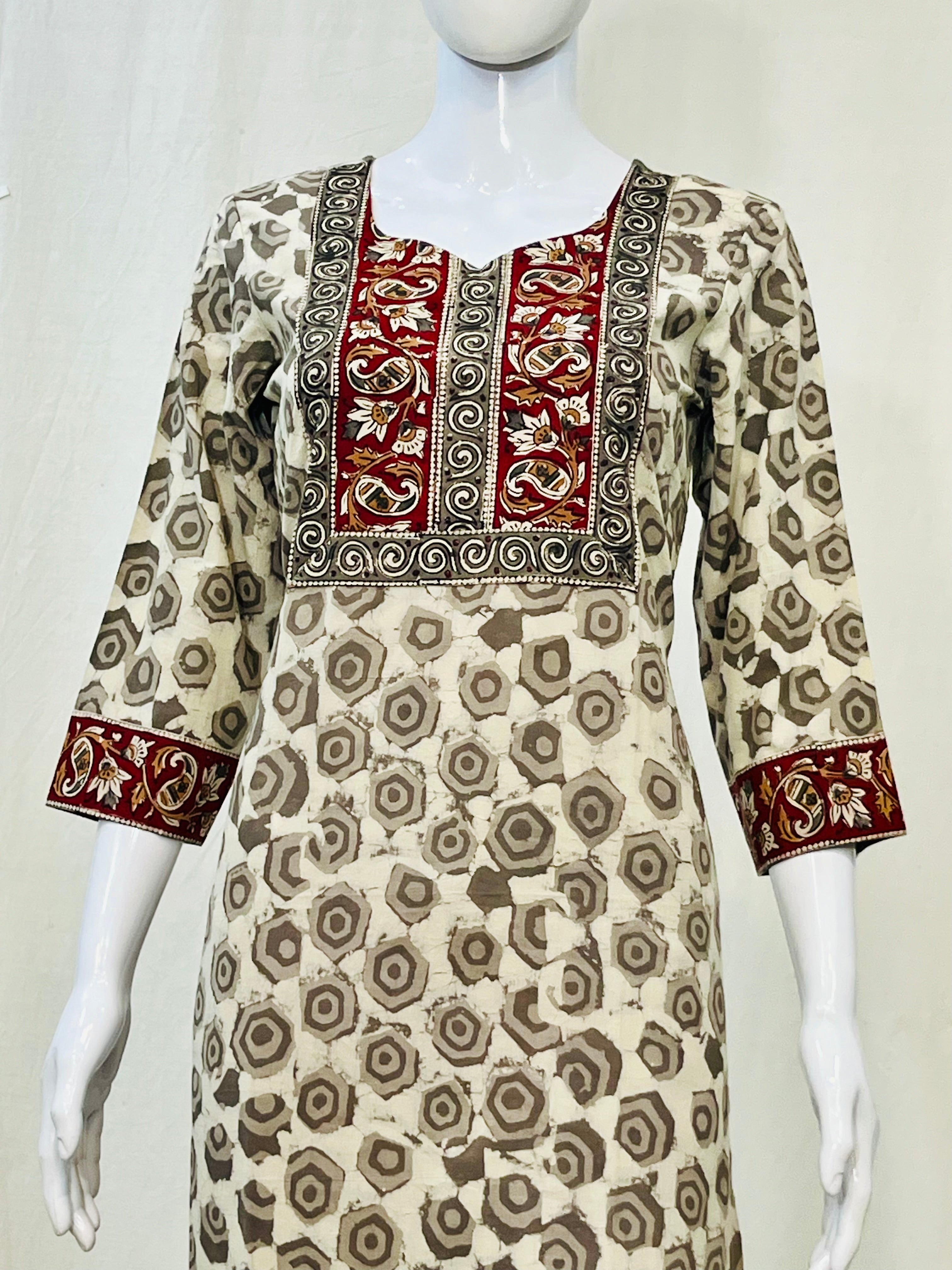 In the artful process of hand block-printing and stitching, variations are likely to come into existence. These irregularities are the hallmark of all handmade products and give each style a unique identity.Colours tend to be perceived differently depending on factors such as shot angles, lighting, background tones and colour temperatures. As a result, prints and colours may vary. Nevertheless, we strive to match the tones as close to the original product colours as possible.