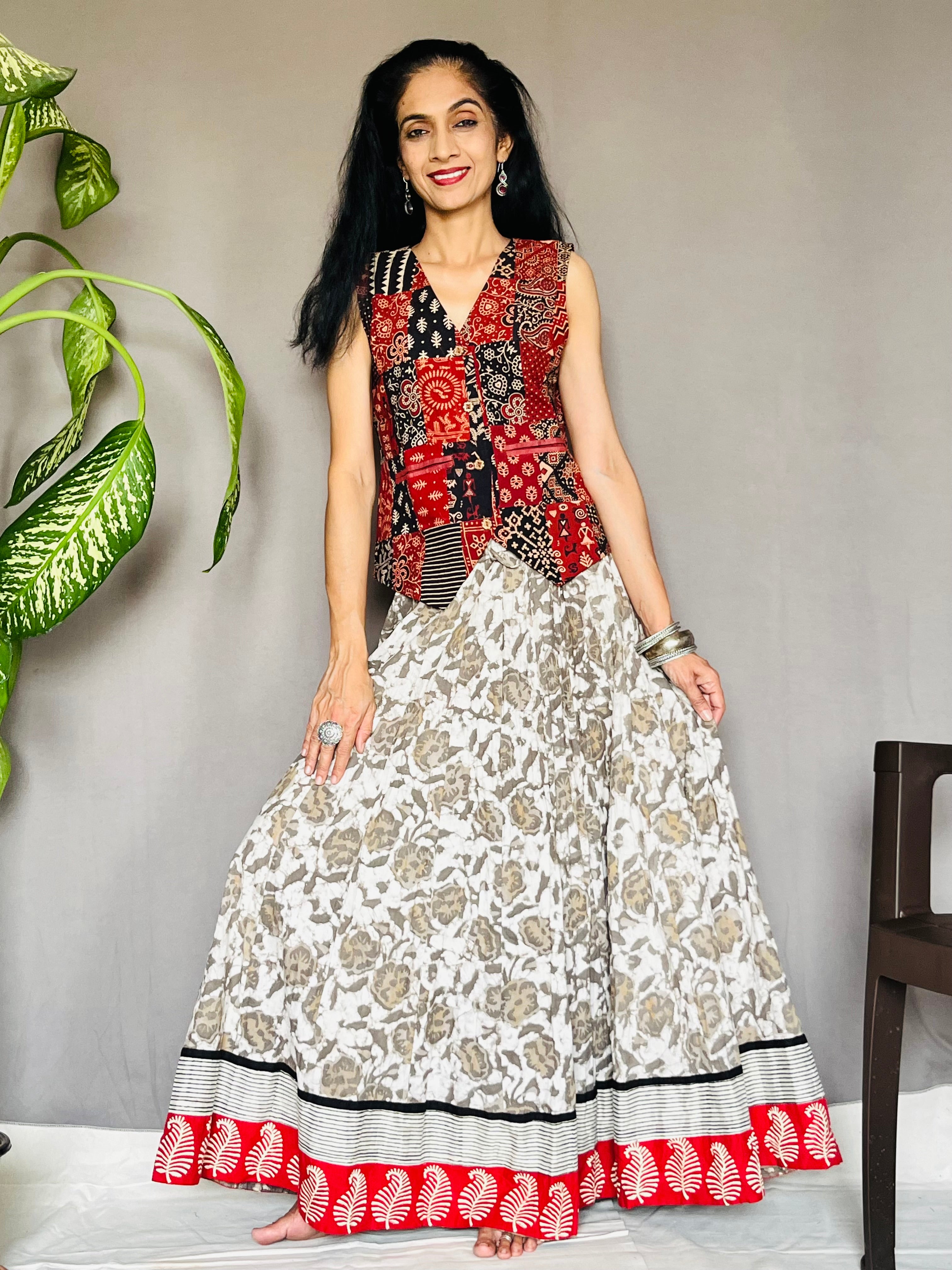 Step into timeless elegance with Somariya’s handcrafted full-flared long skirts, where tradition meets contemporary flair. Each skirt is a work of art, made using premium quality hand block printed fabrics sourced from the heart of India’s textile heritage.