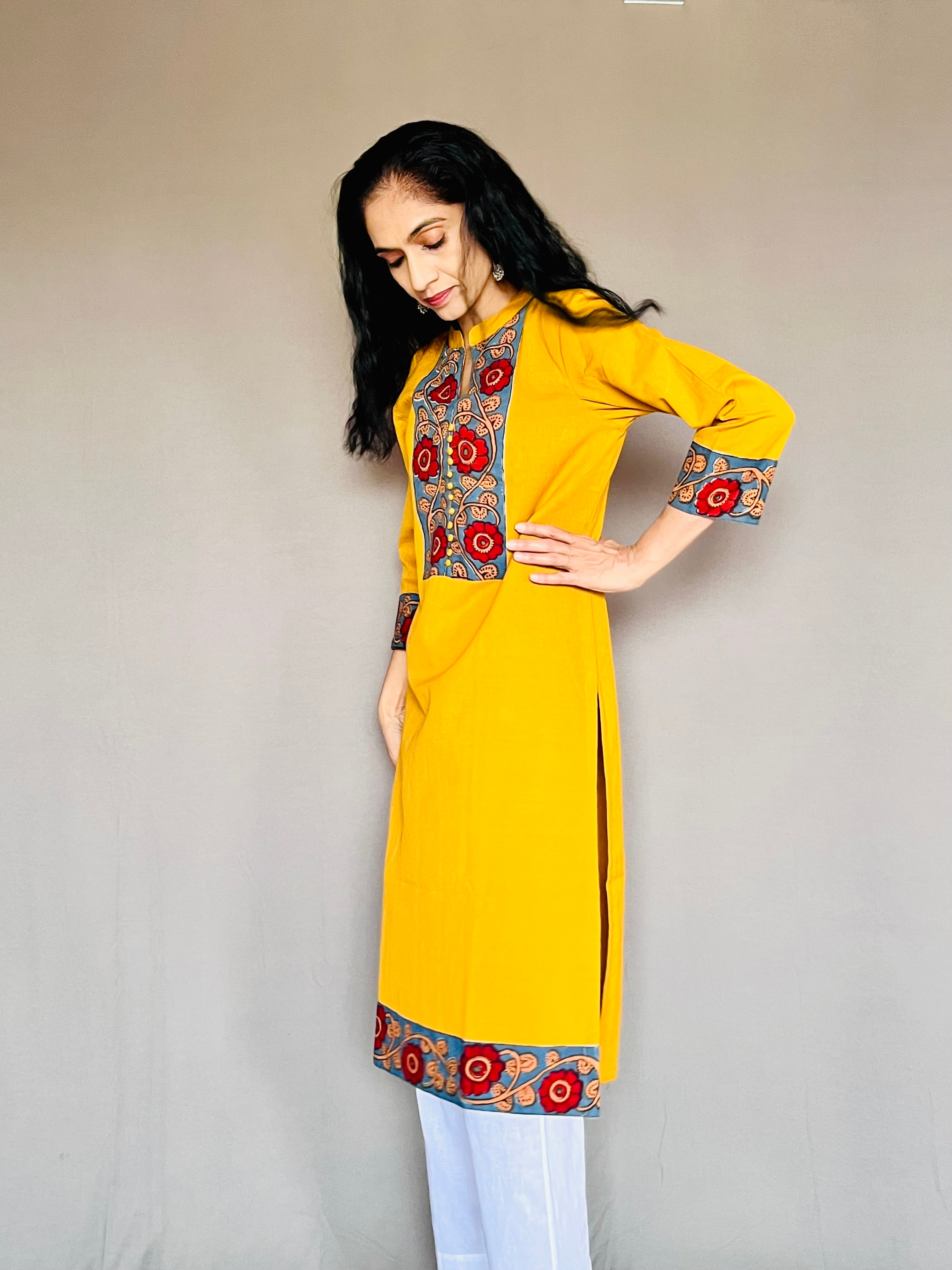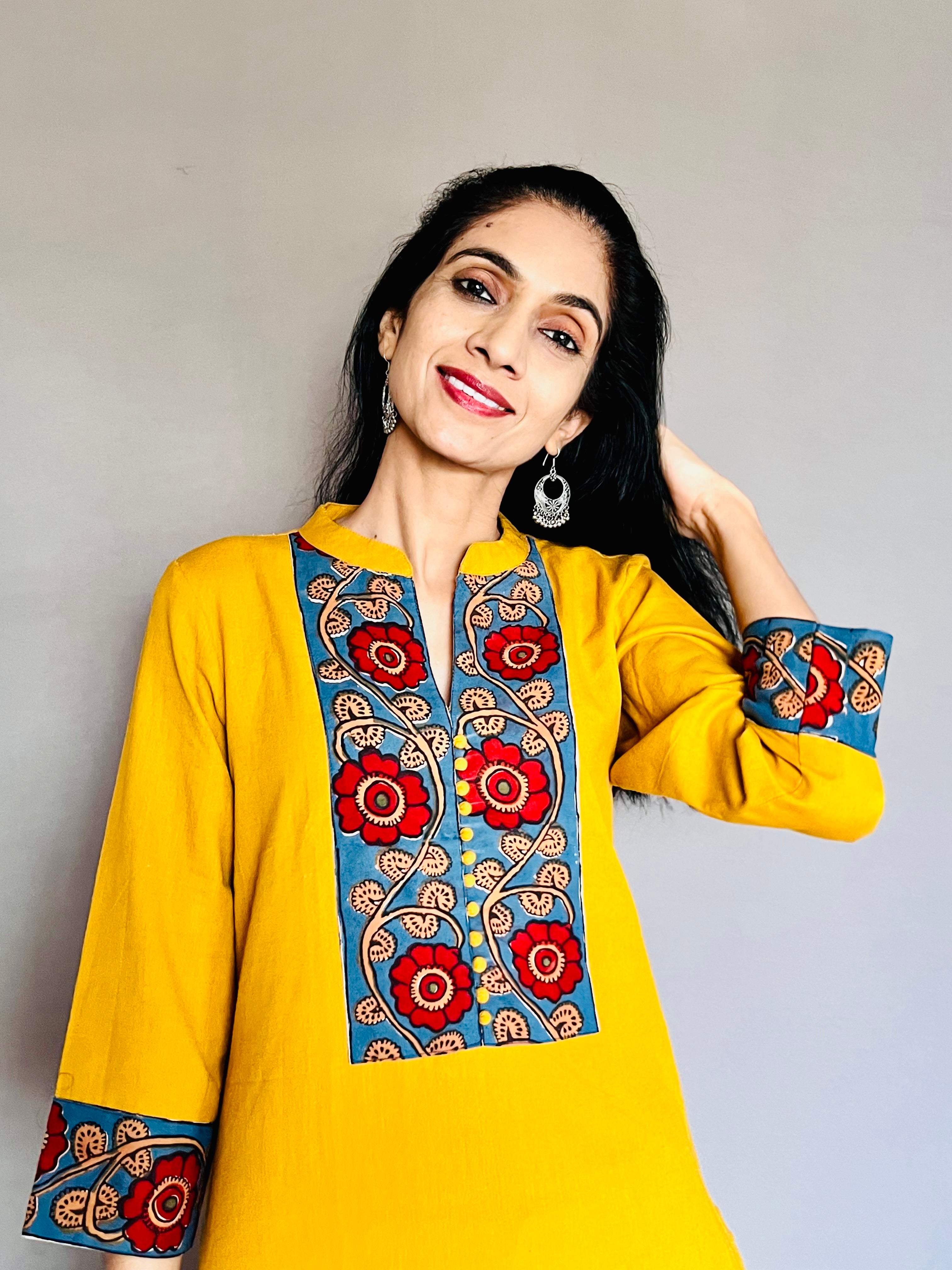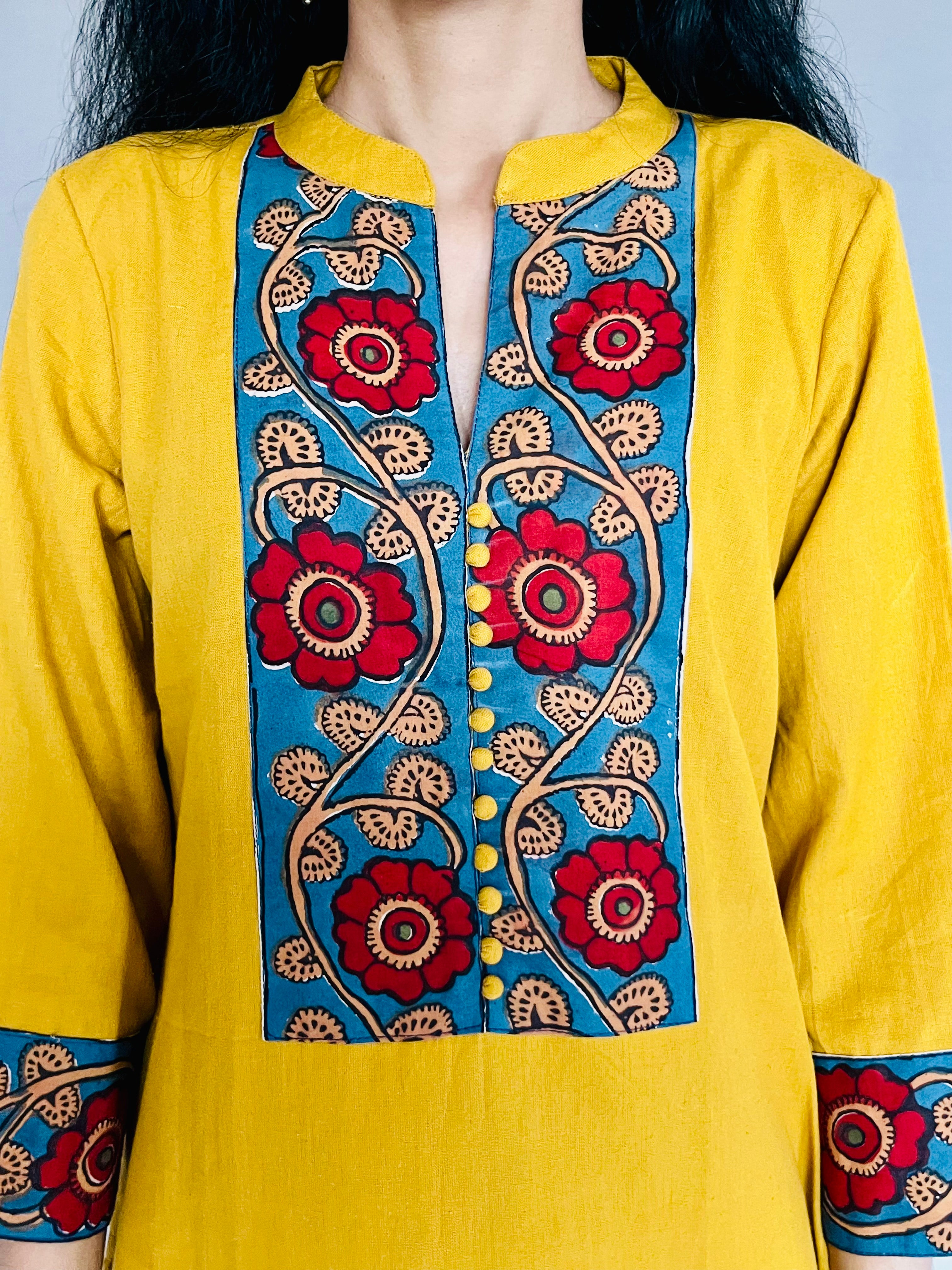 In the artful process of hand block-printing and stitching, variations are likely to come into existence. These irregularities are the hallmark of all handmade products and give each style a unique identity.Colours tend to be perceived differently depending on factors such as shot angles, lighting, background tones and colour temperatures. As a result, prints and colours may vary. Nevertheless, we strive to match the tones as close to the original product colours as possible.