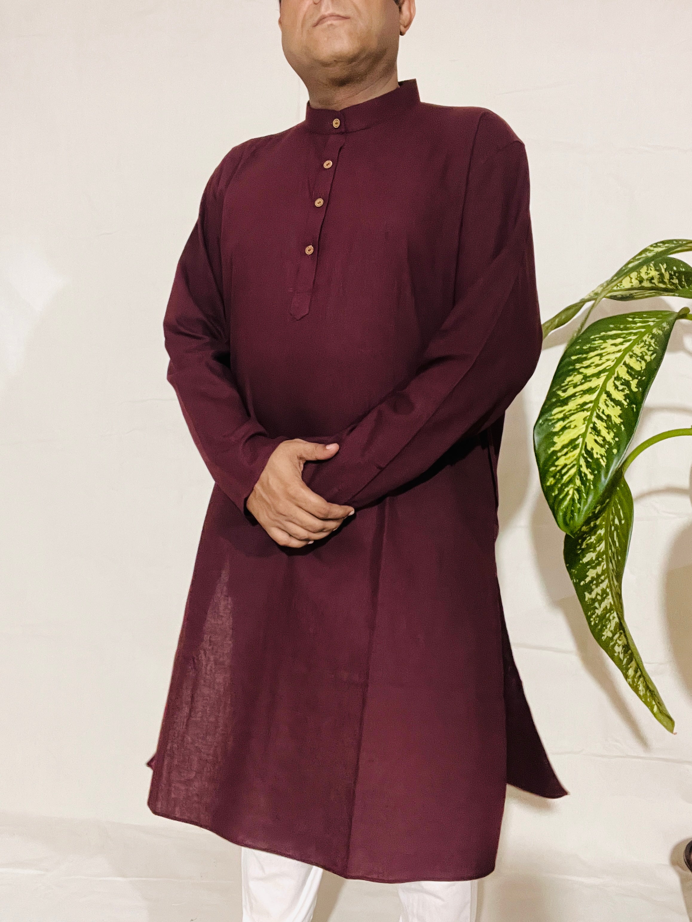 Men's Long Kurtas in Khadi Cotton Flex Fabric