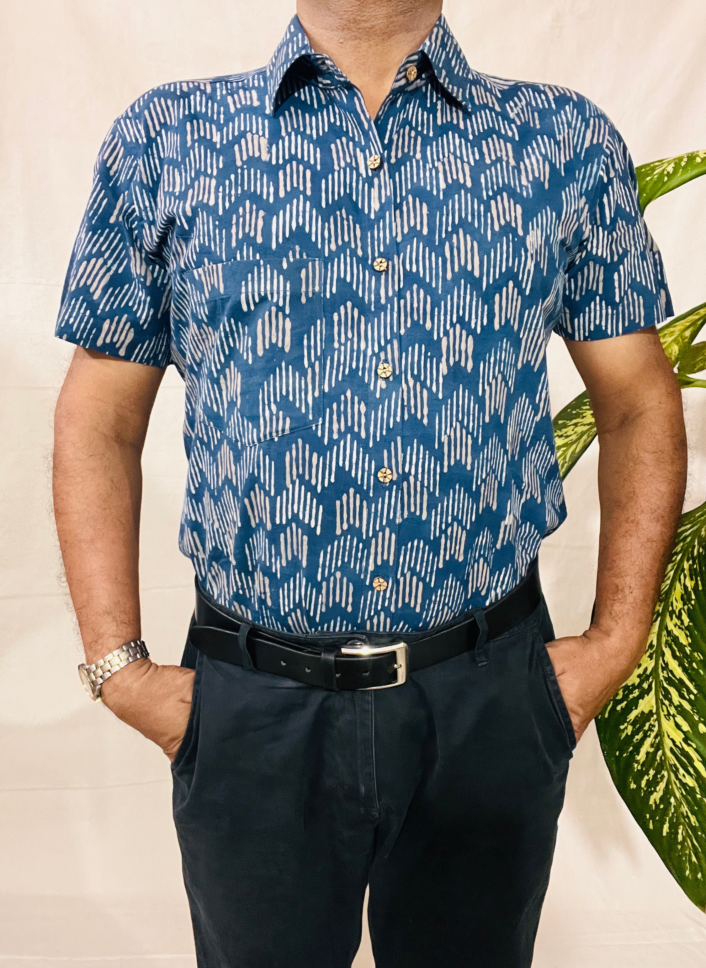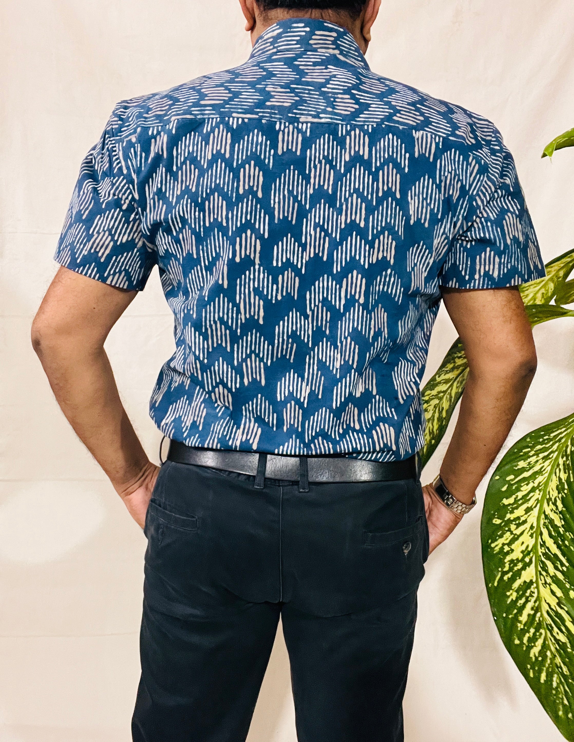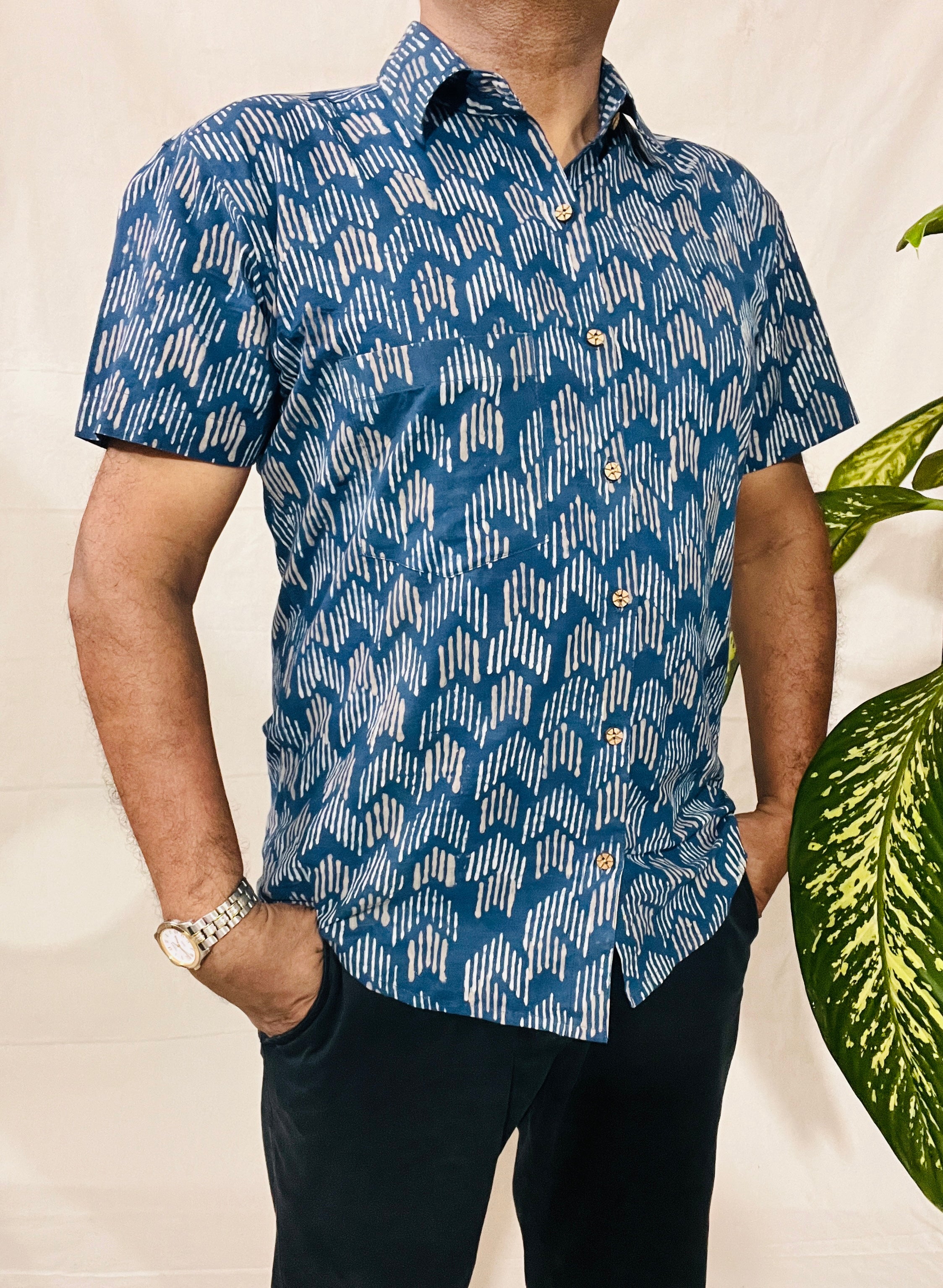 Men's Short Sleeve Shirt in INDIGO Print