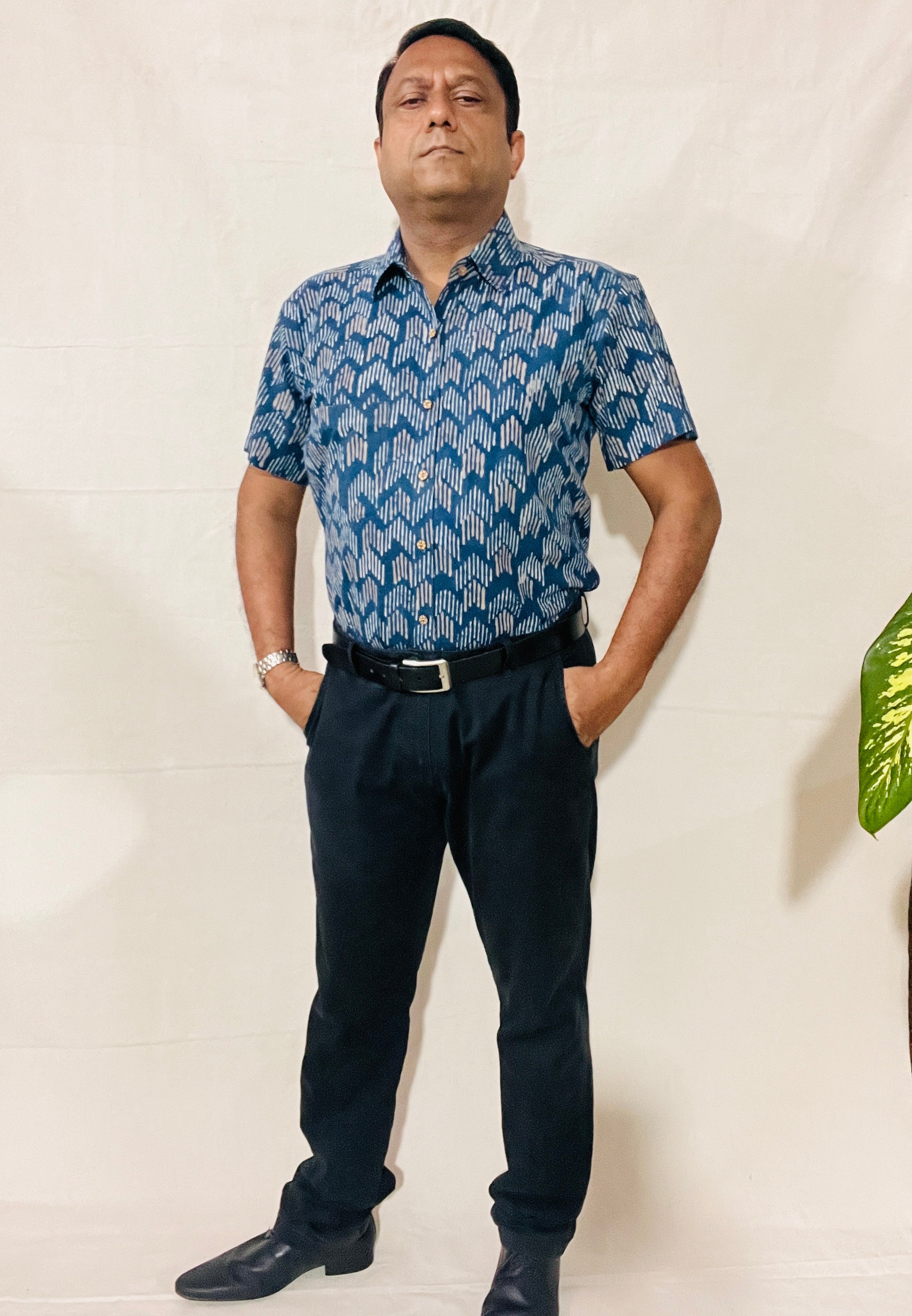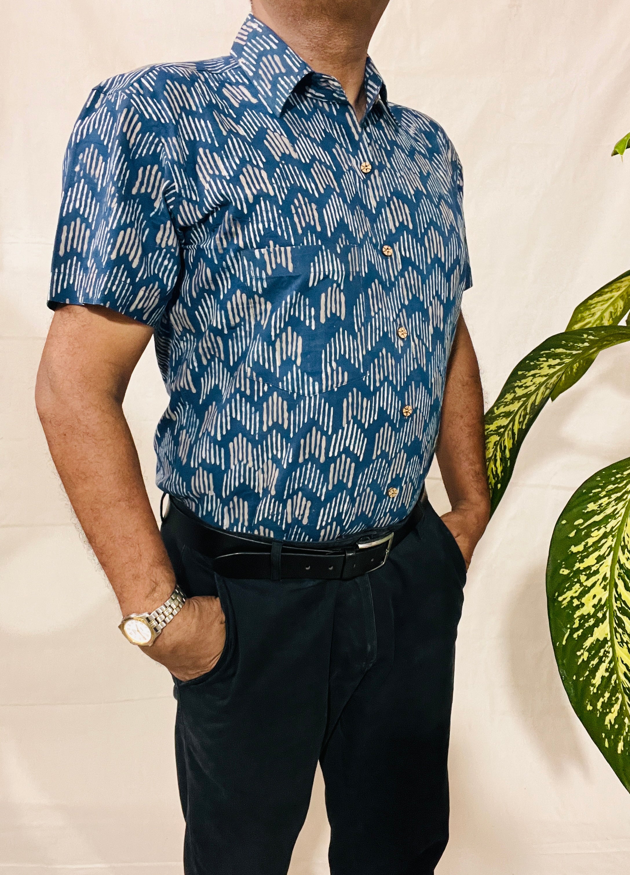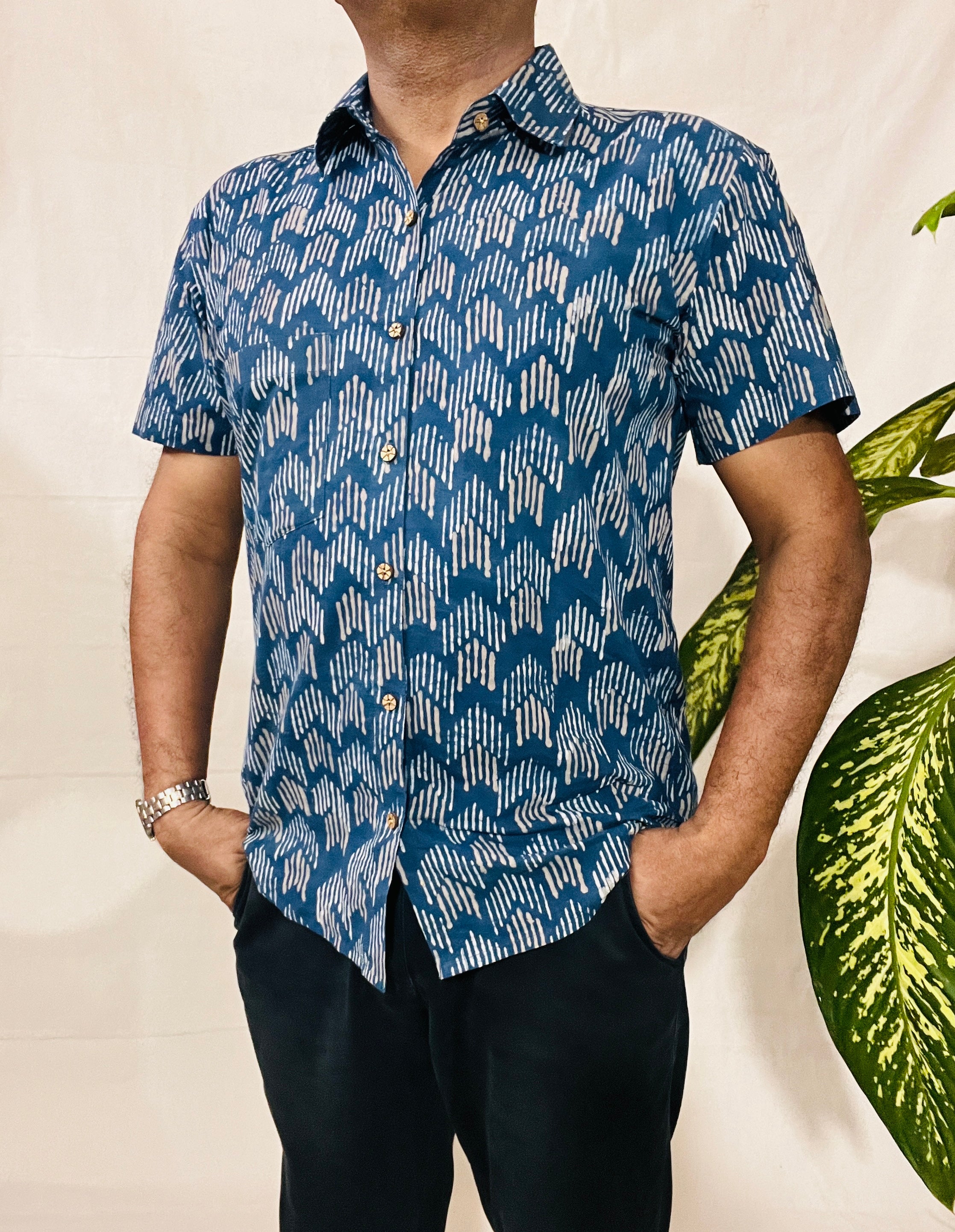 Men's Short Sleeve Shirt in INDIGO Print